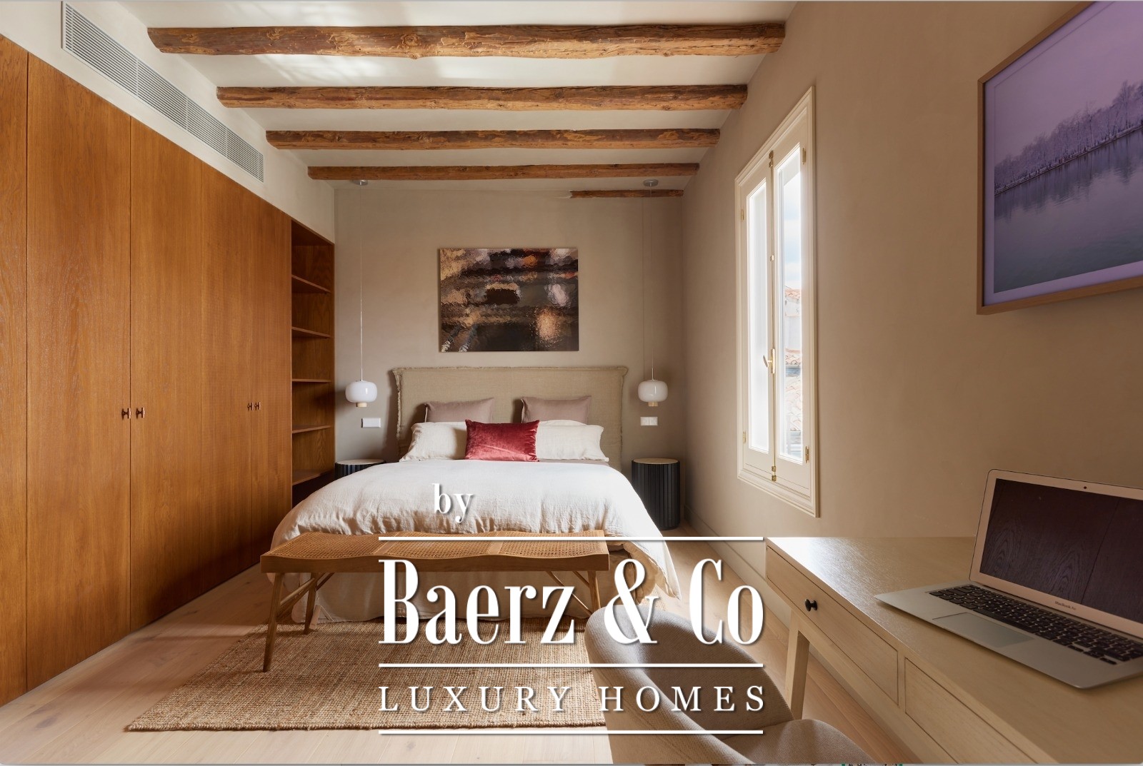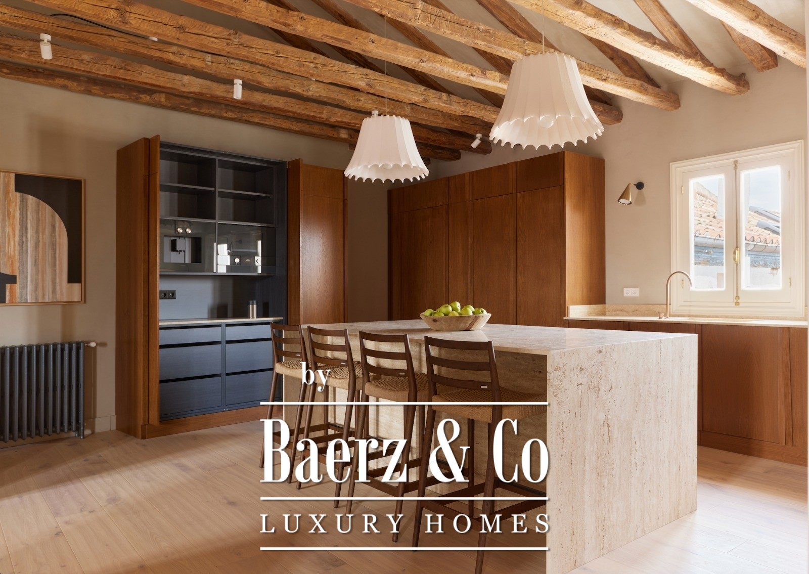 The layout is considered and open. Three large en-suite bedrooms ensure privacy and comfort, complemented by a guest toilet. The open-plan living and dining area invites connection and relaxation, while the kitchen, furnished with Gaggenau appliances, sets an uncompromising standard for culinary ease.