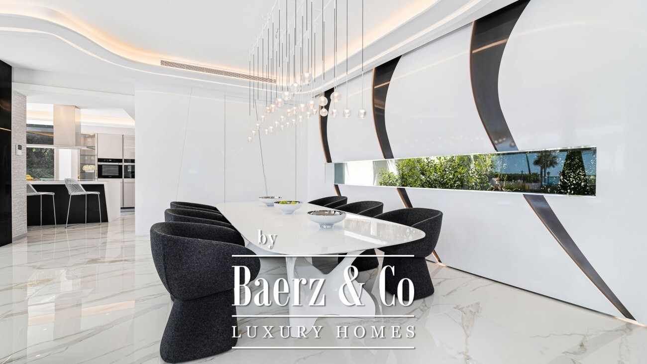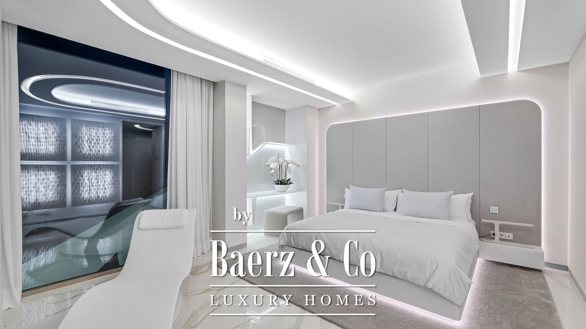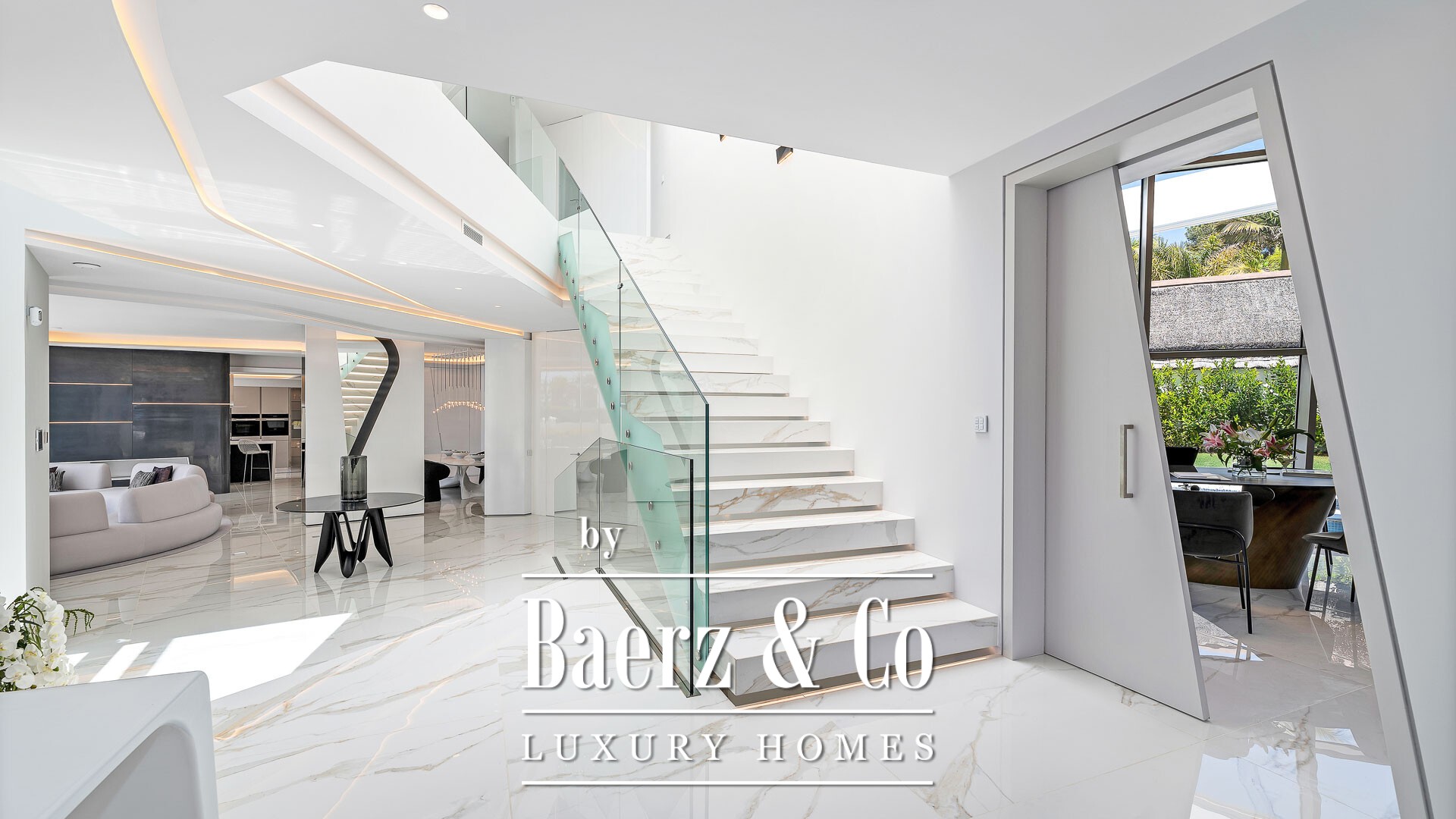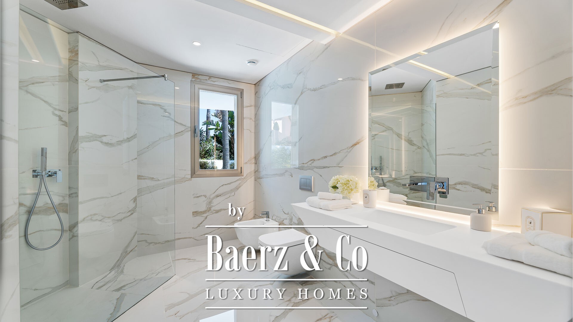 Upstairs, three sea-facing en-suite bedrooms culminate in a master suite of remarkable scale and privacy. The rooftop terrace includes a Jacuzzi pool and outdoor living spaces capturing sweeping views from Africa to the Bay of Marbella. Underfloor heating, a home automation system, and 24-hour security underscore a commitment to comfort and discretion. World-class recreation, luxury shopping, and Marbella’s historic heart are minutes away, anchoring this villa in a globally desired setting.