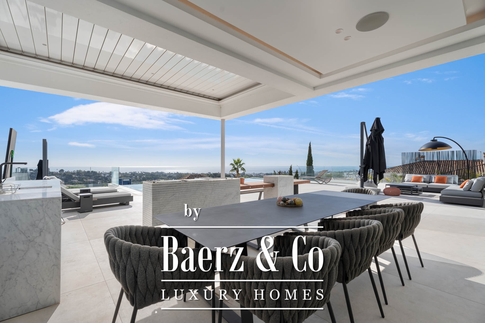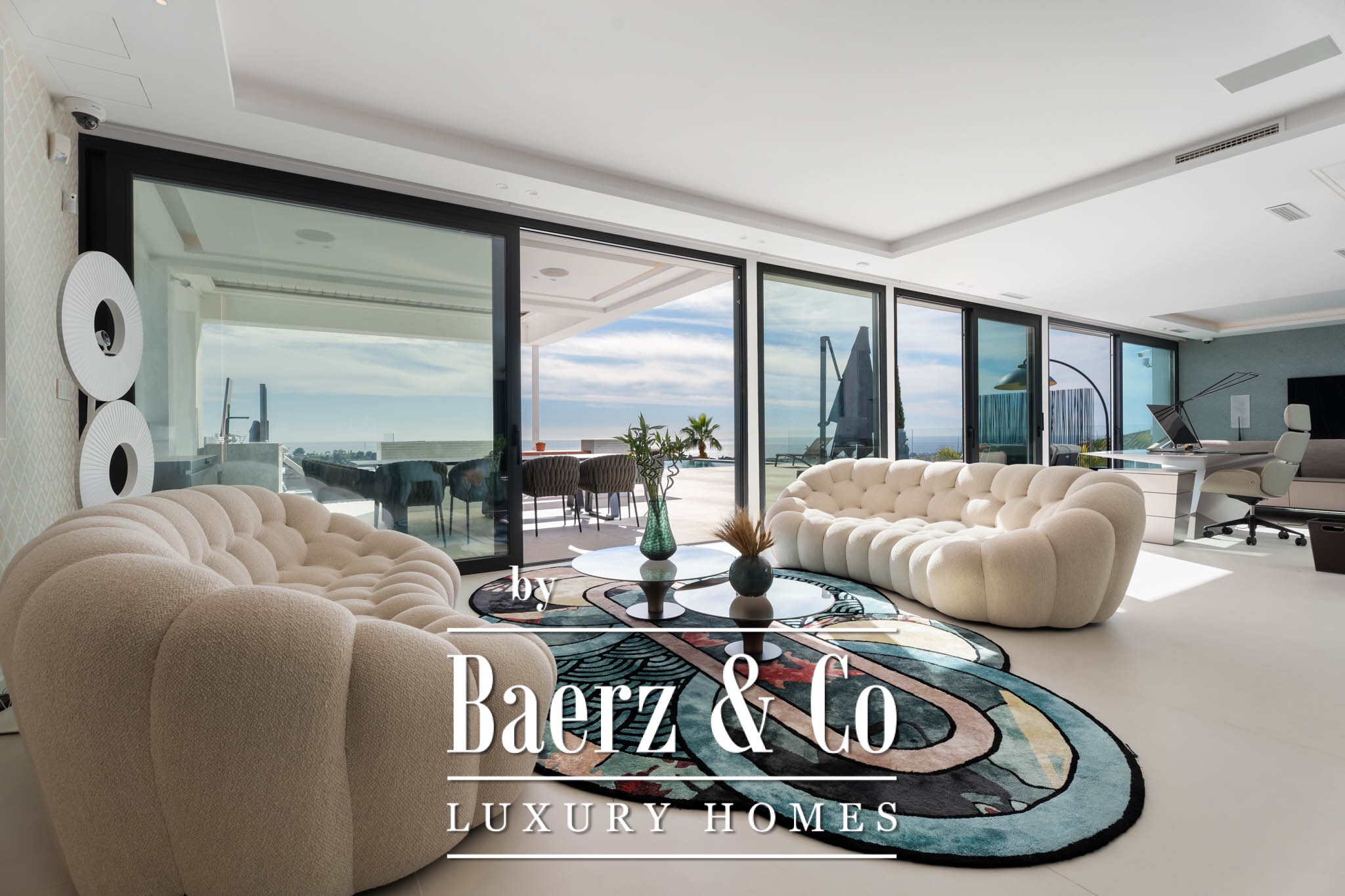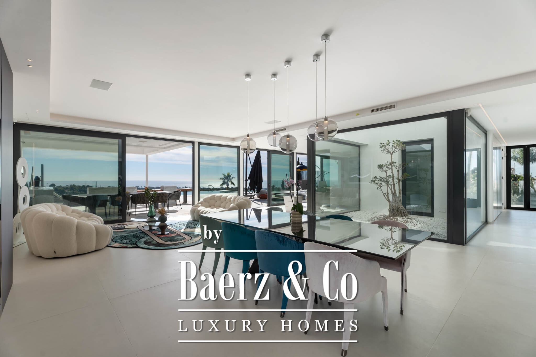 Amenities include a centralized home-automation system, solar panels supporting energy efficiency, alarm, air conditioning and 24-hour security. Minutes from the beach, Puerto Banús and Marbella, this luxury villa for sale in Marbella offers a measured blend of spatial generosity, open vistas and liveable design in a sought-after enclave of Benahavís.