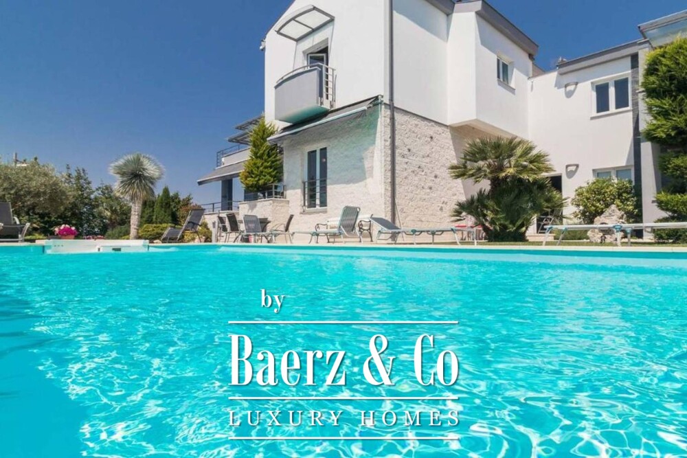 Villa Pješčana Uvala Pula stands in one of the most desirable enclaves of Pula, distinguished by its landscaped gardens and sandy beaches with commanding vistas of the open sea. This villa occupies an elevated 980 m² plot, presenting 350 m² of living space across two thoughtfully designed floors.