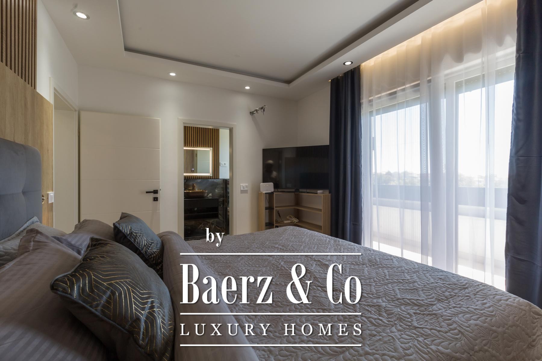 throughout the staircase. This floor houses three elegant and spacious bedrooms, each meticulously furnished with an emphasis on comfort and privacy. Each bedroom features its own modern en-suite bathroom, equipped with premium sanitary ware and designer details, ensuring complete comfort for every resident or guest. The master bedroom particularly stands out, offering generous space, providing a private sanctuary for rest and relaxation. All three bedrooms have direct access to a large covered terrace, offering views of the surroundings and ideal for morning coffee or evening relaxation in the fresh air.This exceptional property is equipped with the latest 'smart home' system, allowing you full control over lighting, temperature, security, and other villa functions via smartphone or tablet, achieving an unprecedented level of comfort and energy efficiency. The fireplace in the living room provides additional warmth and ambiance during cooler months, while a dedicated storage room within the villa offers a practical solution for belongings. The villa comes fully furnished and ready for immediate occupancy, with carefully chosen furniture and decorations that reflect a modern yet warm style.The villa's entrance courtyard is cleverly designed with ample space for parking three vehicles, discreetly located in a lower terrain section, thus not disturbing the aesthetic harmony of the entire property. This is an ideal property for anyone seeking a luxurious family home, a peaceful holiday retreat, or an exceptional investment opportunity for tourism purposes. Medulin, with its rich amenities, beautiful beaches, and proximity to Pula and the Brijuni National Park, offers inexhaustible possibilities for enjoying nature, culture, and active leisure. This villa represents the pinnacle of contemporary living in the heart of Istria, offering privacy, comfort, and incomparable beauty.Do not miss the opportunity to become the owner of this architectural gem in Medulin, where luxury meets nature, and modern design meets the warmth of a home. For more information about this beautiful villa and to arrange a viewing, we are at your disposal.
