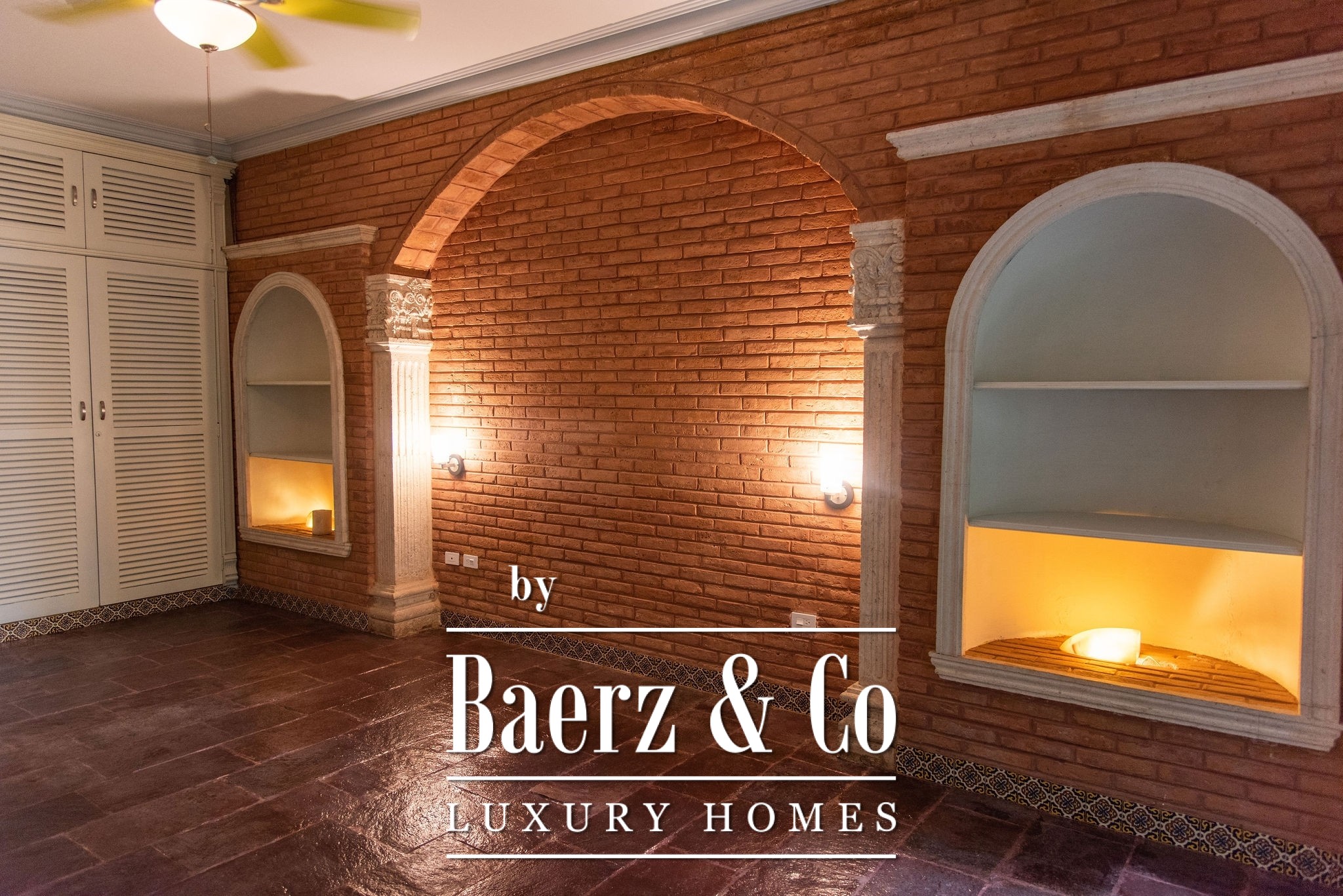 Somewhat discrete in one of the most traditional and sought-after areas known as Itzimna in the city of Merida, you will discover “Los Aluxes” Manor house. With its 4056 square meters of land and 1133 square meters of construction, this magical property has it all. Great spaces built with all the luxury for you to enjoy all year round. The house has in total 5 bedrooms with 5 bathrooms, all with unique design. At the entrance you will find a great façade that only invites to imagine the interior of the property. Spectacular spaces of living anteroom and dining room will greet you with the sensation of being in your very own palace. Floors made out of carrara marble, custom made wrought iron make a one of a kind piece with import stained glass that form part of all the main windows. All carpentry made out of fine hard wood in its beams. Hand cut stone columns with great design are laid out through all the residence, combined with exquisite rustic volcanic stone floors. It´s domes that were custom made and designed exclusively for the property make the interior even more beautiful. In the exterior you will find fascinating gardens and lush and exotic vegetation that surround this exclusive mansion, with an enormous pool at the end of the property that has it´s own terrace and bathrooms. To the side your own rustic chapel. “Los Aluxes” Manor makes for those who come near forget where they were headed to and feel a pleasant sensation of harmony and peace.