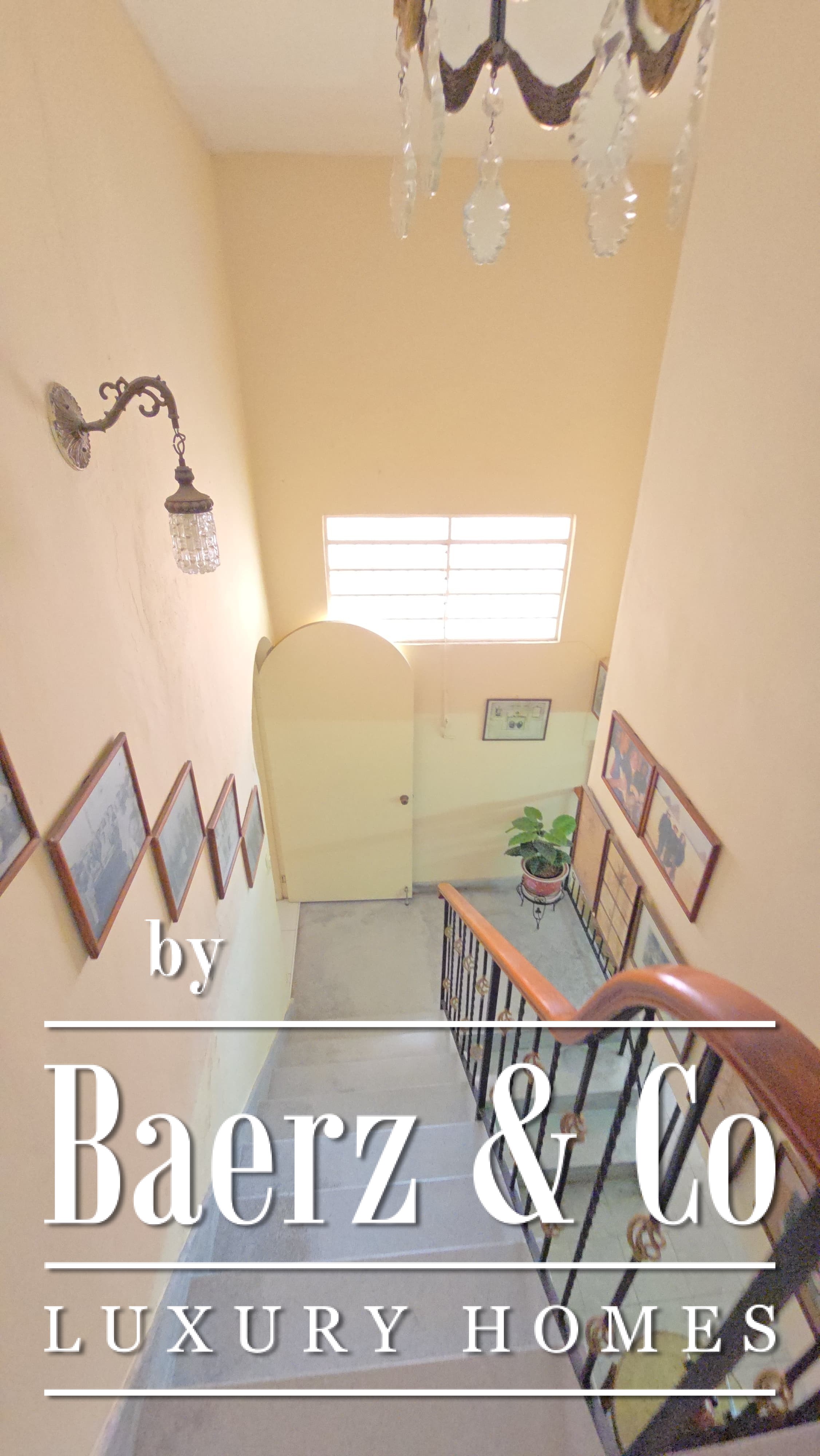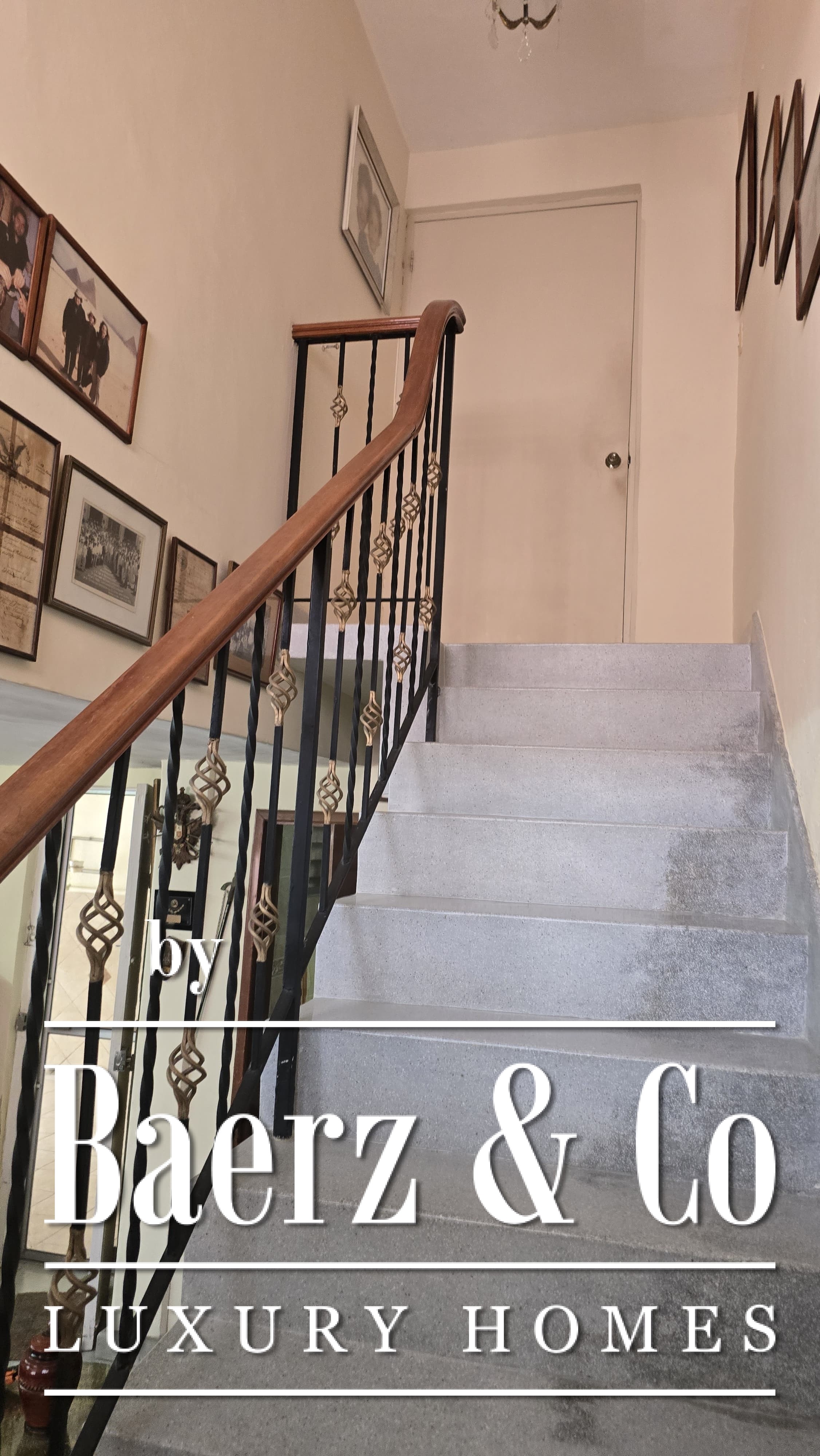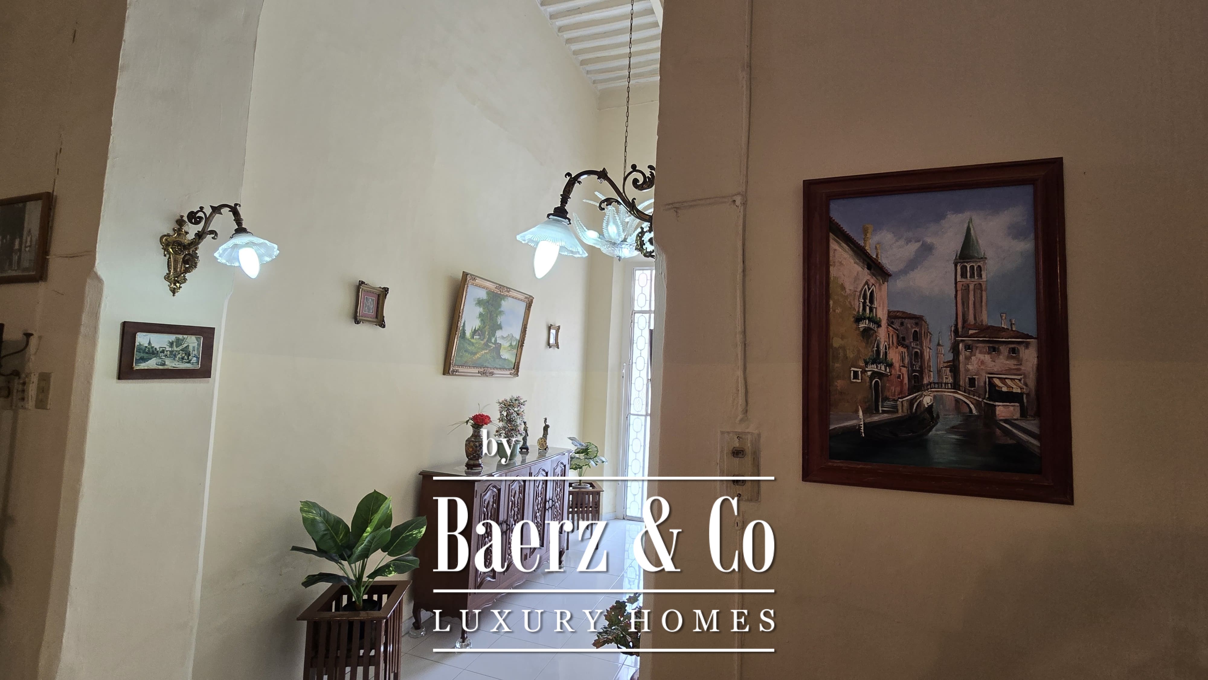 Beyond its grand façade, the residence offers four bedrooms, each with a dedicated bathroom, with the main suite enjoying a walk-in closet. The layout is both classic and accommodating, with a sequence of living and dining rooms, a granite-fitted kitchen, two family rooms, a studio, service quarters with bath, and ample storage and laundry spaces. Wide foyers and a generous porch invite openness, while the private pool and covered garage for four cars enhance everyday luxury. The property integrates contemporary comforts such as hydro system, inverse osmosis, electric gate, and essential connectivity.