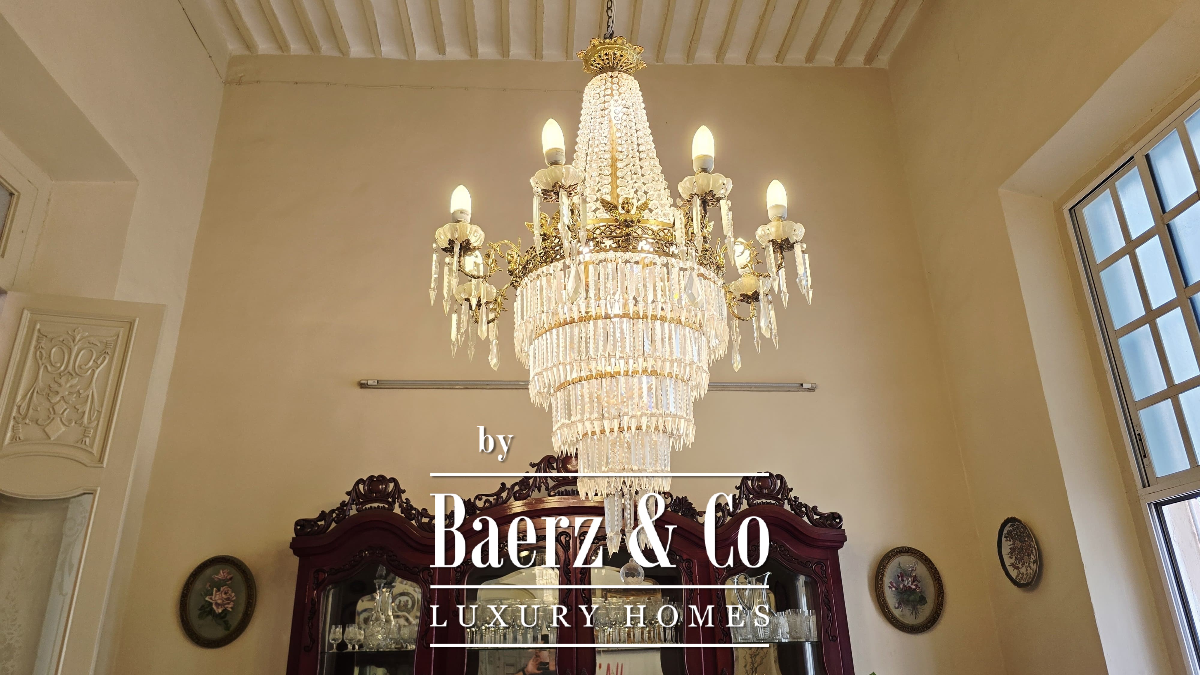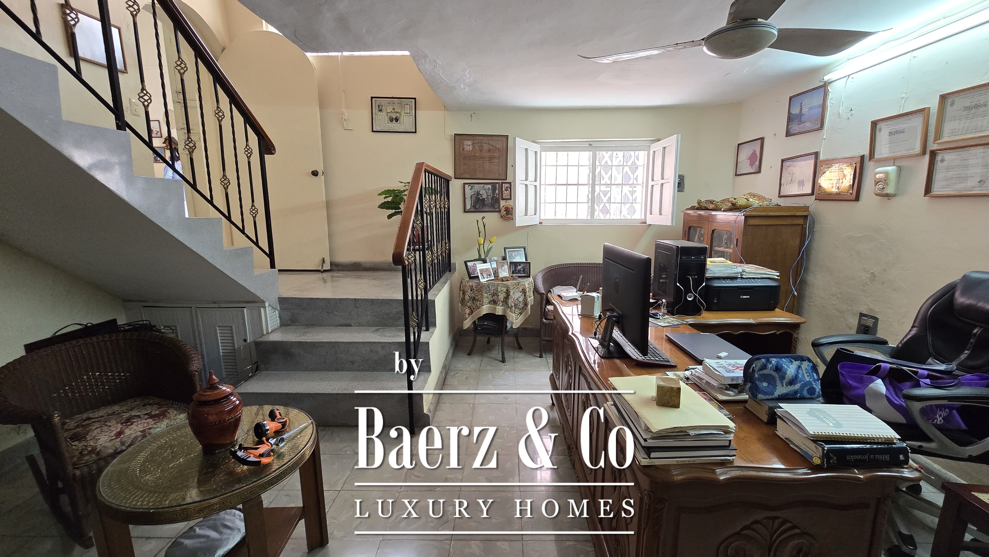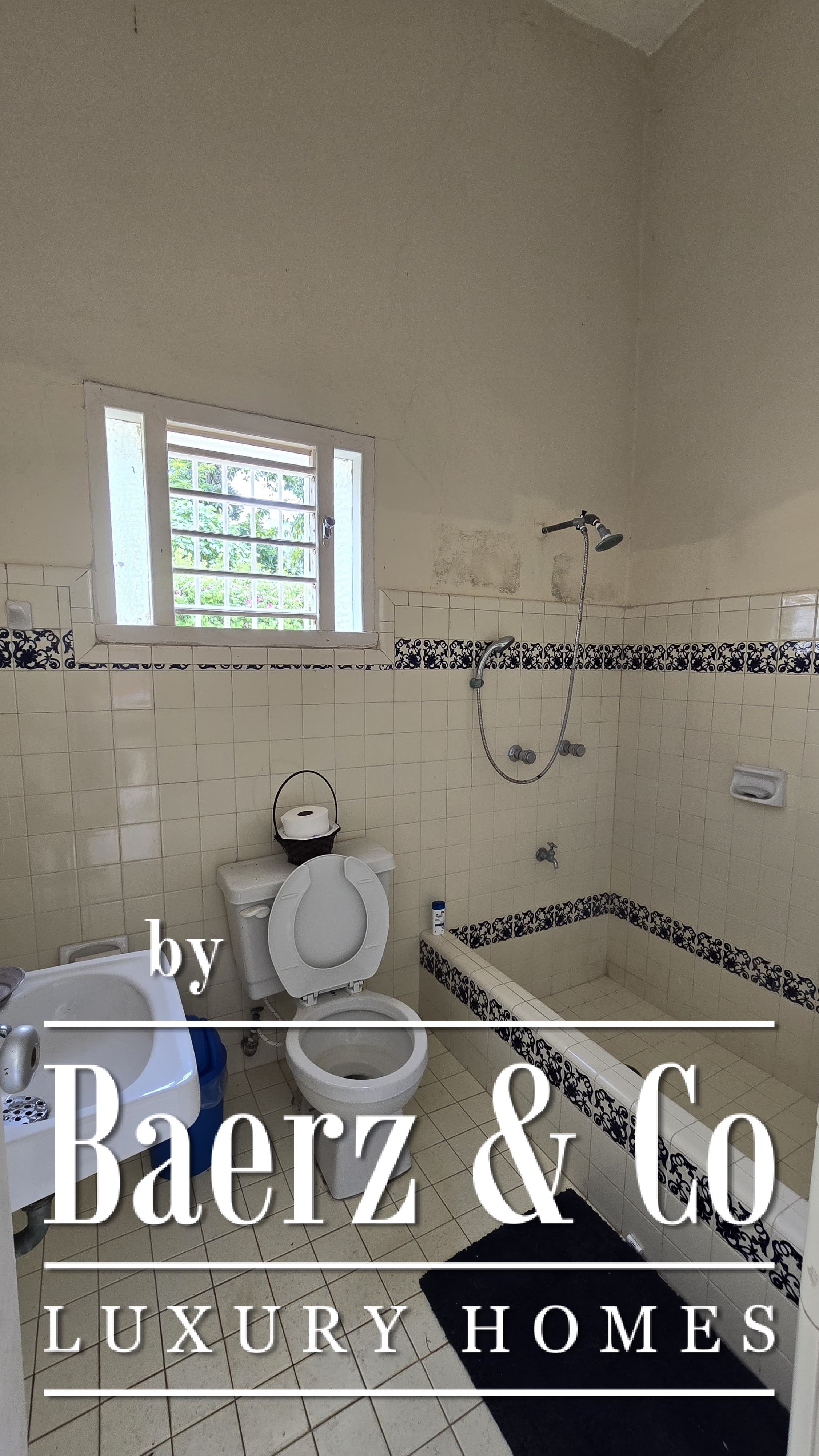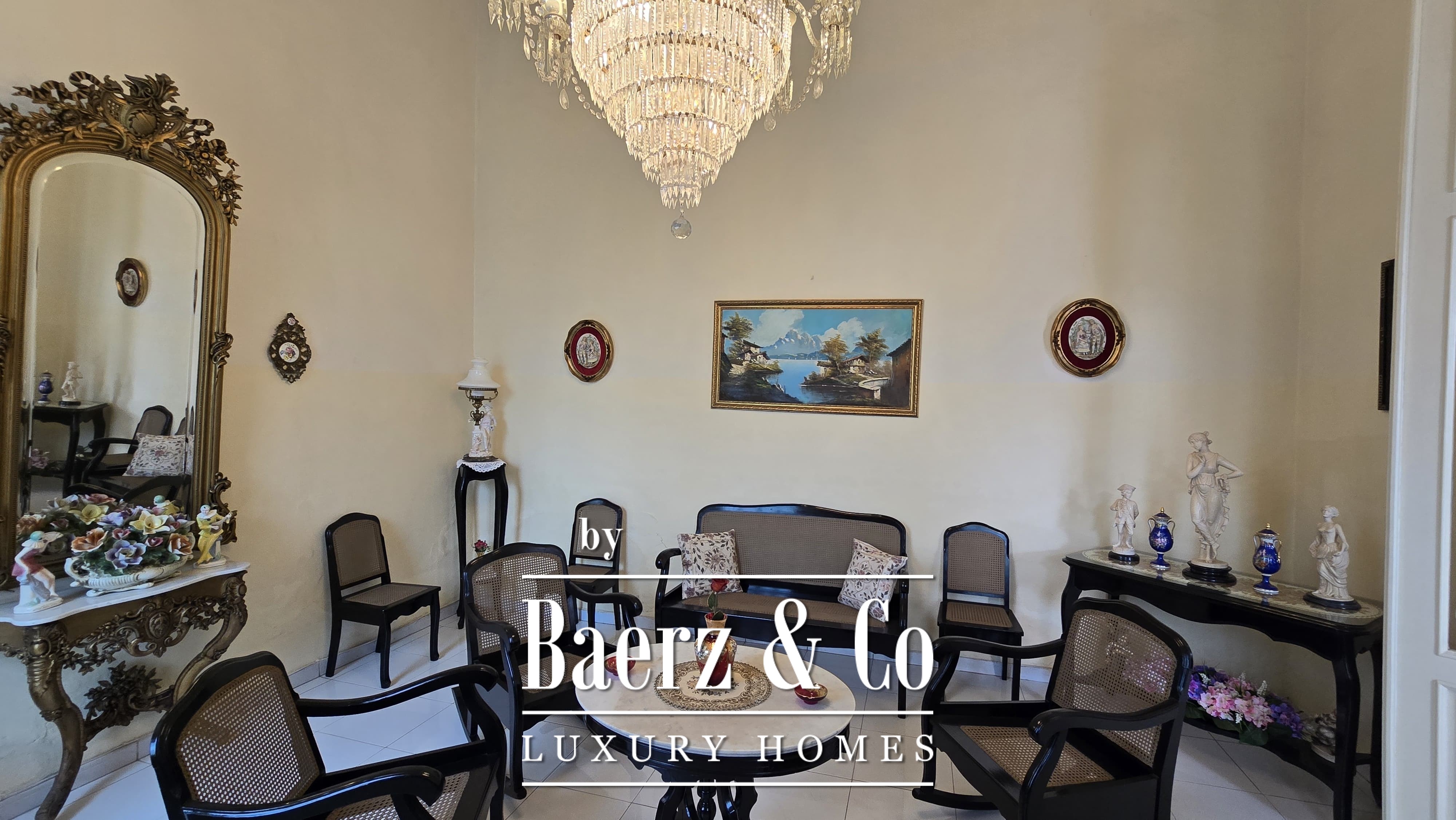 Beyond its grand façade, the residence offers four bedrooms, each with a dedicated bathroom, with the main suite enjoying a walk-in closet. The layout is both classic and accommodating, with a sequence of living and dining rooms, a granite-fitted kitchen, two family rooms, a studio, service quarters with bath, and ample storage and laundry spaces. Wide foyers and a generous porch invite openness, while the private pool and covered garage for four cars enhance everyday luxury. The property integrates contemporary comforts such as hydro system, inverse osmosis, electric gate, and essential connectivity.