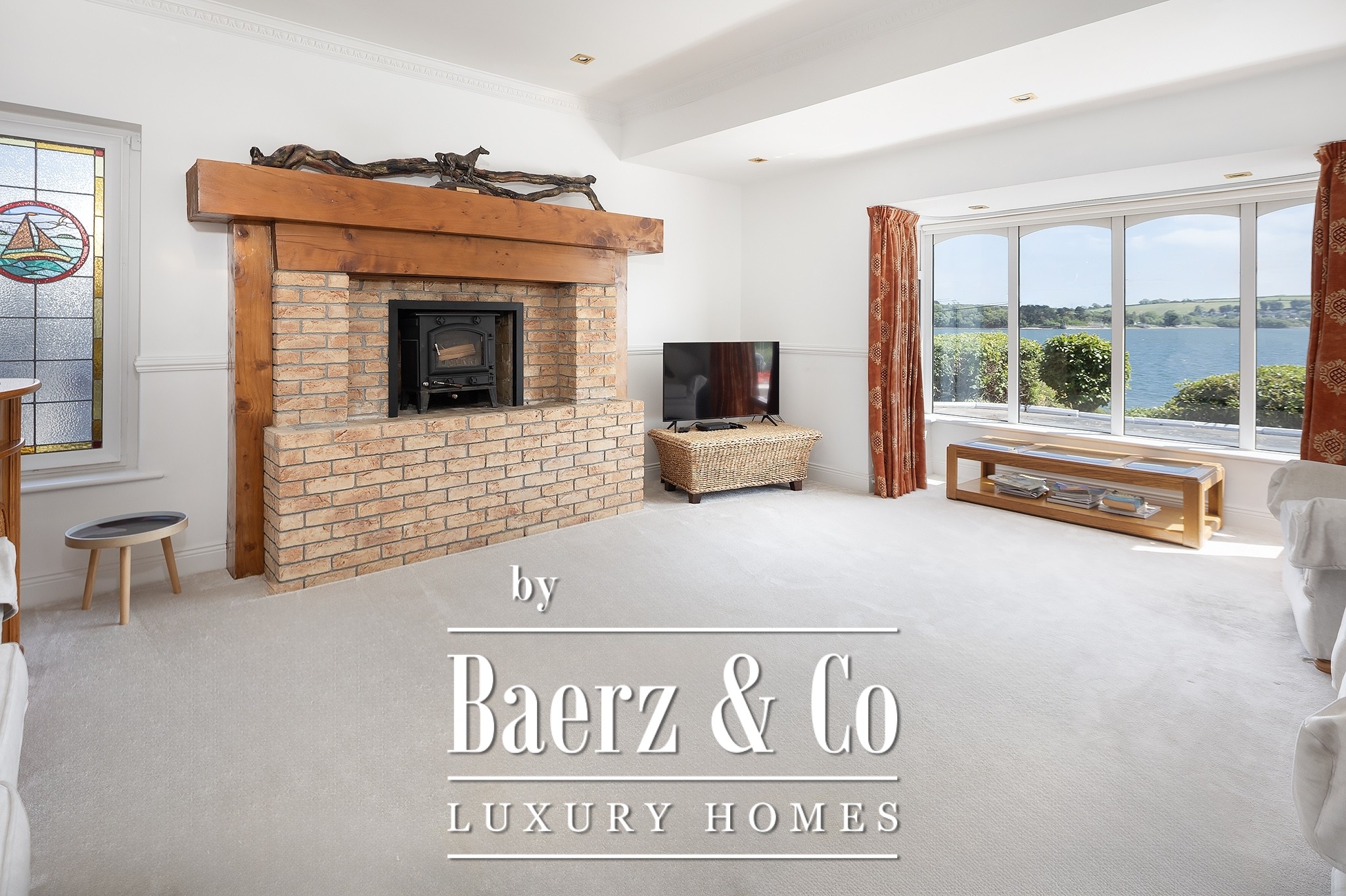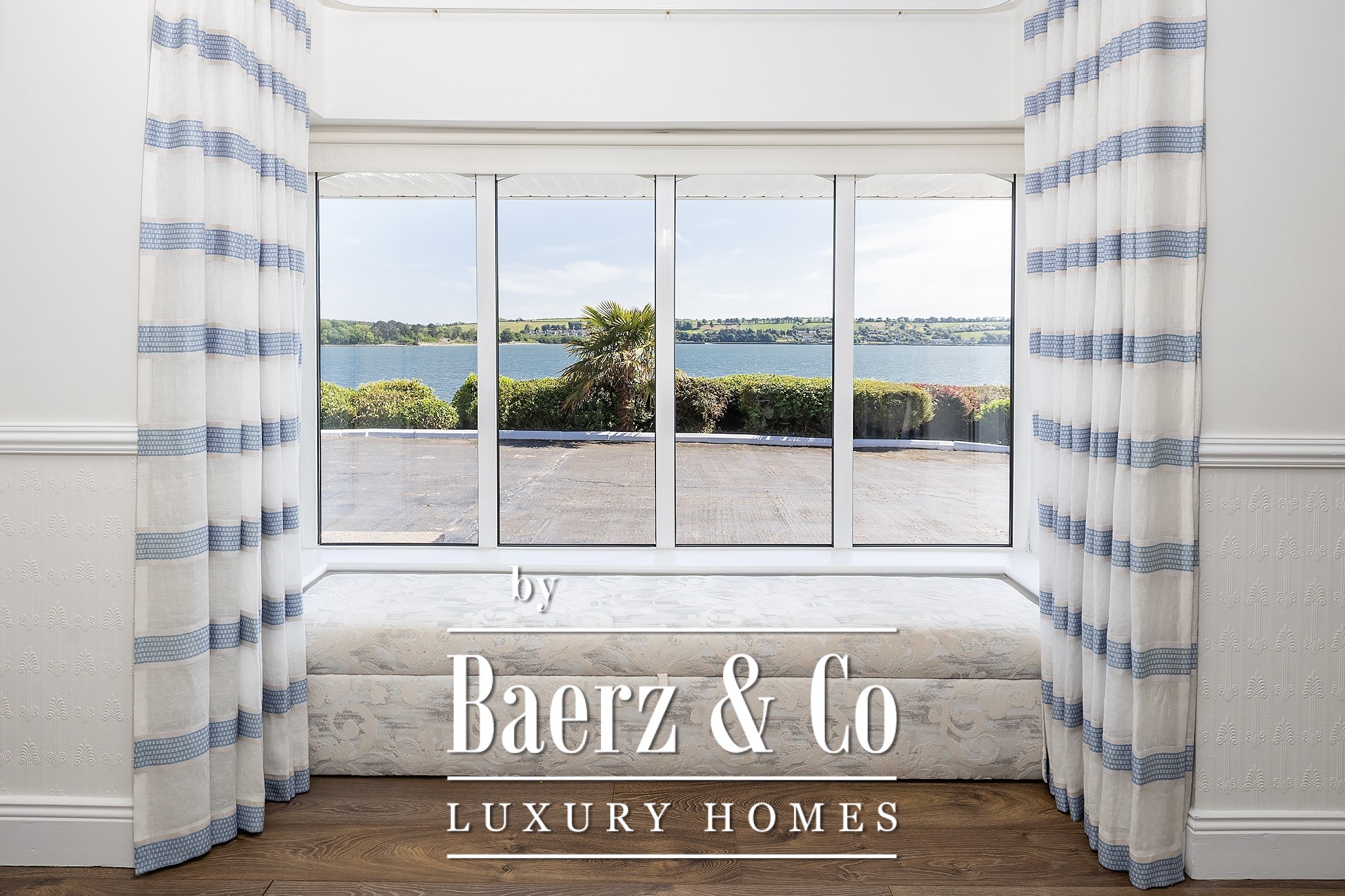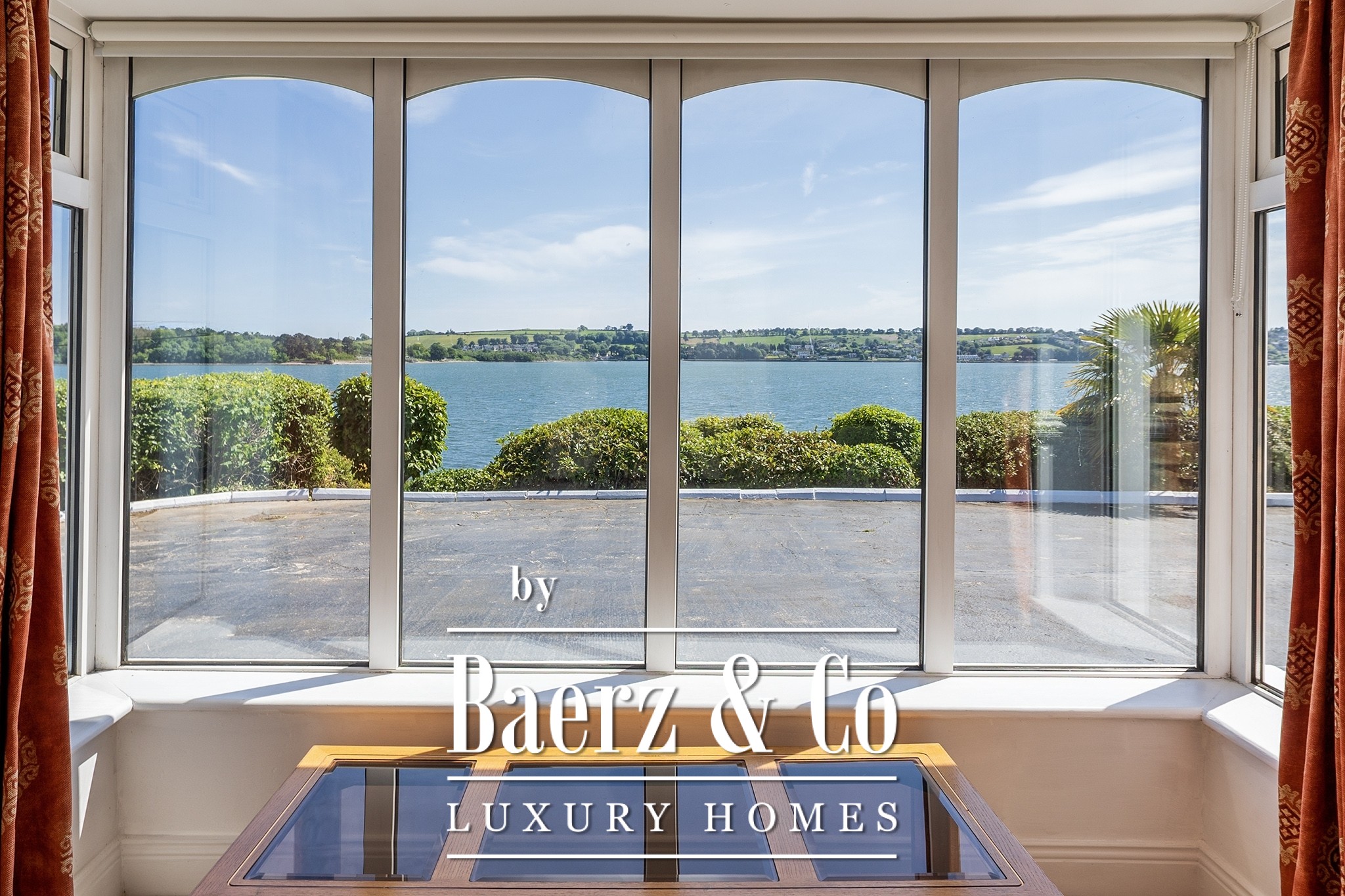 Sunroom: (4.5m x 4.1m) Bathed in natural light, this stunning sunroom offers a bright atmosphere, with double doors opening onto the garden, an ideal space for relaxation and quiet retreat. This sunroom is surrounded by exceptional views of the harbour.
