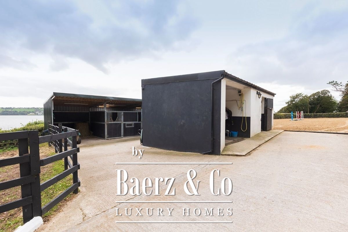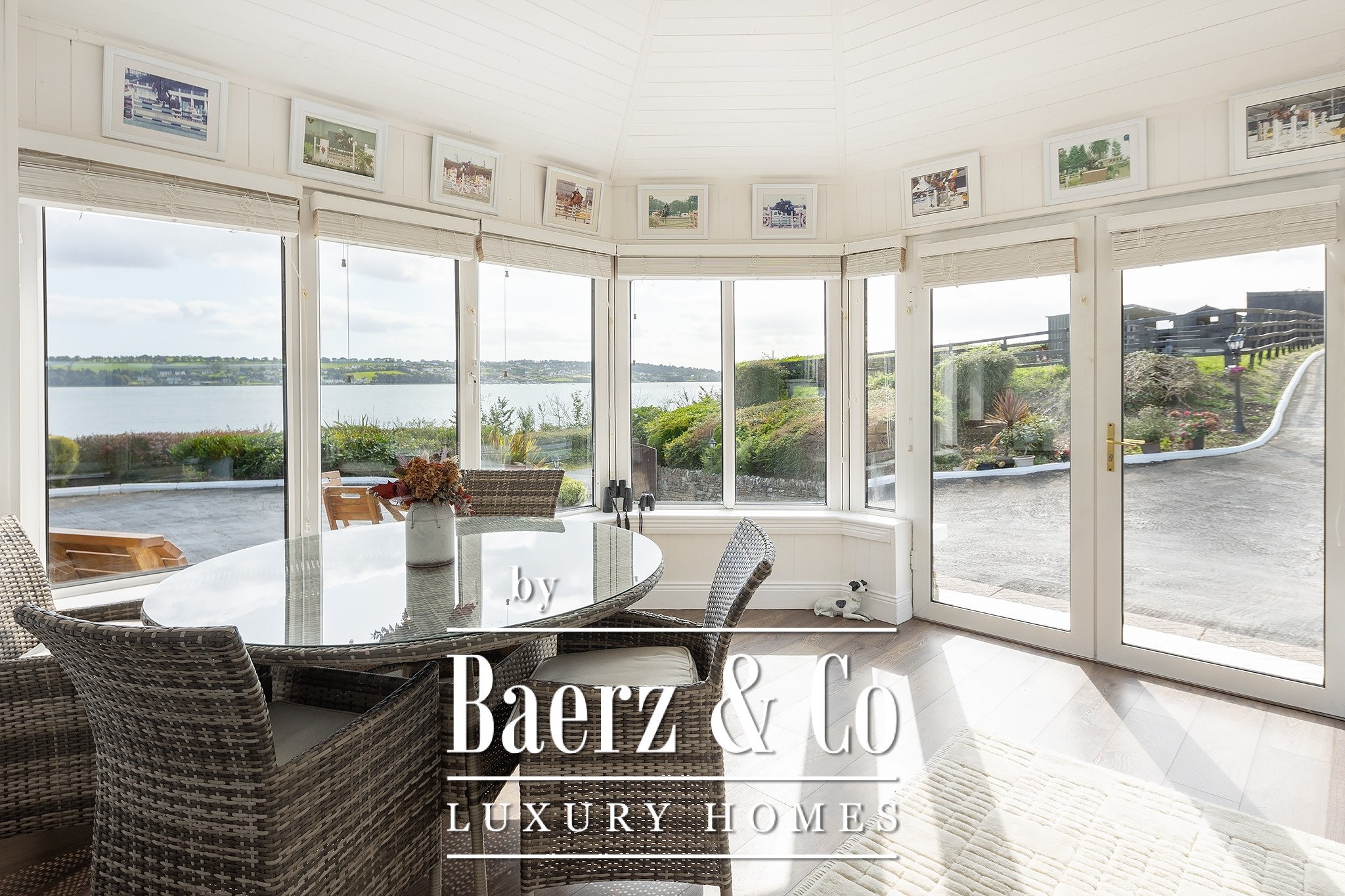 Sea View Stables, a magnificent 4-bedroom detached home situated on a beautifully landscaped c7.3 acre site with stables & a sand arena overlooking Cork Harbour.