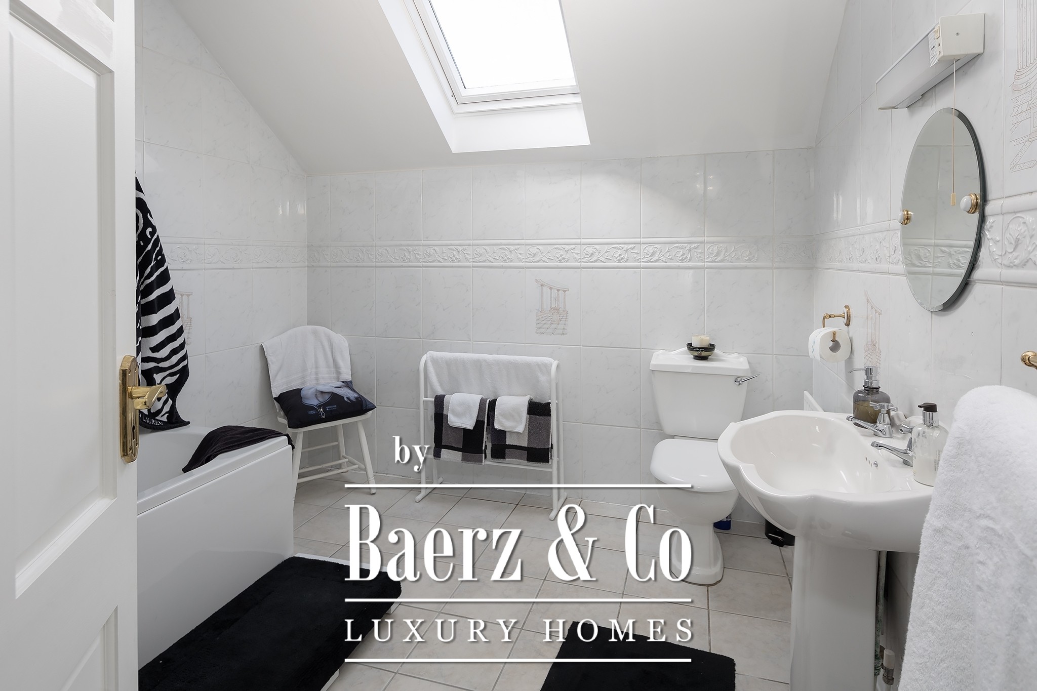 Main Bathroom (3m x 2.9m) The main bathroom boasts a bath, power shower, washhand basin, and toilet.
