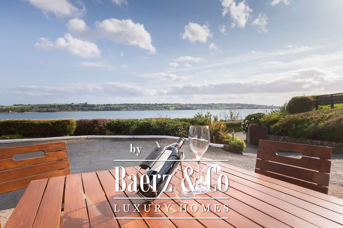 Approaching this truly unique south-facing home, you will notice the stone wall entrance and electric gates. The property is well set back from the road, providing fantastic privacy, and enjoys panoramic harbour views.