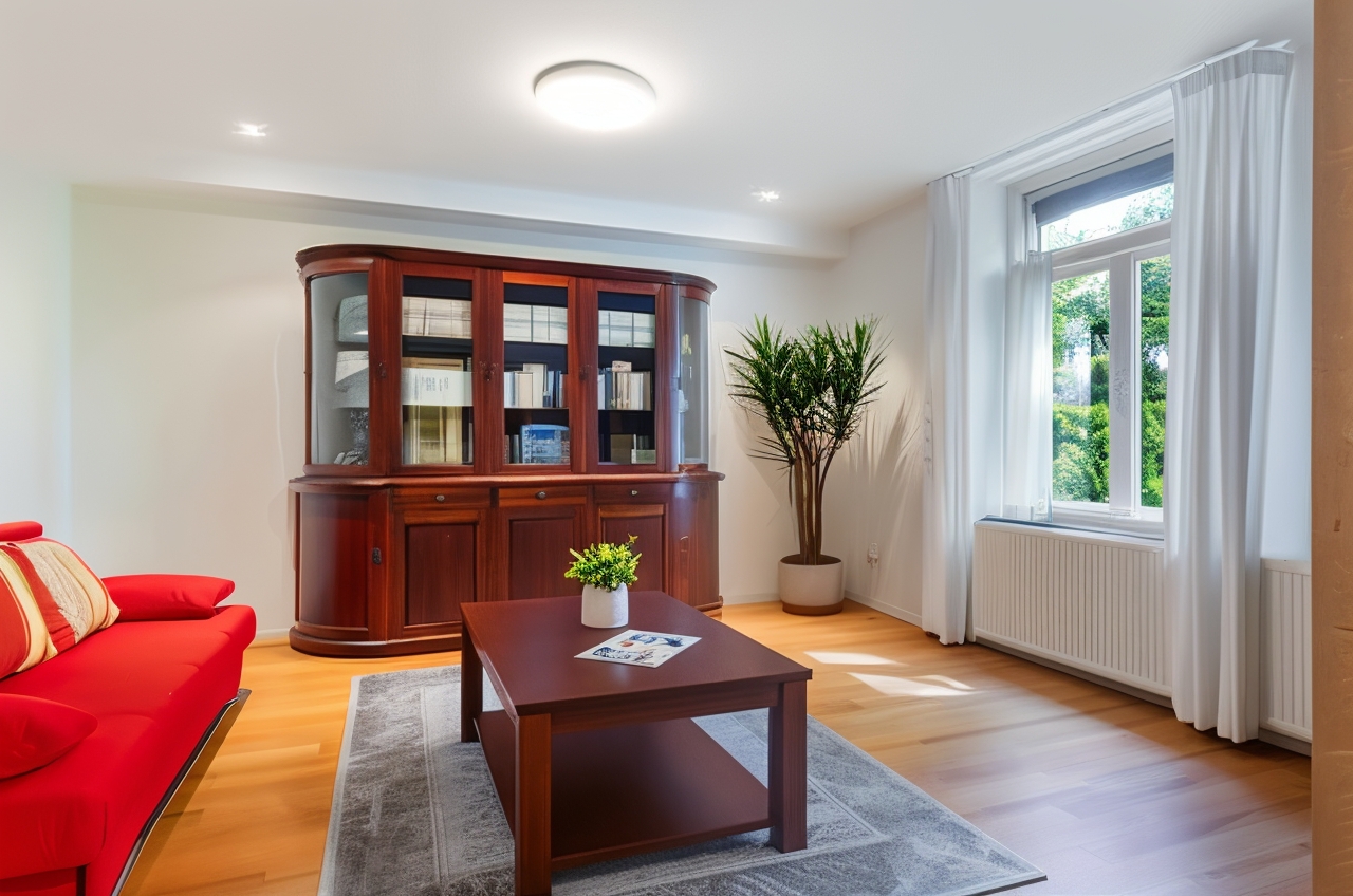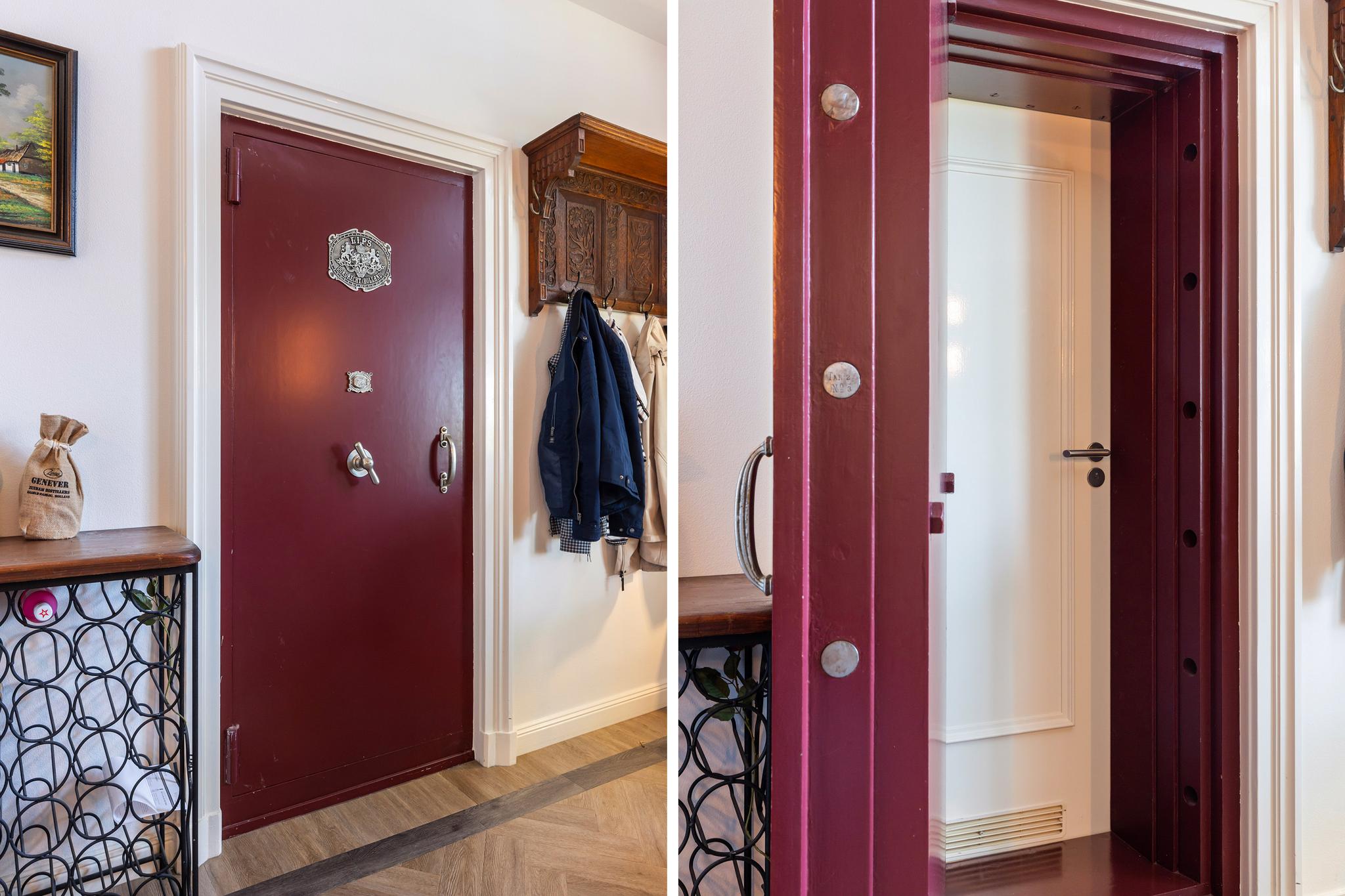 Throughout the years, the villa has been modernised with great care and attention to detail, all while retaining its original character. The façades have been re-rendered, and historical elements such as decorative ceilings, solid panelled doors, staircase handrails, interior shutters and window sills have been sympathetically restored. New timber window frames with insulating glass have been combined with stained glass set in double glazing. Even the original Lips safe in the hall has been preserved.