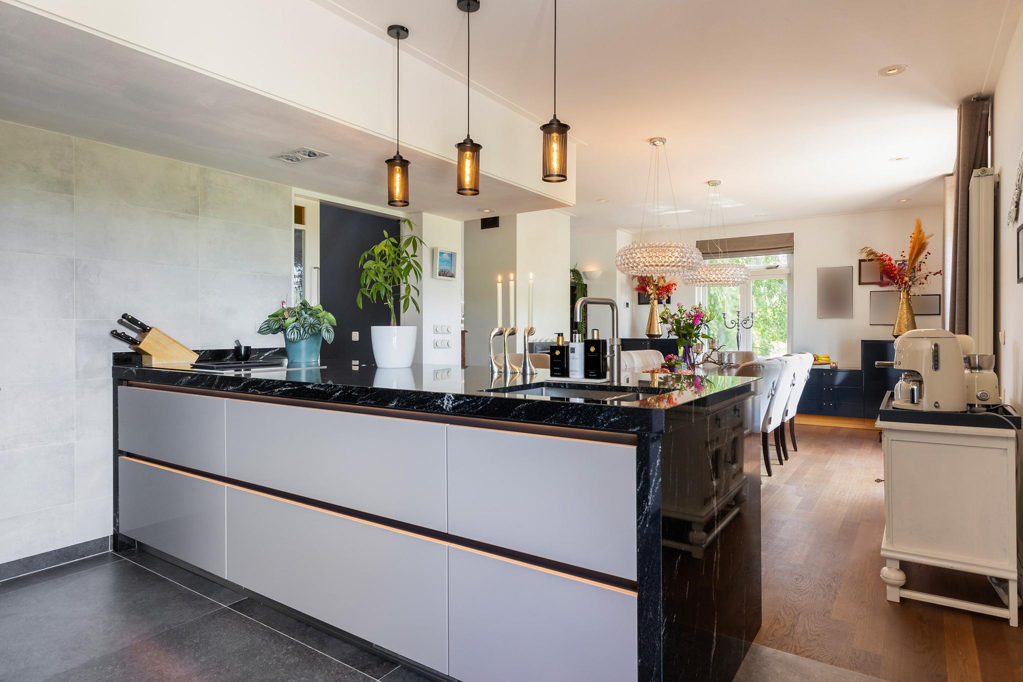 In 2020, the entire roof was replaced and fitted with modern insulation. Gutters and rainwater systems were also renewed. The kitchen was custom-designed using premium materials and features an integrated induction hob with extractor, Quooker tap, steam and combi ovens, vacuum drawer, dishwasher, large fridge and separate freezer. The granite worktop, high-gloss taupe cabinetry and dark wood accents create a timeless, elegant look. The property is heated by two modern boilers, with individual temperature control in each room – adjustable remotely. In 2021, 20 solar panels were installed, significantly improving the energy efficiency. For added comfort, motorised Roman blinds were connected to the smart home system. The villa is also equipped with fibre-optic internet, a high-capacity three-phase power connection (3 x 40A), and an EV charging point.