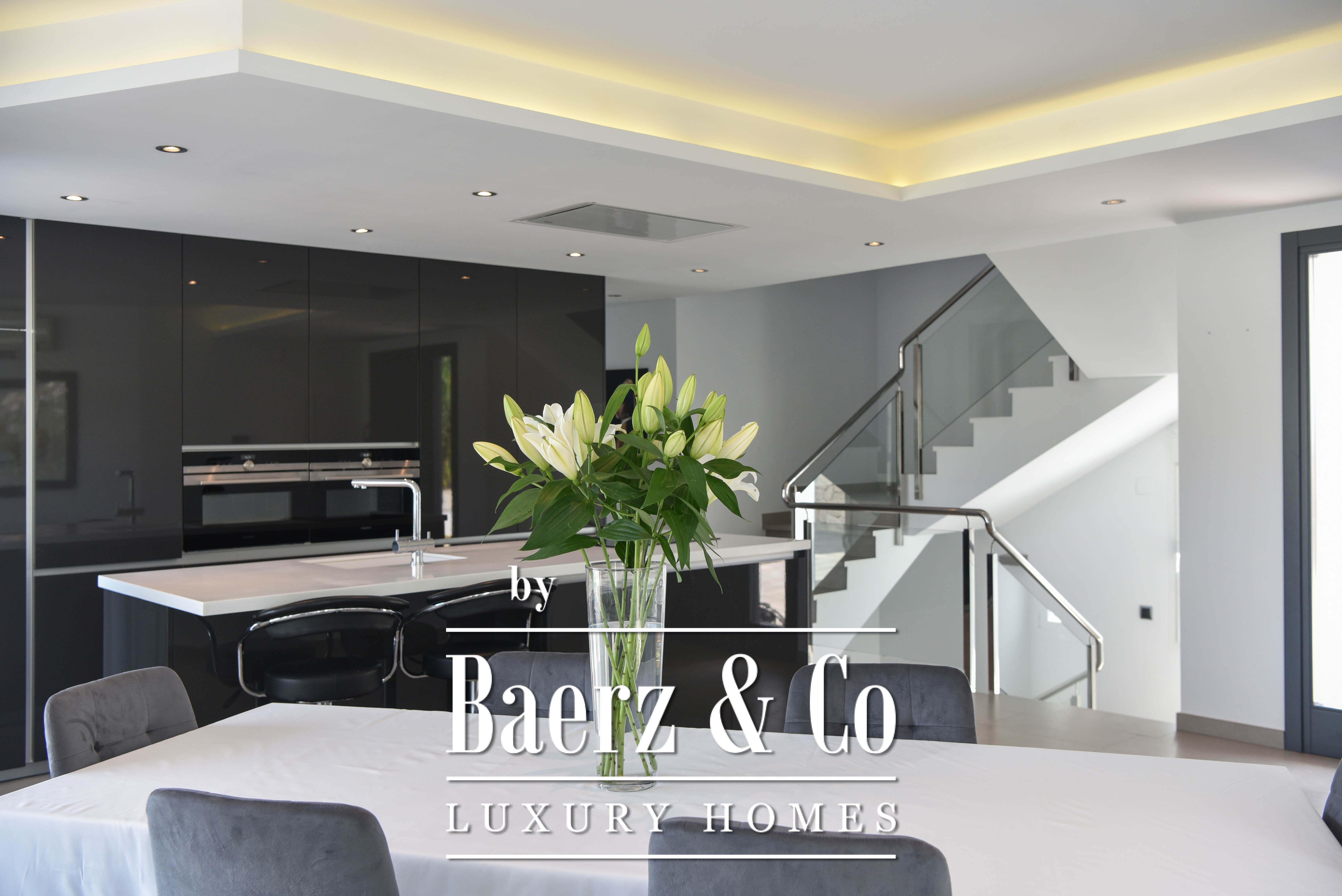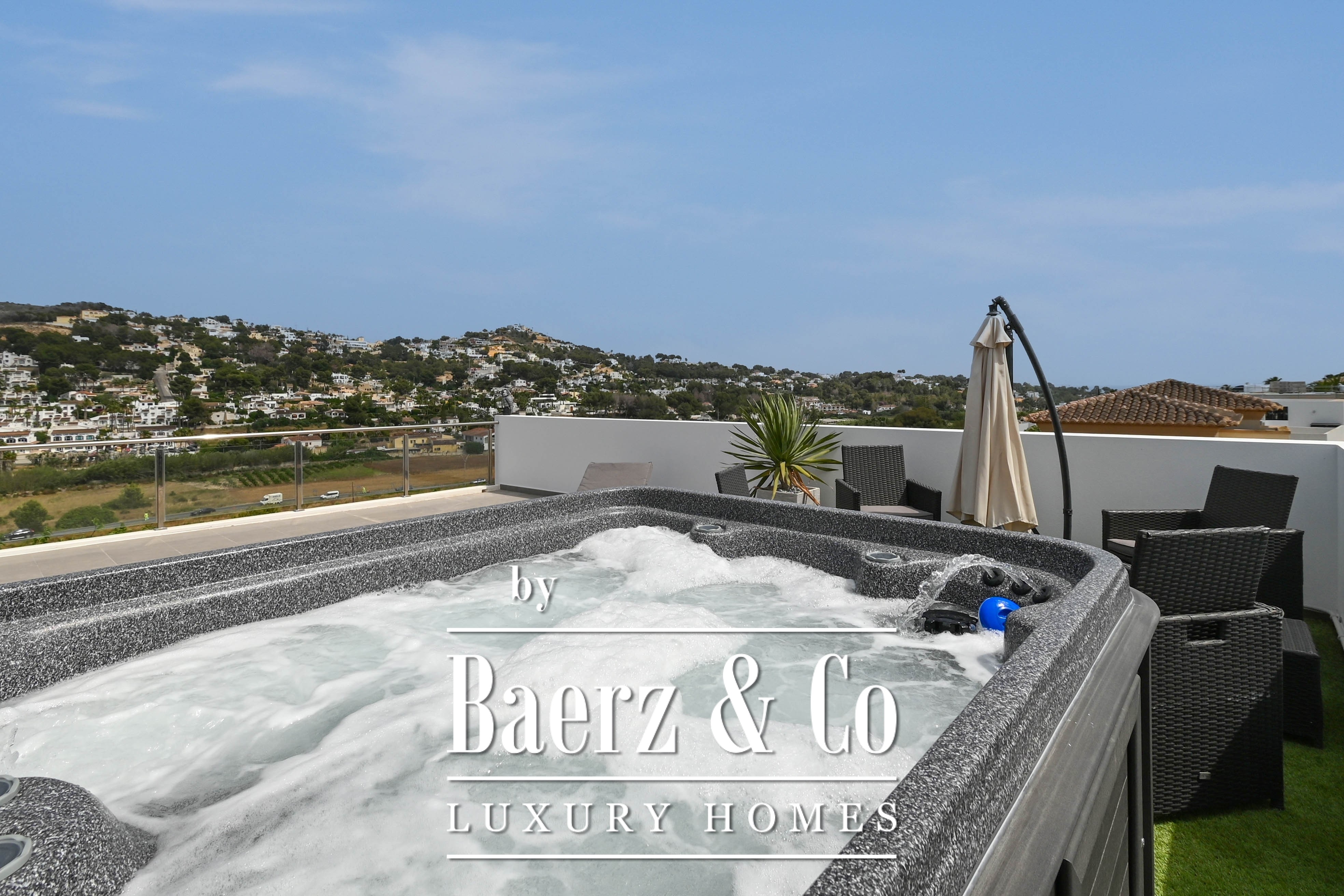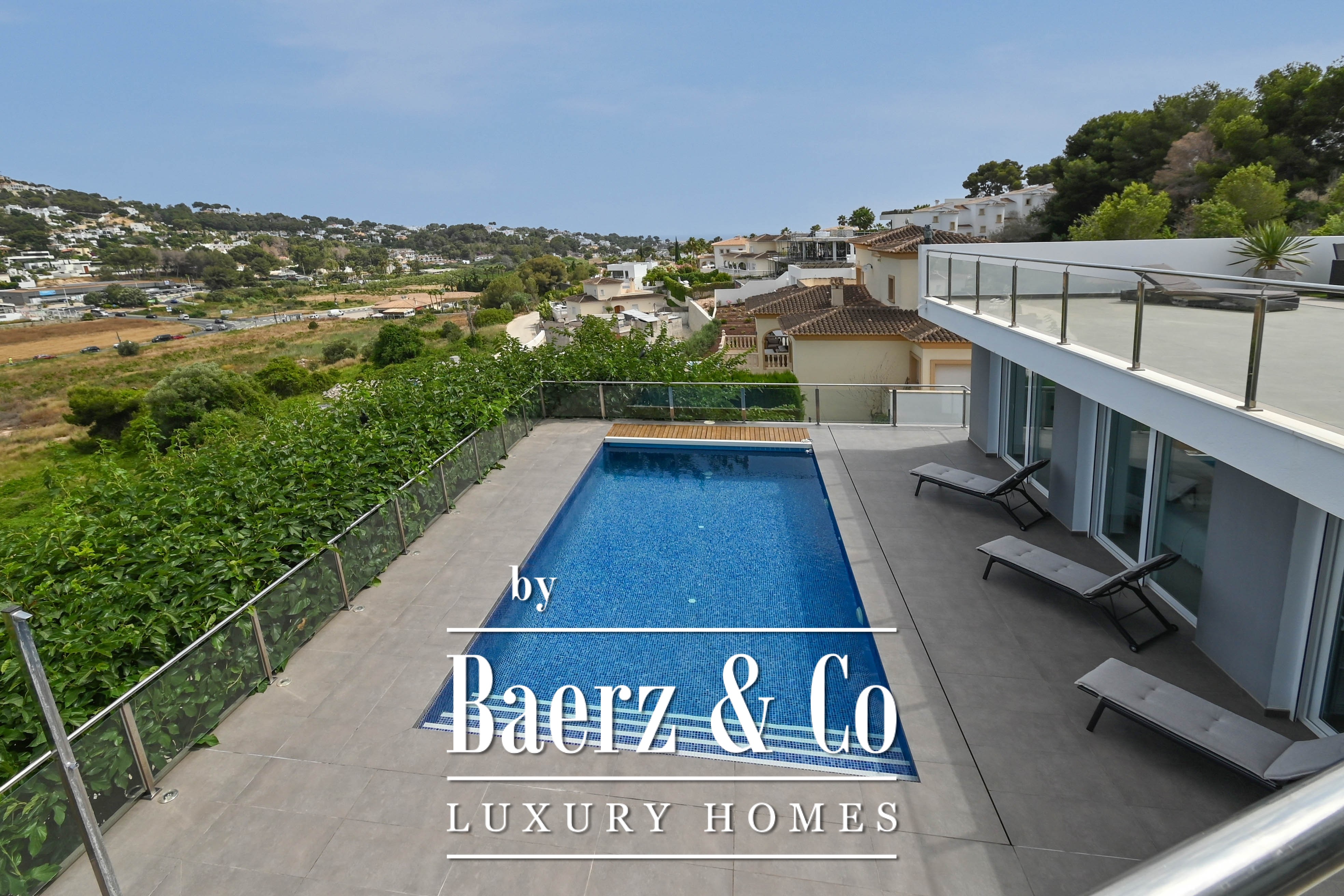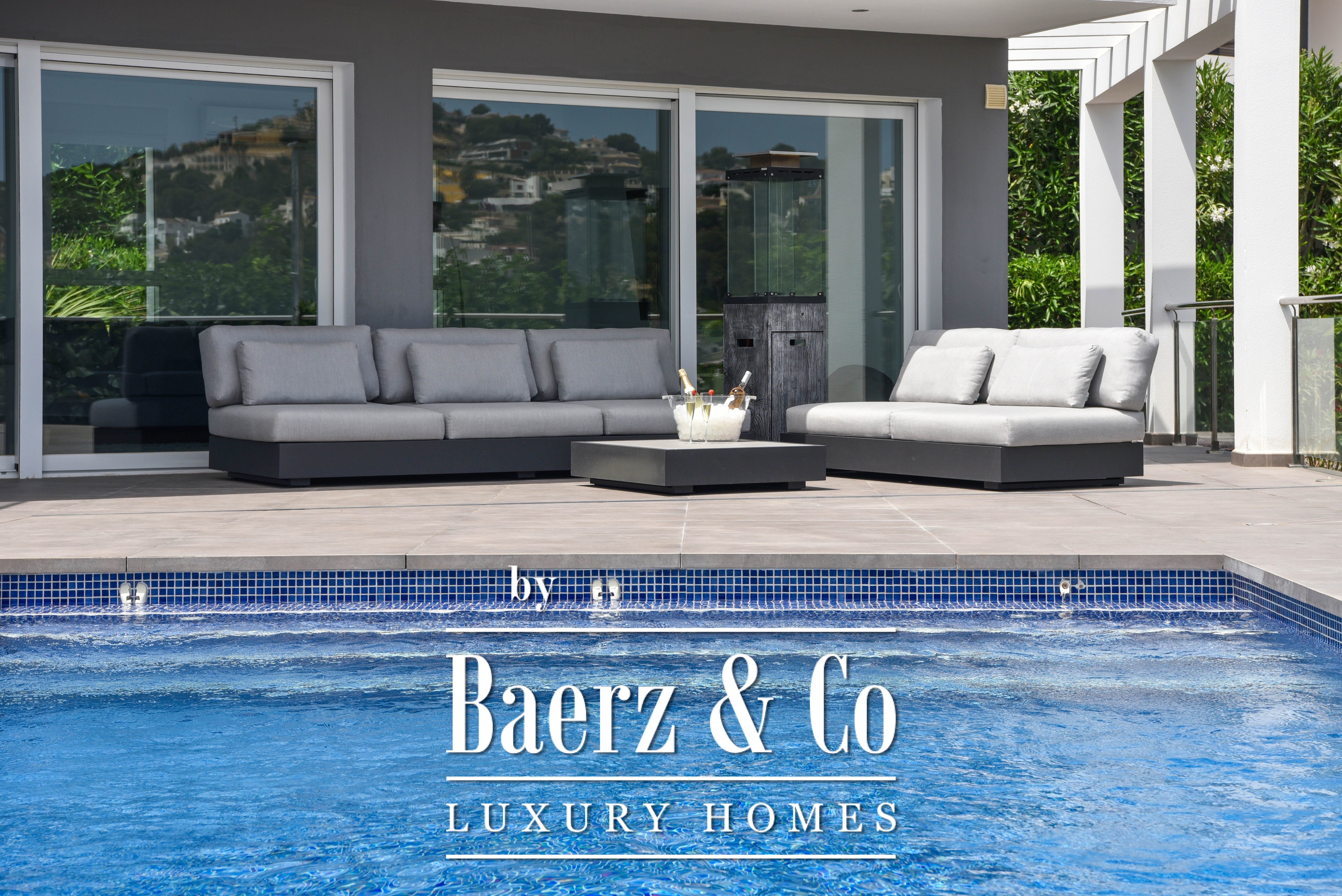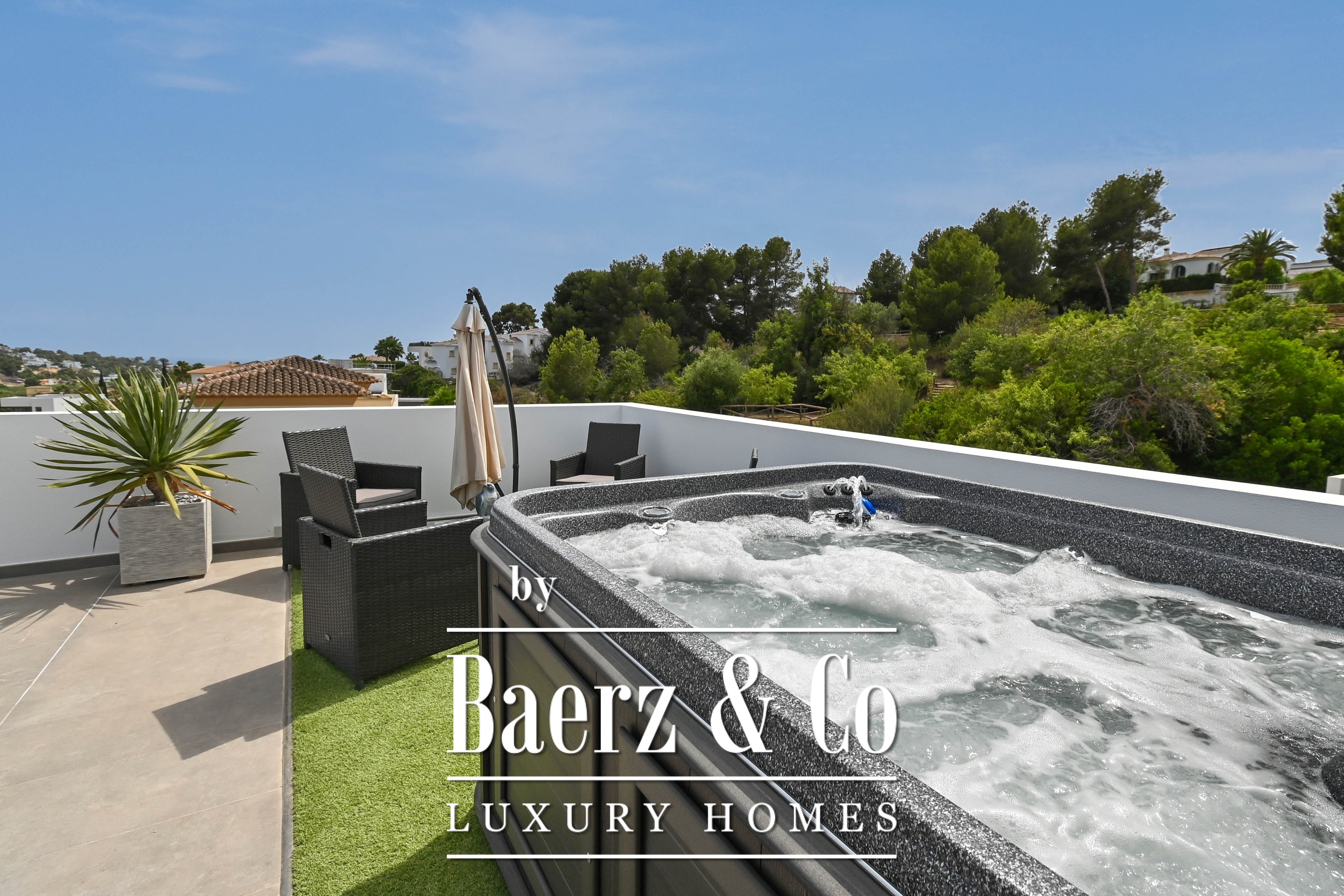 This modern and light-filled villa in the popular residential area of Sol Park, close to the centre of Moraira, offers everything you would expect from contemporary comfort and refined finishes.