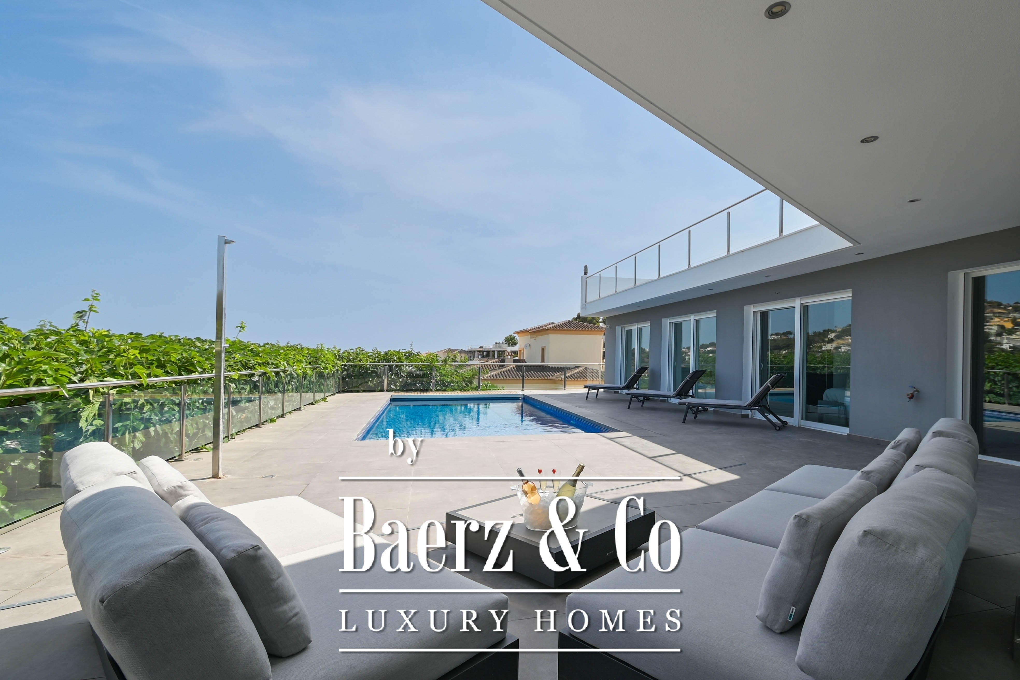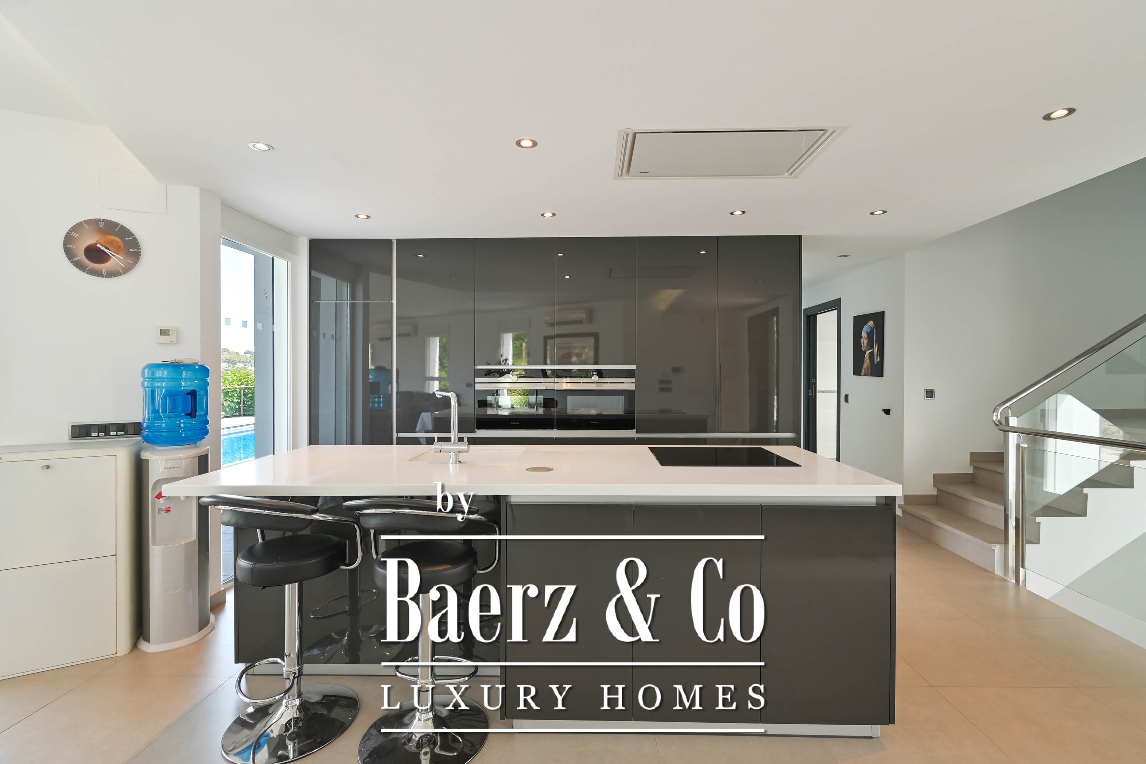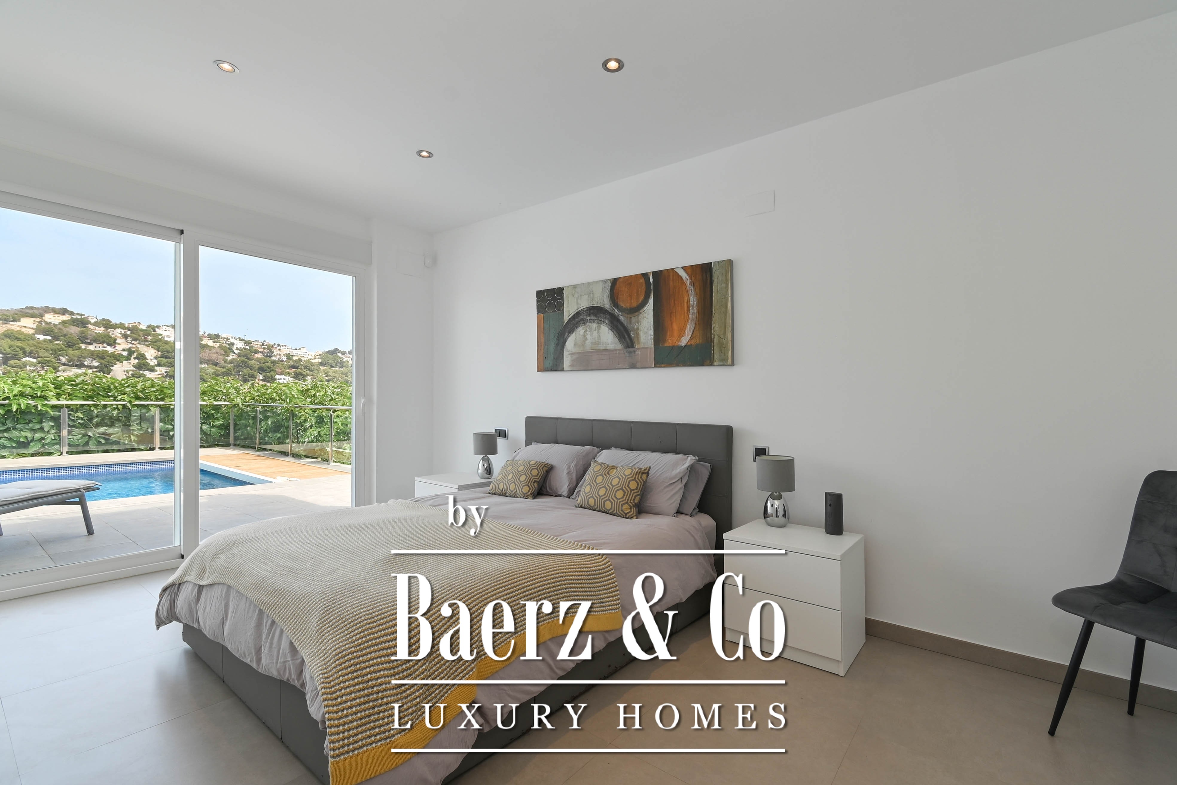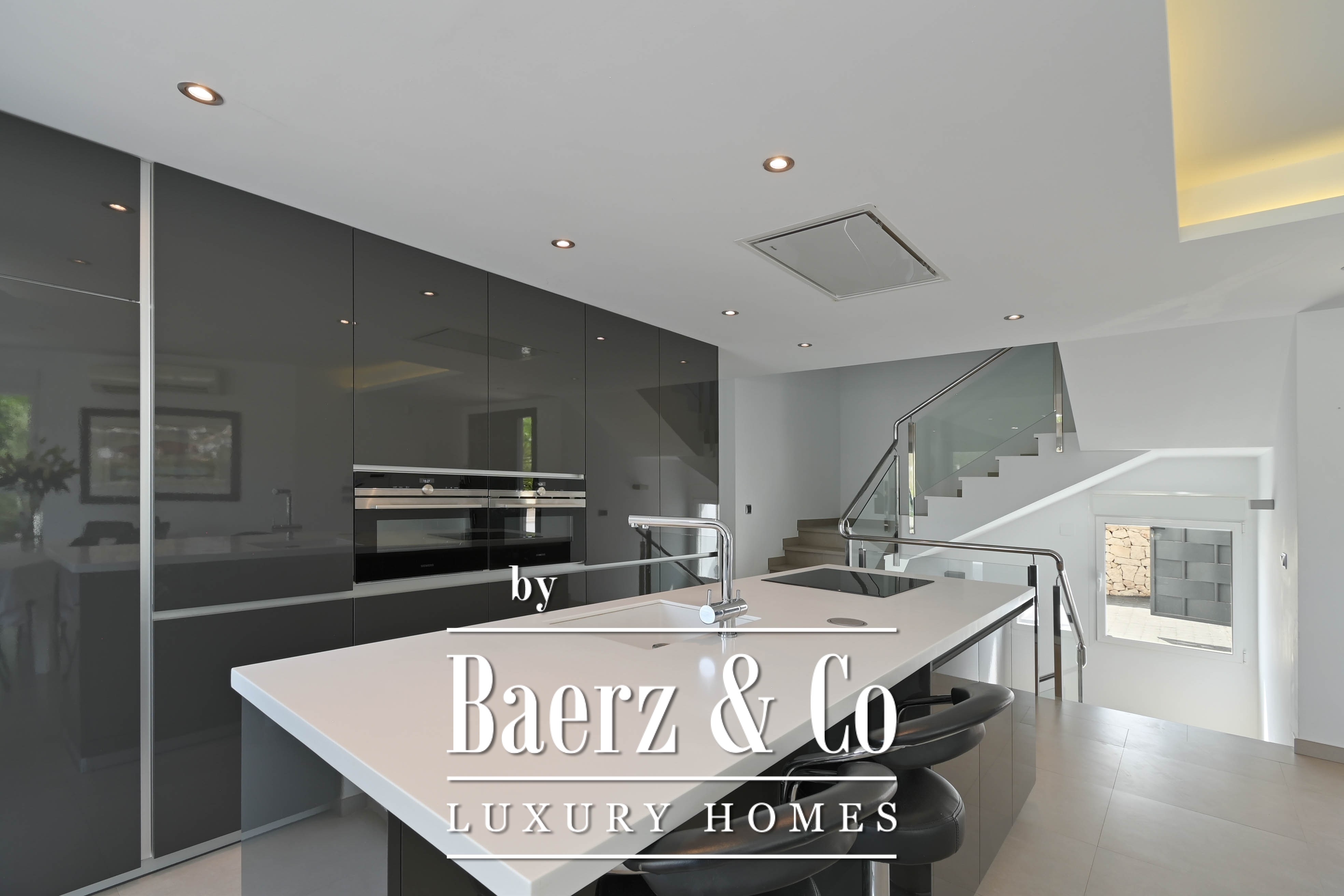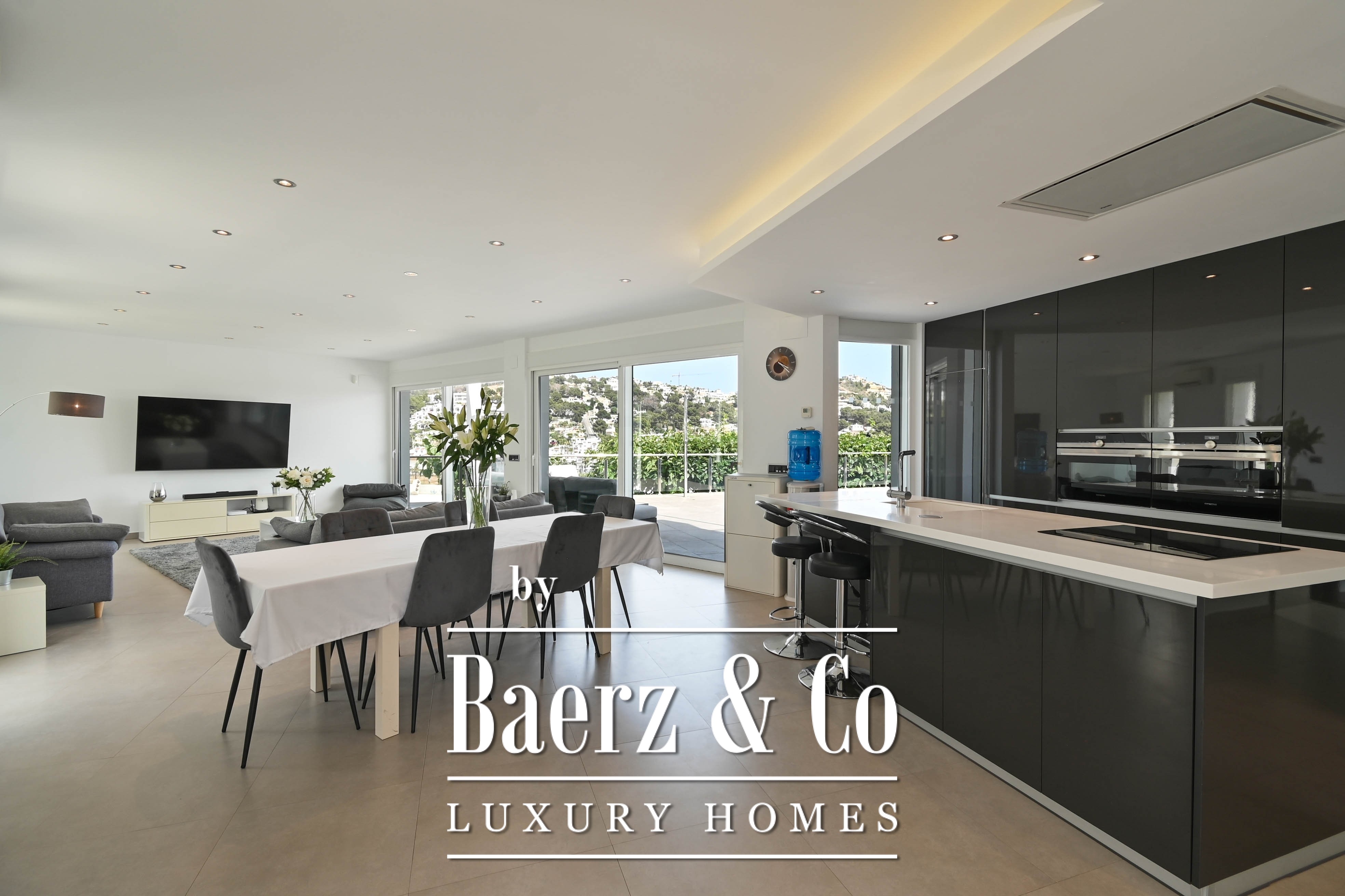 This modern and light-filled villa in the popular residential area of Sol Park, close to the centre of Moraira, offers everything you would expect from contemporary comfort and refined finishes.