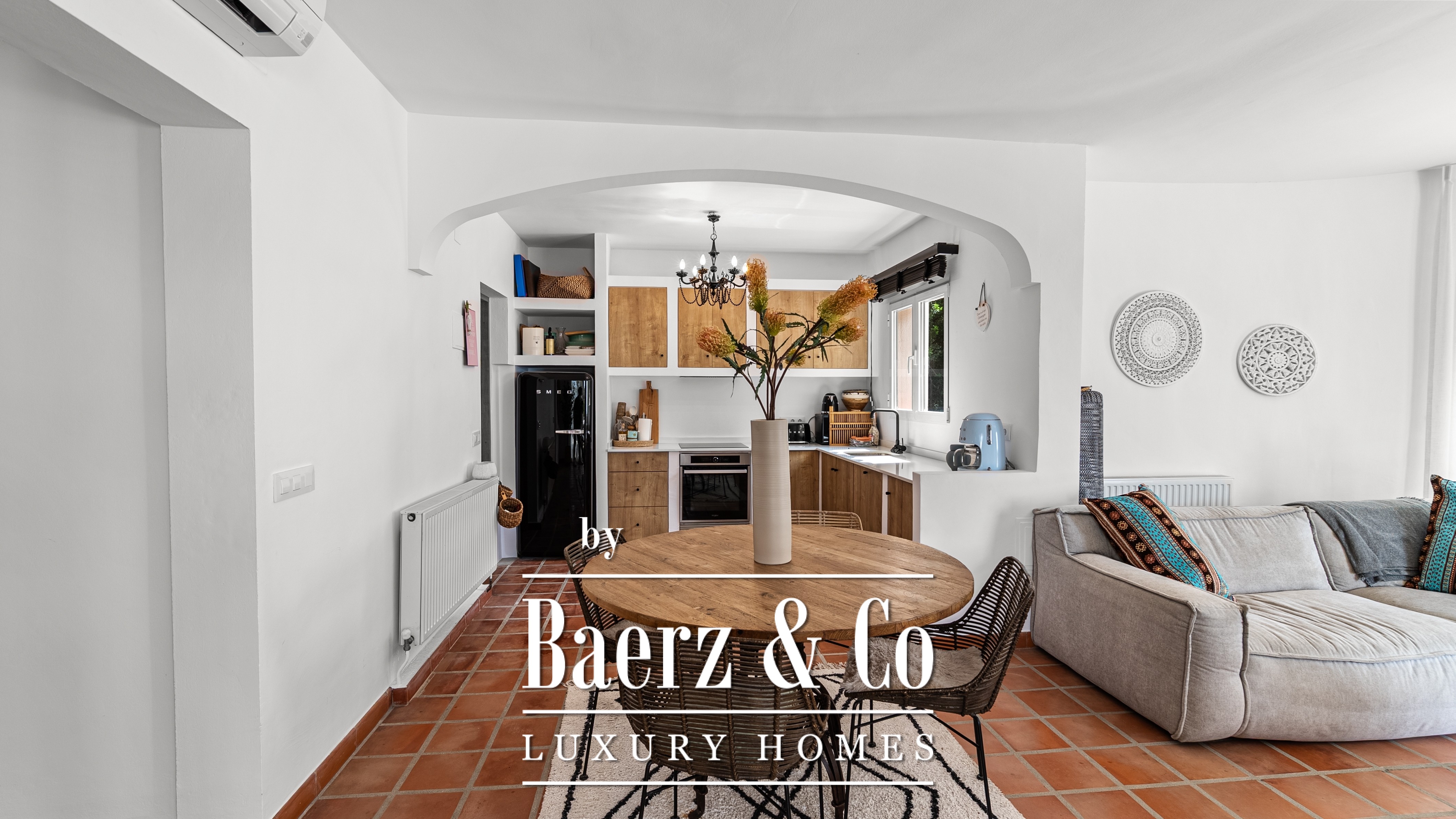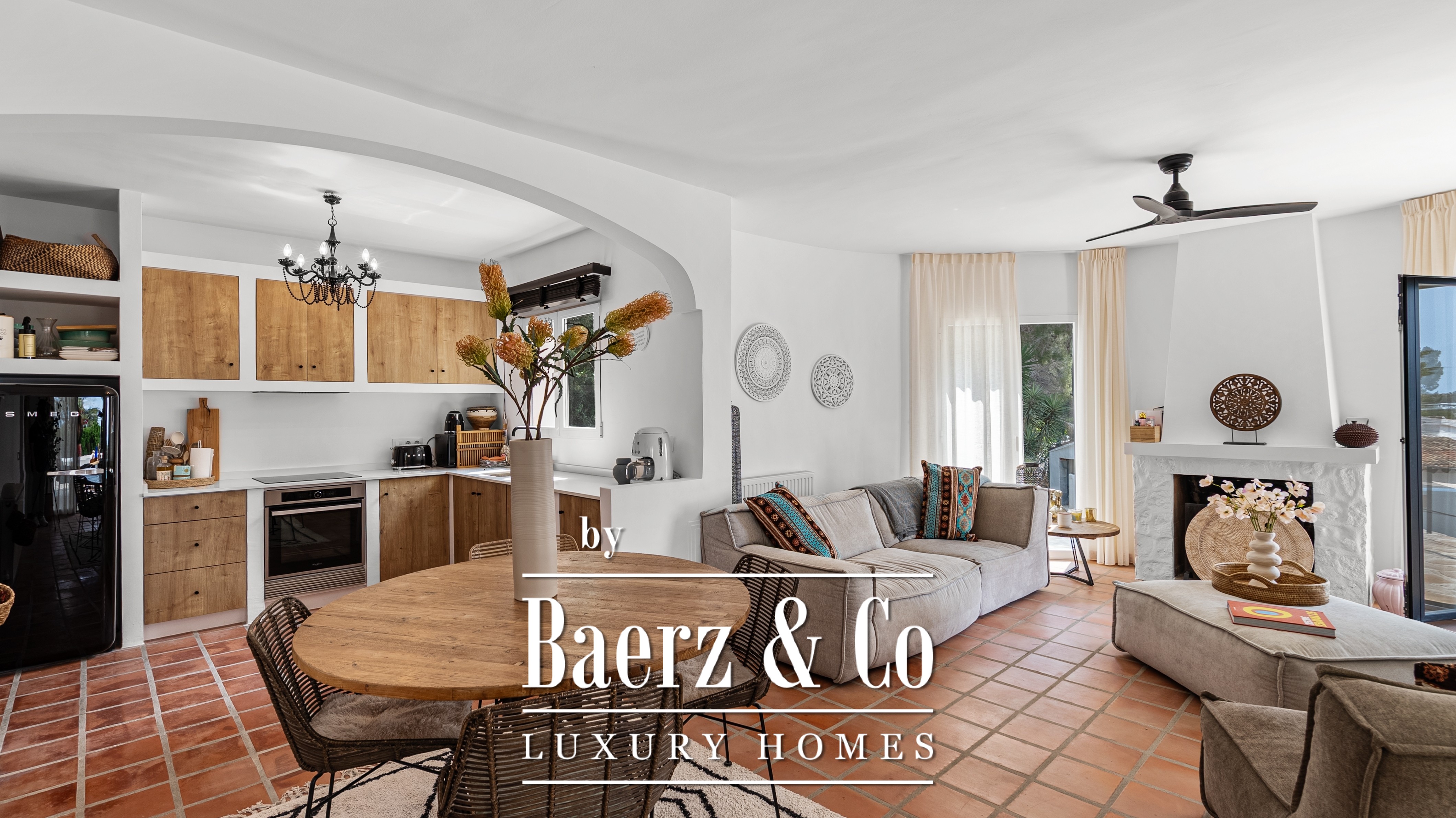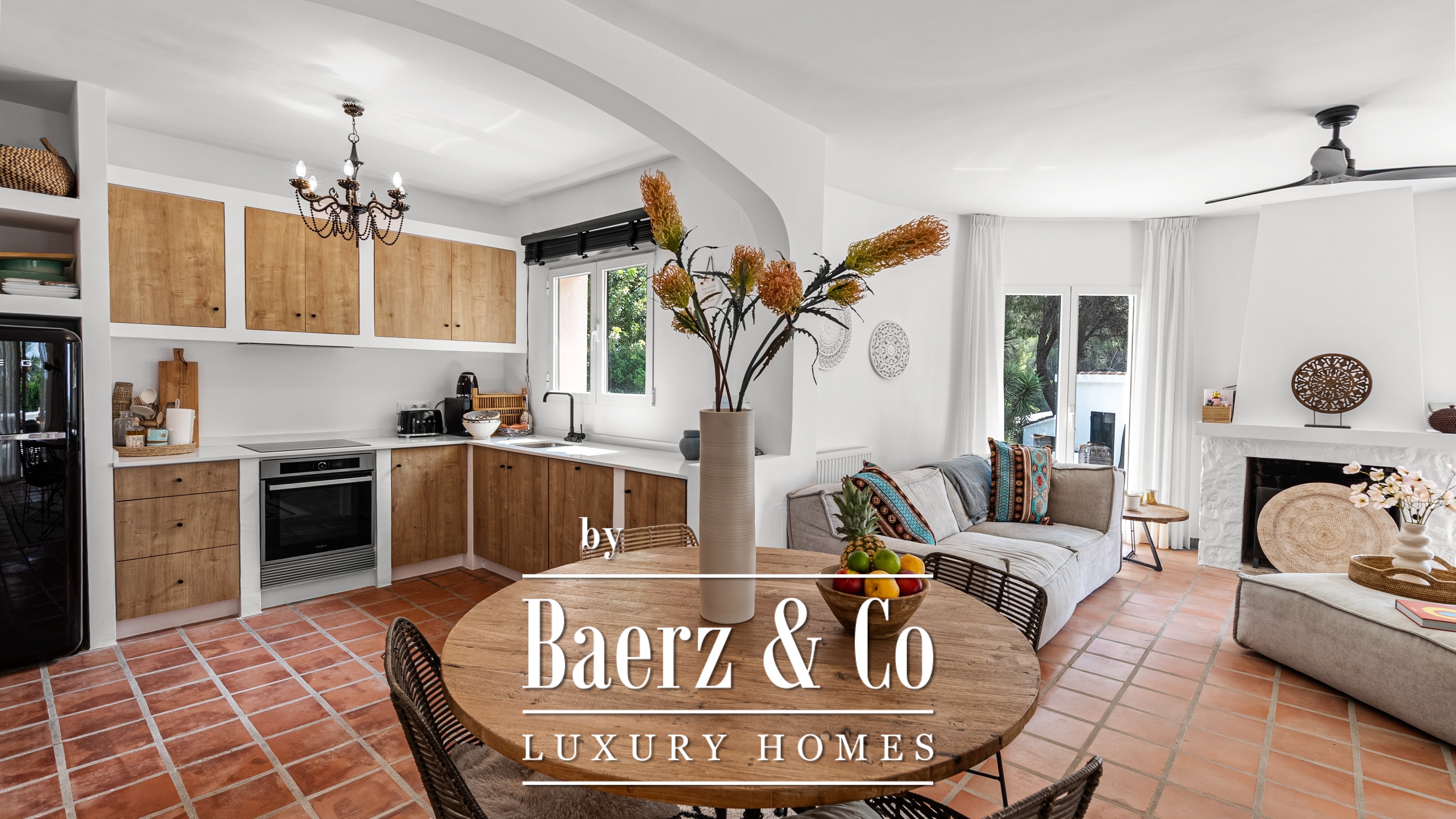 The open kitchen flows seamlessly into the living area, where natural light and atmosphere merge. Direct access to the terrace makes it ideal for those who love outdoor living, with the feeling of being on holiday every day.