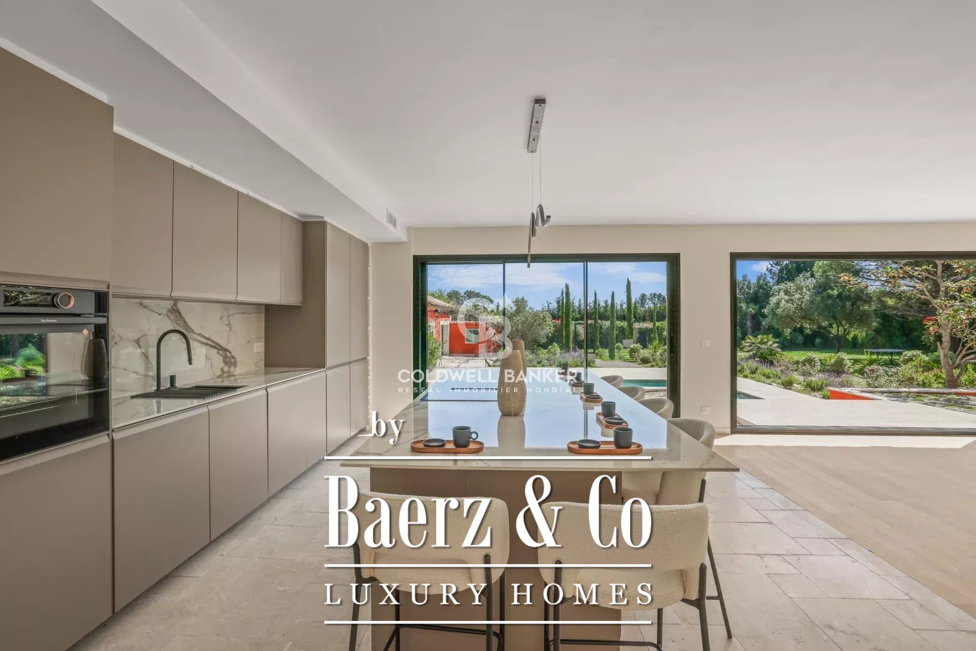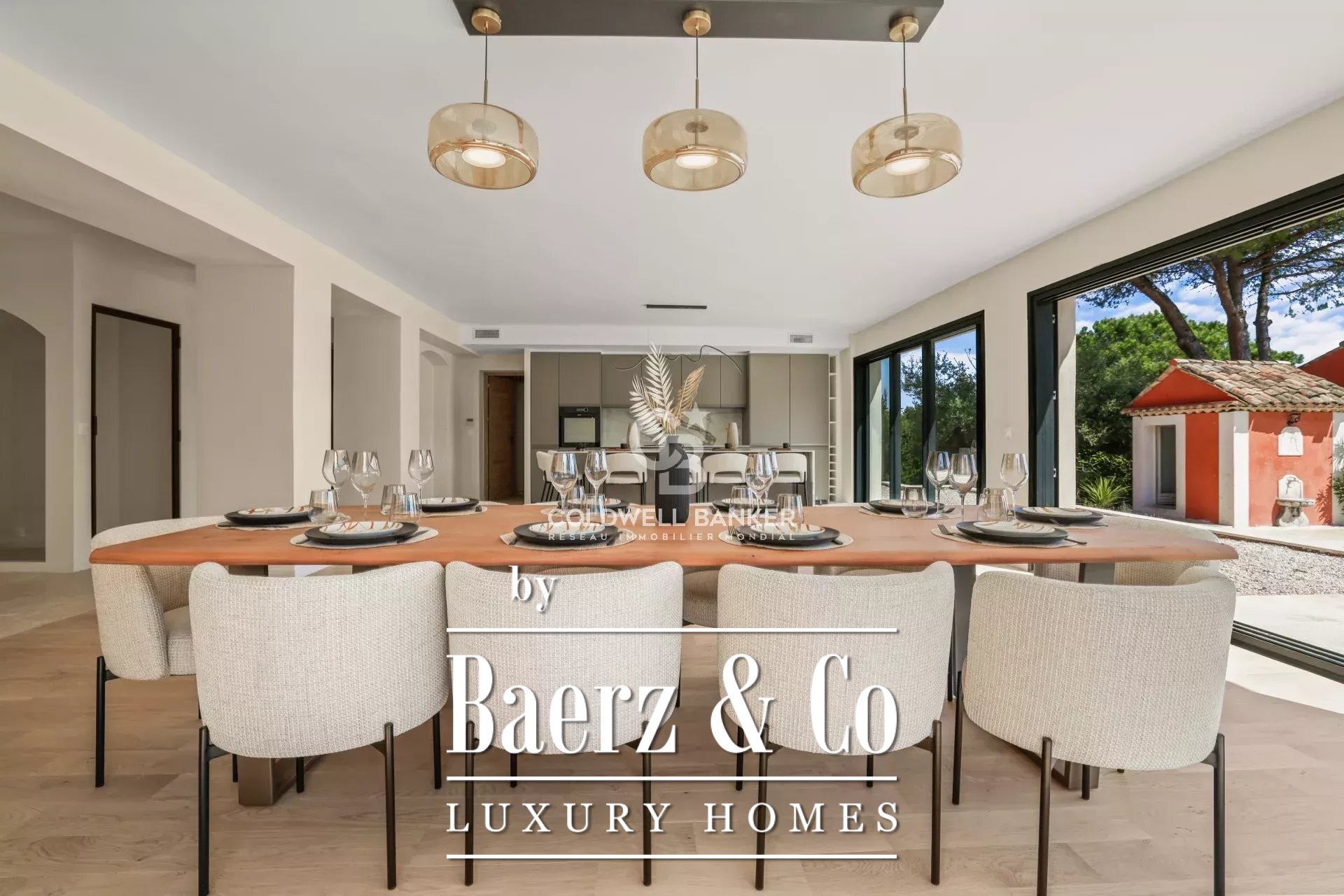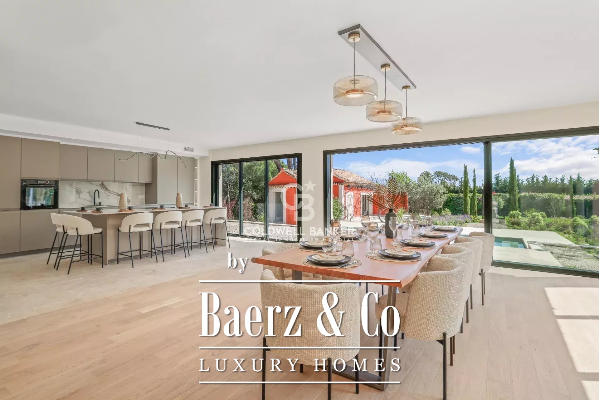 suite with dressing room opening onto a terrace and a master space with dressing room and full bathroom opening onto the terrace. Two guest houses, each with a bedroom and shower room, and possibility of an additional bedroom or gym. A play room with a cinema area, a laundry room, a wine cellar as well as a double garage and a garden shed complete this turnkey property!