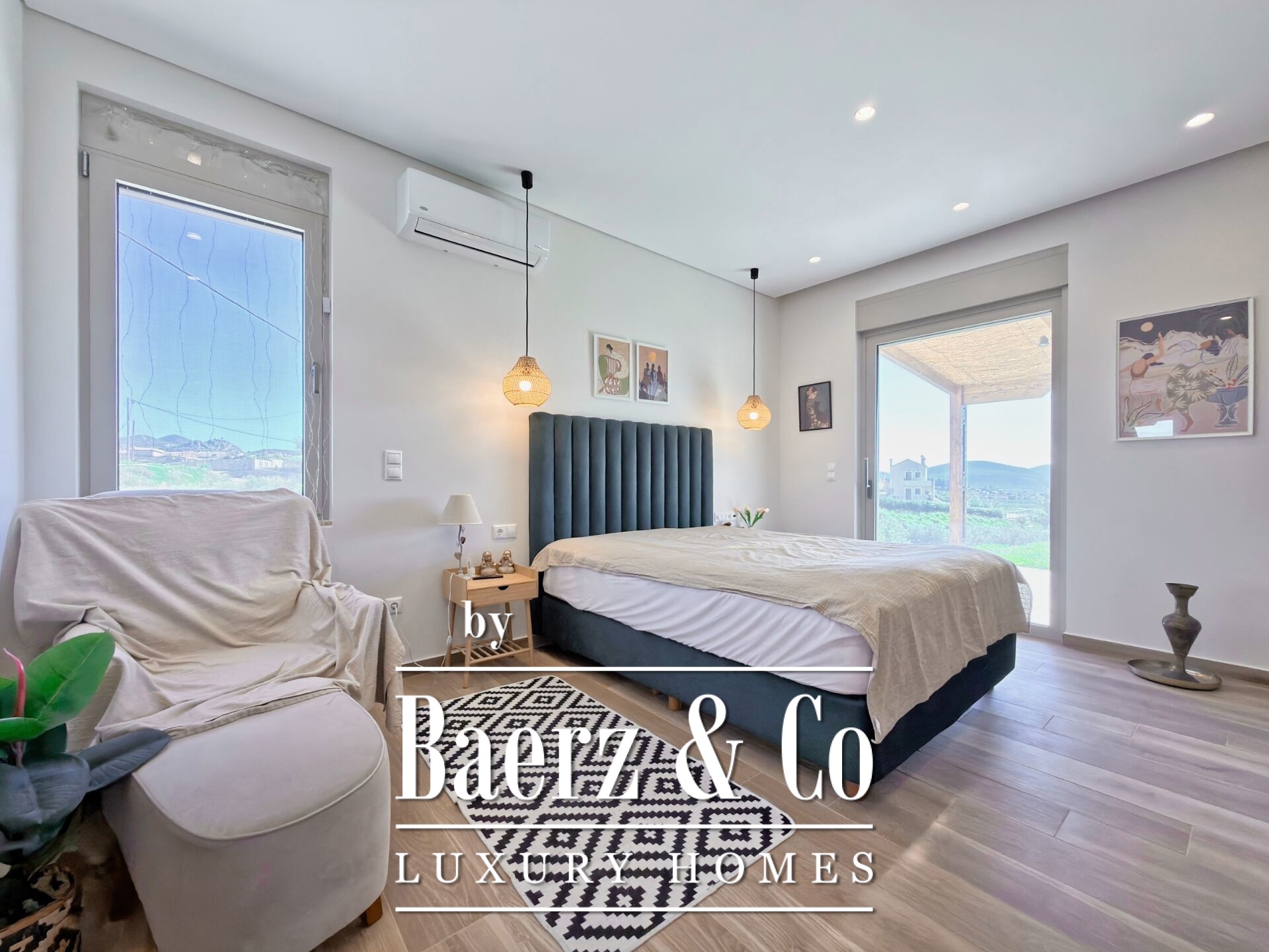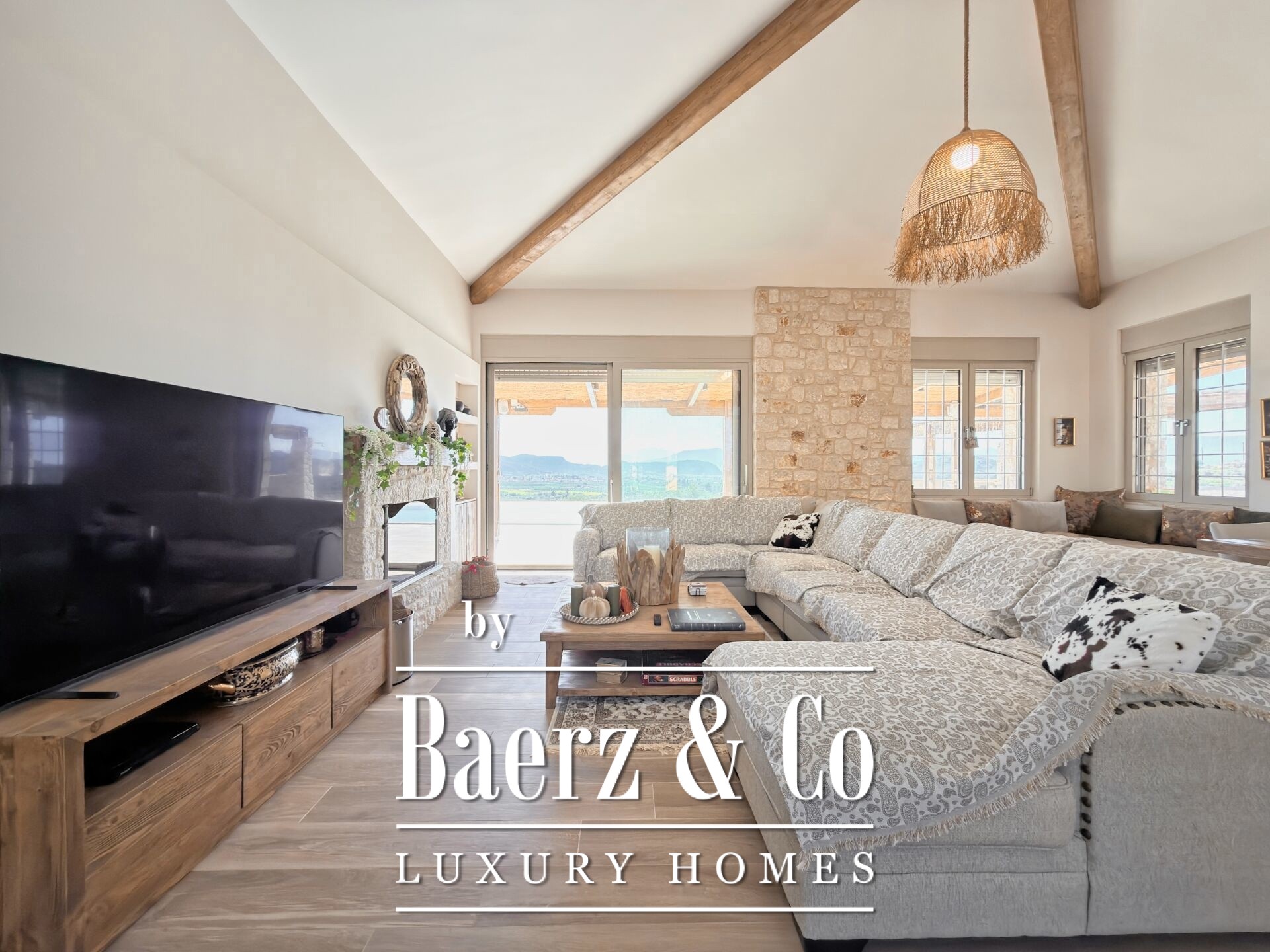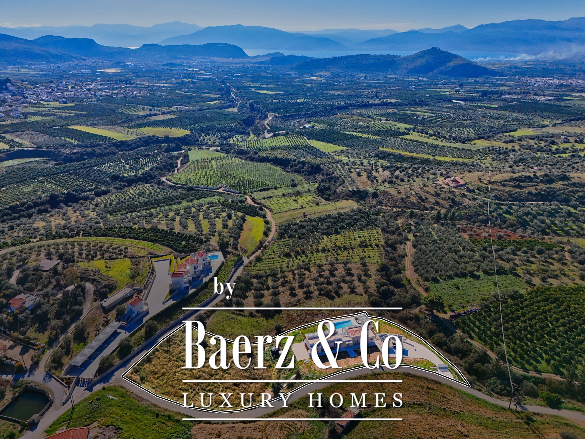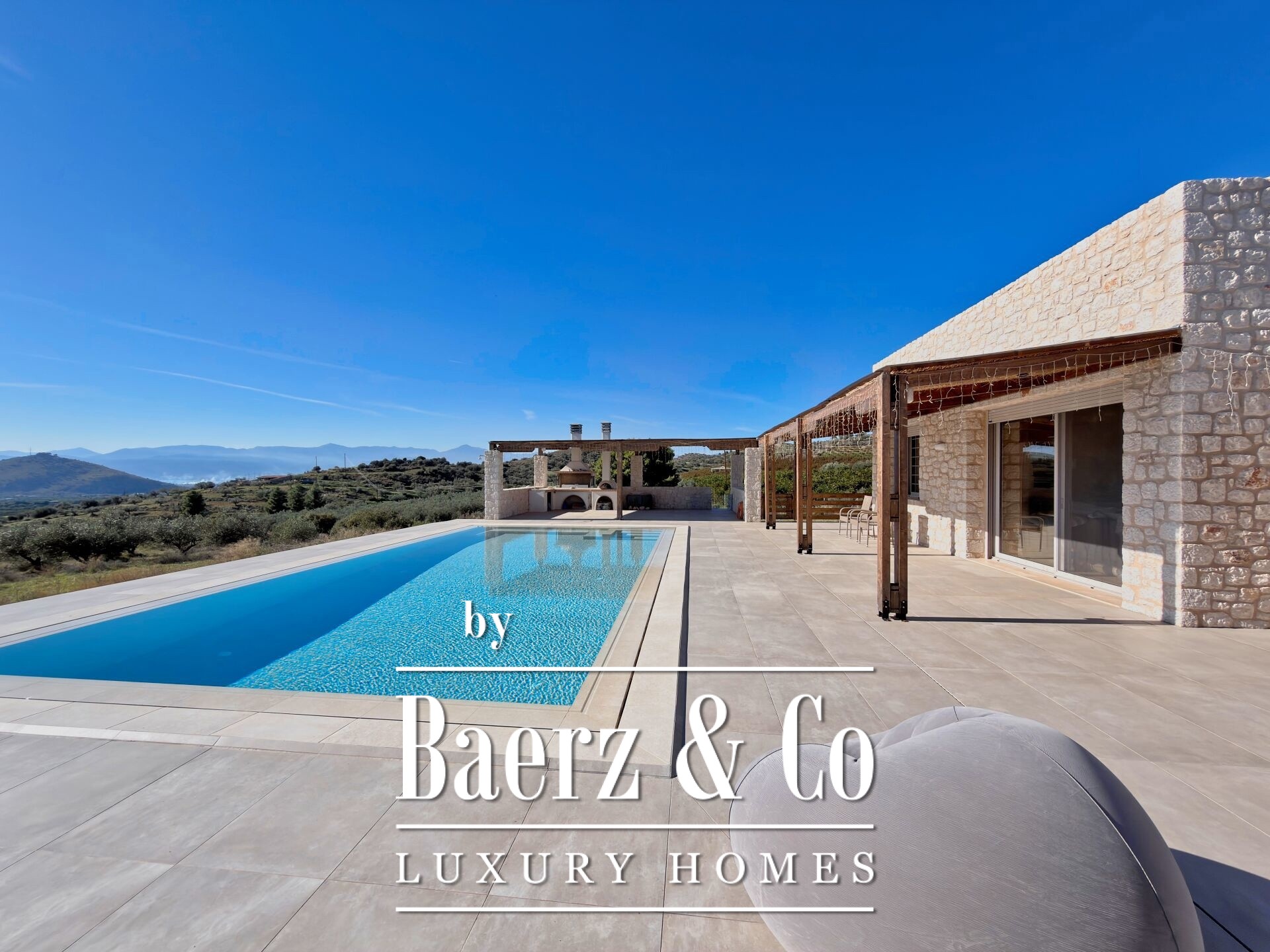 Luxury villa Nafplio presents a rare opportunity to inhabit a contemporary residence in one of Greece’s most tranquil and visually compelling locations. This 232 m² ground-floor home gracefully inhabits a 5,255 m² plot, where panoramic views over Nafplio and a western orientation invite natural light deep into each space, creating a rhythm of openness that aligns with the surrounding landscape.