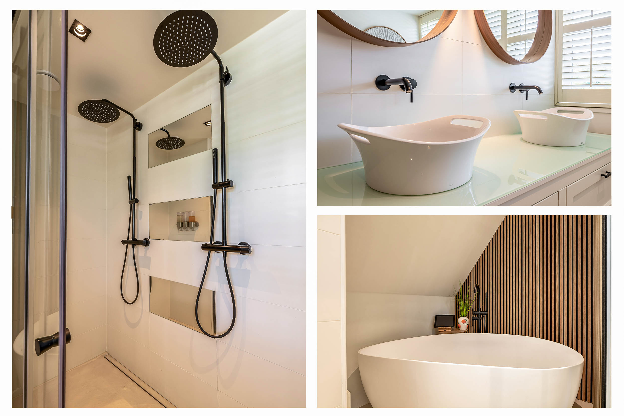 Drie slaapkamers met airco, houten vloerdelen en vloerverwarming. Twee slaapkamers bieden toegang tot het dakterras. De luxe badkamer uit 2023 is voorzien van een vrijstaand ligbad, dubbele inloopdouche, dubbel wastafelmeubel, 2e toilet en vloerverwarming. Nieuwe kozijnen aan de achterzijde (2023)