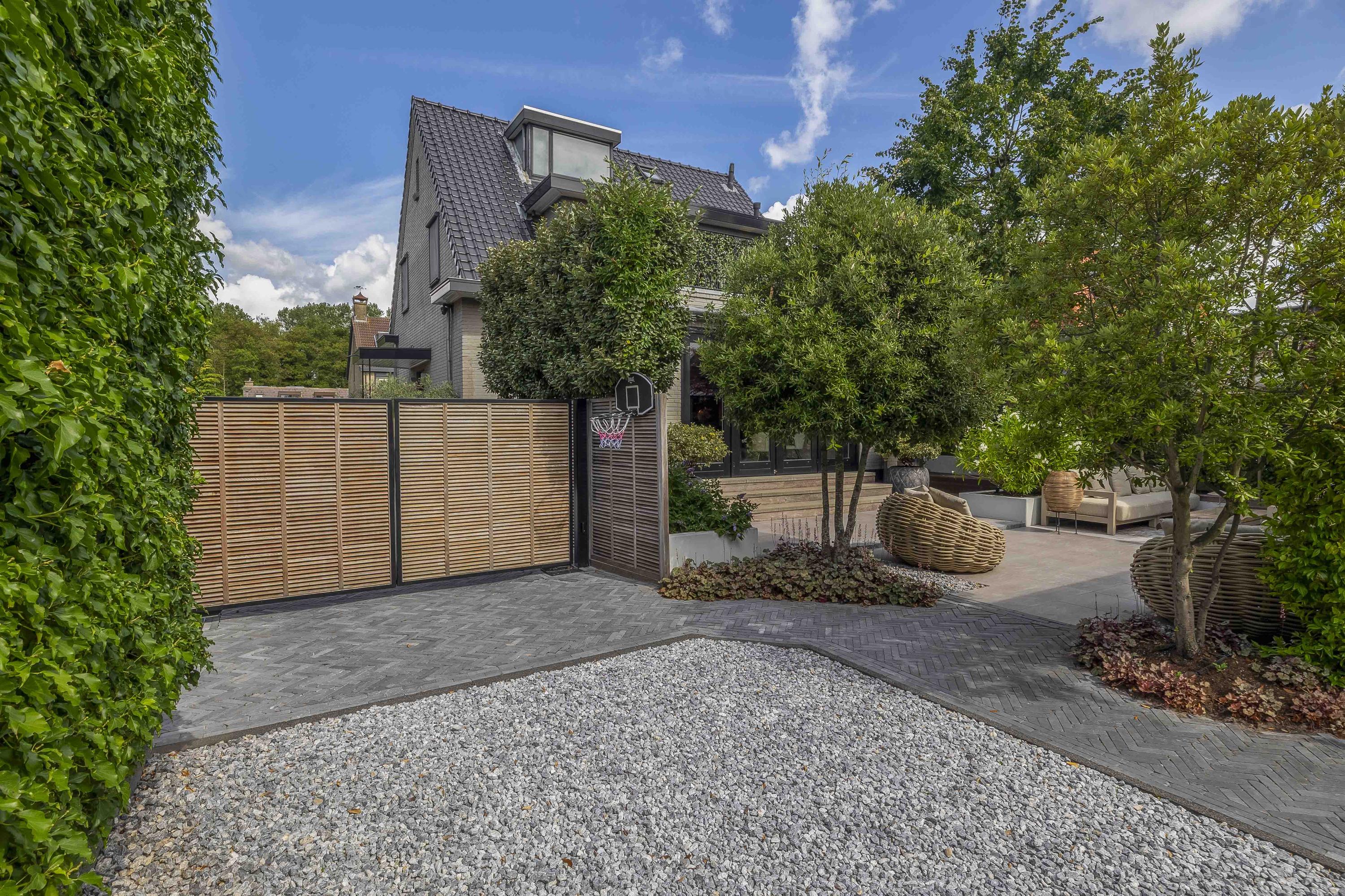 De luxe ervaring wordt doorgetrokken in het bijgebouw, ingericht als comfortabele lounge met bar en eigen toilet. Deze veelzijdige ruimte biedt volop mogelijkheden, zoals een hobbyruimte, thuiskantoor of plek om gasten te ontvangen. De hoogwaardige afwerking sluit perfect aan bij de woning en de tuin. In de royale, verwarmde garage en onder de riante carport is er voldoende ruimte voor meerdere luxe voertuigen. De elektrisch bedienbare toegangspoorten zorgen voor optimale veiligheid.