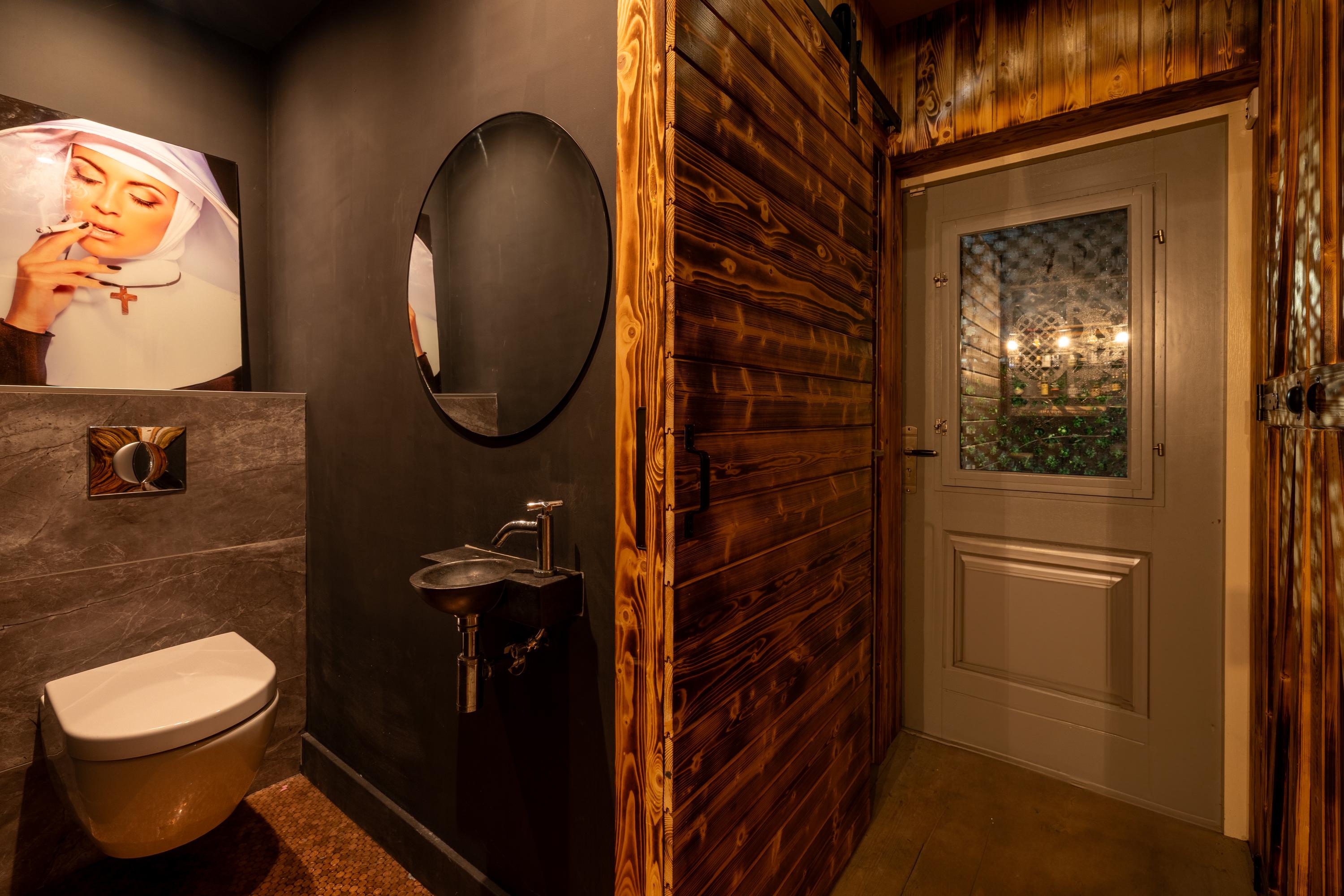 De riante woonkamer ademt rust en klasse dankzij een stijlvolle wandafwerking, een prachtige vloer in Hongaarse punt en openslaande deuren naar de tuin. De grote raampartijen zorgen voor een natuurlijke lichtinval, wat bijdraagt aan de warme, uitnodigende ambiance van het huis.