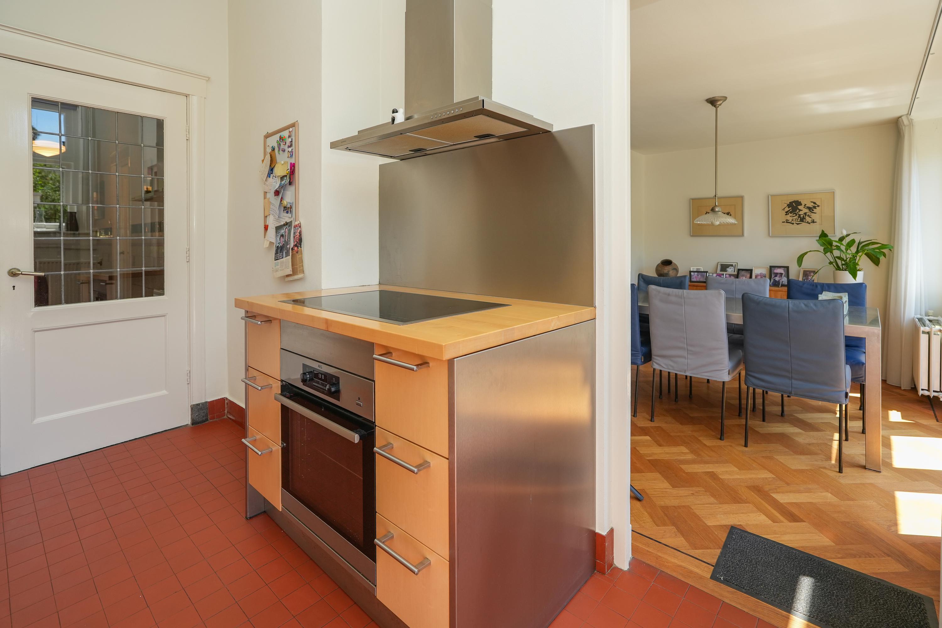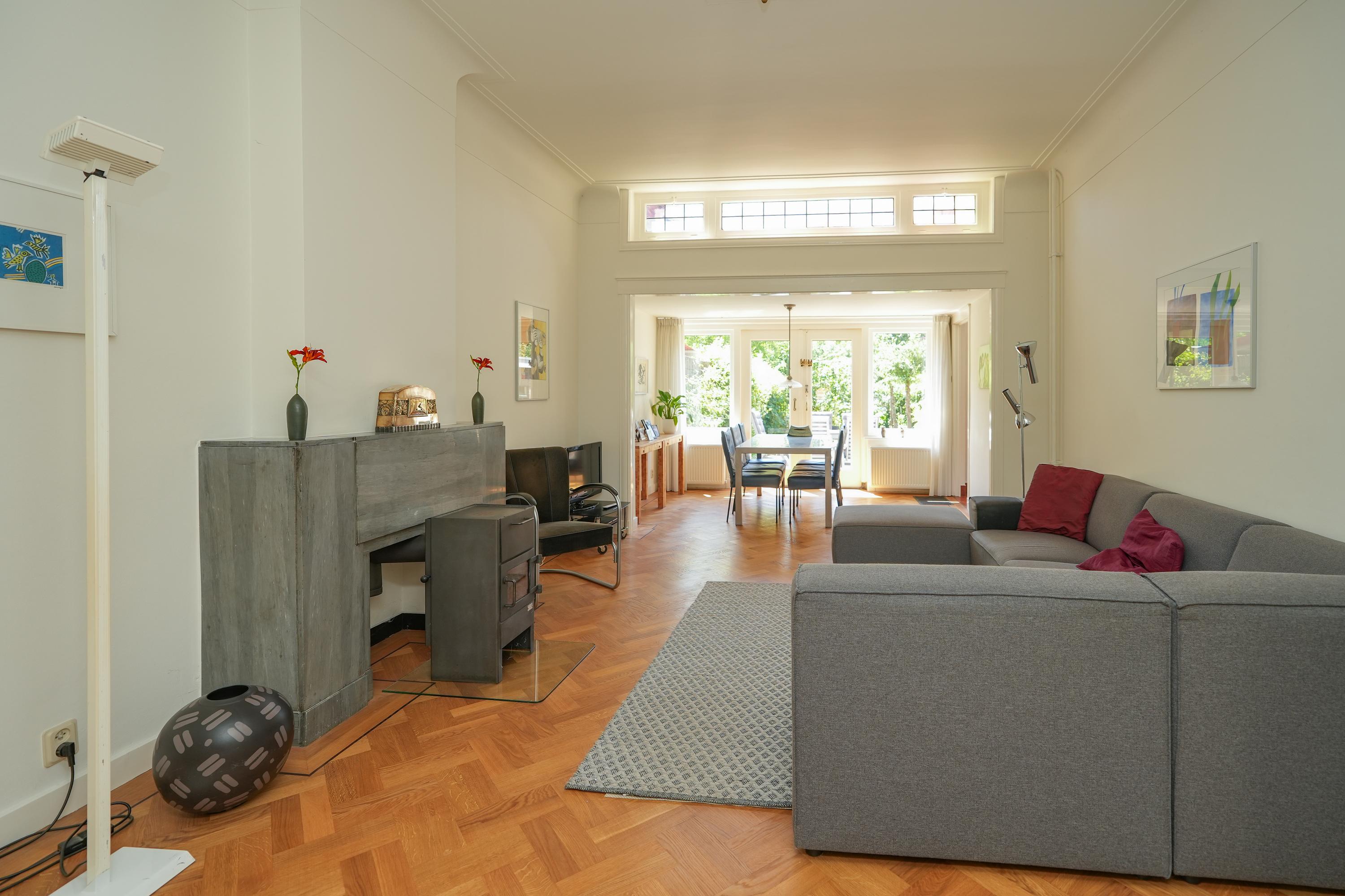 De woning is verdeeld over meerdere woonlagen en beschikt over maar liefst zes slaapkamers, twee badkamers en een ruime kelder. Ideaal voor gezinnen of voor wie comfortabel en rustig wil thuiswerken. De woonkamer en suite ademt sfeer, met prachtige glas-in-loodramen, hoge plafonds, schouwen en paneeldeuren die het karakter van het huis onderstrepen. De originele stijlkenmerken zijn op zorgvuldige wijze behouden. Verder bevinden zich op de eerste verdieping onder andere een balkon aan de voorzijde en een dakterras aan de achterzijde, waar je kunt genieten van rust en uitzicht op de groene achtertuin. De zolderverdieping biedt naast extra slaapkamers ook toegang tot een praktische bergzolder. De achtertuin is diep, vol privacy en verrassend groen. Hier vind je ook een stenen berging en een handige achterom. En met een energielabel B, is deze woning bovendien opvallend duurzaam voor zijn bouwjaar!