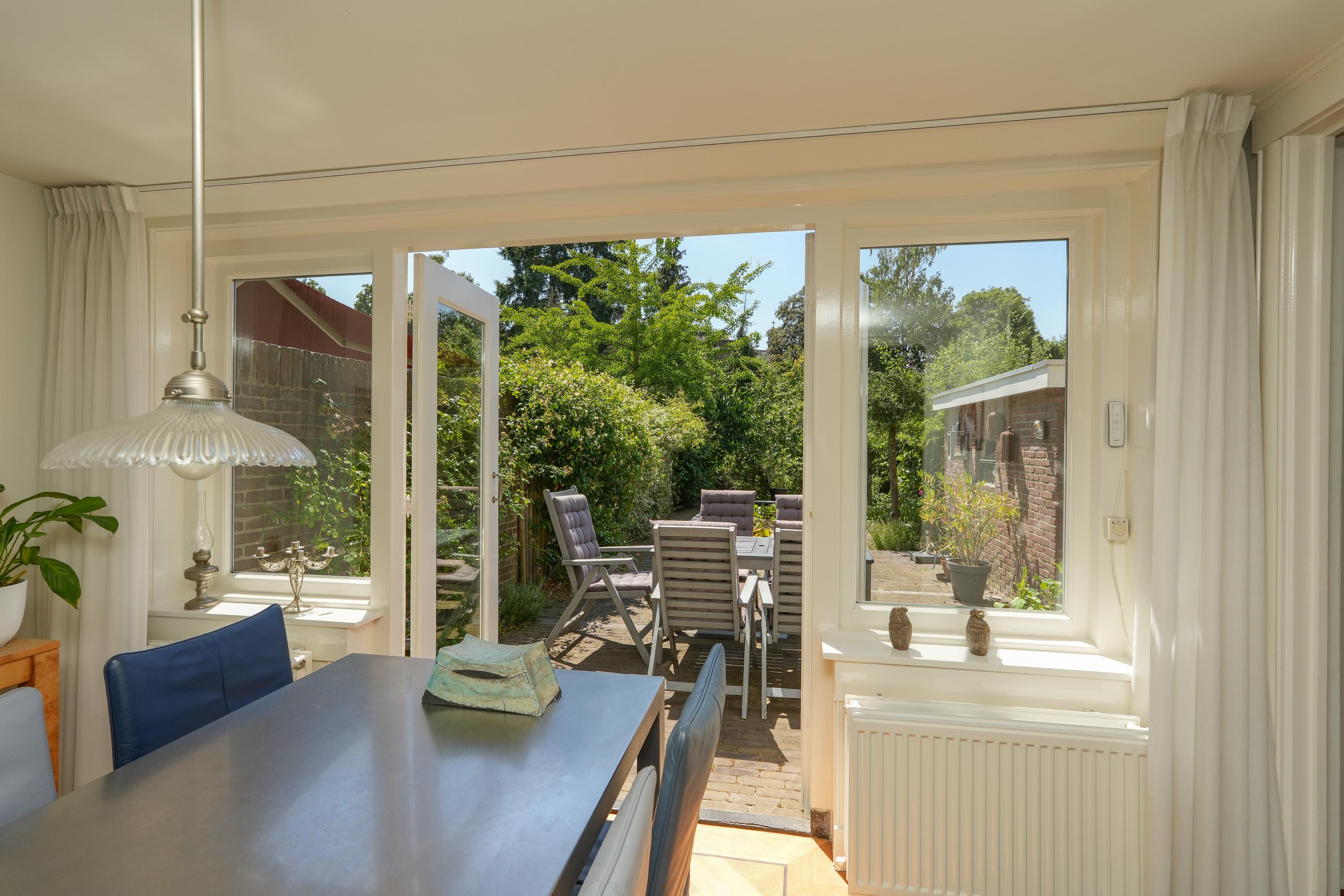 Entree in de prachtige, klassieke vestibule, hal met trapopgang, toegang tot de kelder en vaste kast met de mogelijkheid om witgoedaansluitingen te realiseren. Het is fijn binnenkomen in de prachtige vestibule met glas-in-lood tochtdeur en originele wand- en vloertegels. De meterkast bevindt zich bovenaan de trap naar de kelder. Daarnaast zijn het toilet met fonteintje en de woonkamers en keuken bereikbaar vanuit de hal. De sfeervolle woonkamer en suite beschikt over vaste kasten naast de en suitedeuren, een erker aan de voorzijde en aan de achterzijde een serre met openslaande deuren naar de tuin. Tussen de achterkamer en de serre zorgen fraaie glas-in-loodramen boven de serre voor extra sfeer en een prettige lichtinval. De half open keuken staat in verbinding met de serre en is voorzien van diverse inbouwapparatuur. Hier is tevens een deur naar de achtertuin.