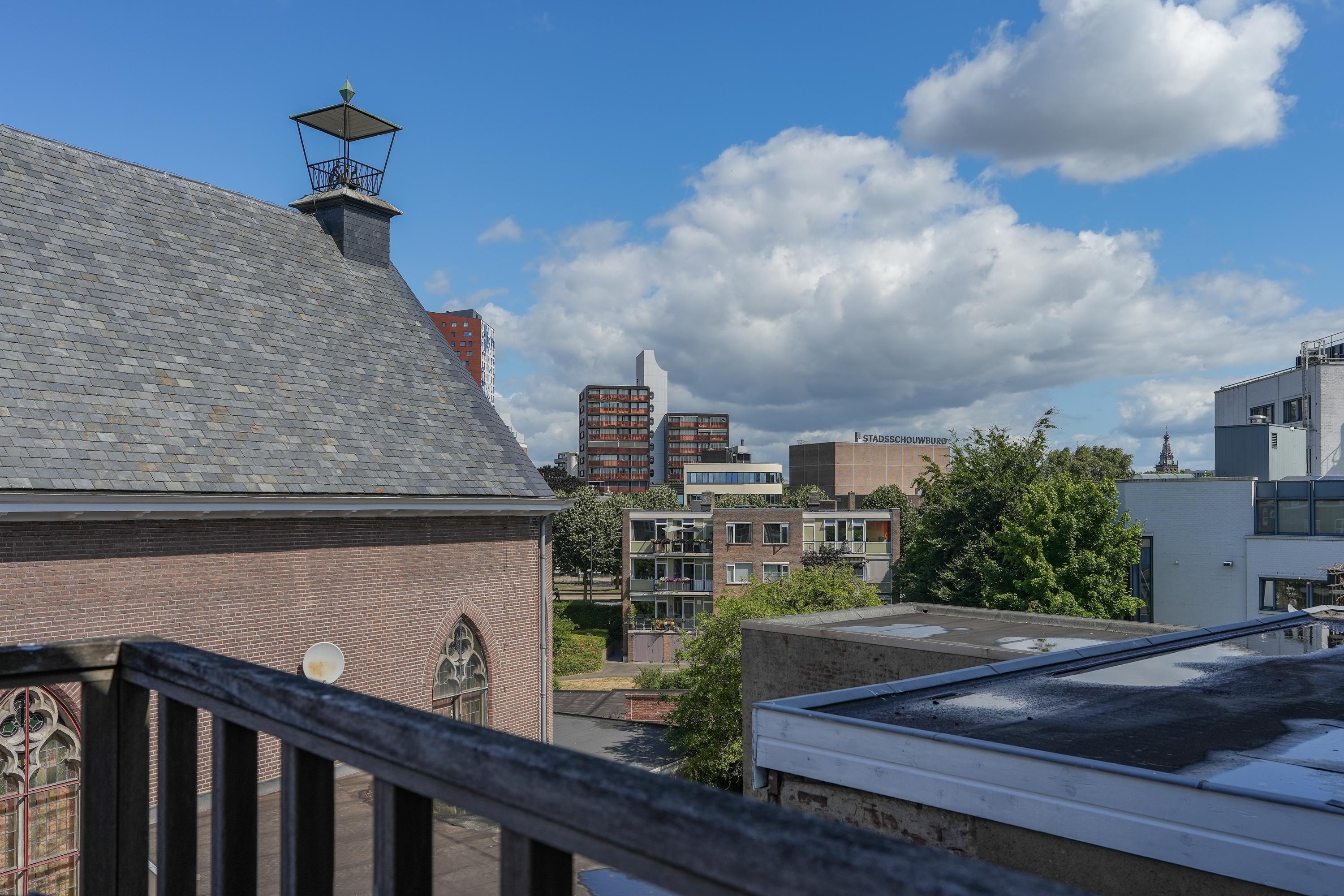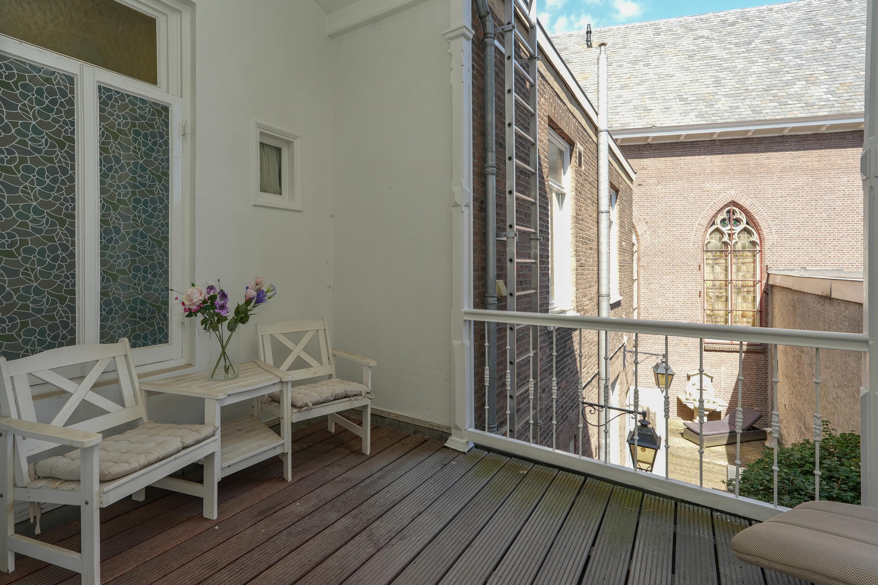 Naast een royale voortuin beschikt de woning over een balkon, loggia, dakterras én een stadstuin met veel privacy die grenst aan een voormalige kerk. De woning heeft vier woonlagen en elke verdieping is voorzien van een keuken, sanitair en een buitenruimte.