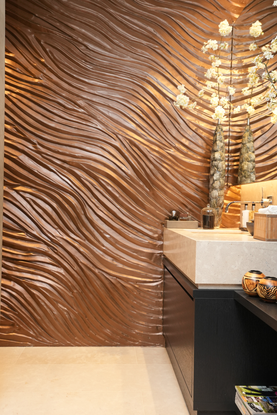 Tall glass doors, rich upholstery, exclusive wall treatments, stunning marble in the bathrooms and restrooms and the sophisticated furniture, everything is perfectly balanced with the distinct, opulent character of this penthouse.
