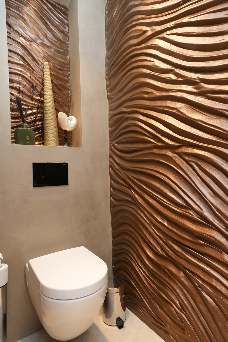 The interior design was done by high-end interior design specialist Pieter Laureys in a global, very luxurious and timeless style. In terms of color and design, every detail is perfectly aligned; this is clearly reflected in the extremely luxurious kitchen/lounge and the seamless wall unit with fitted appliances equipped with home automation technology.
