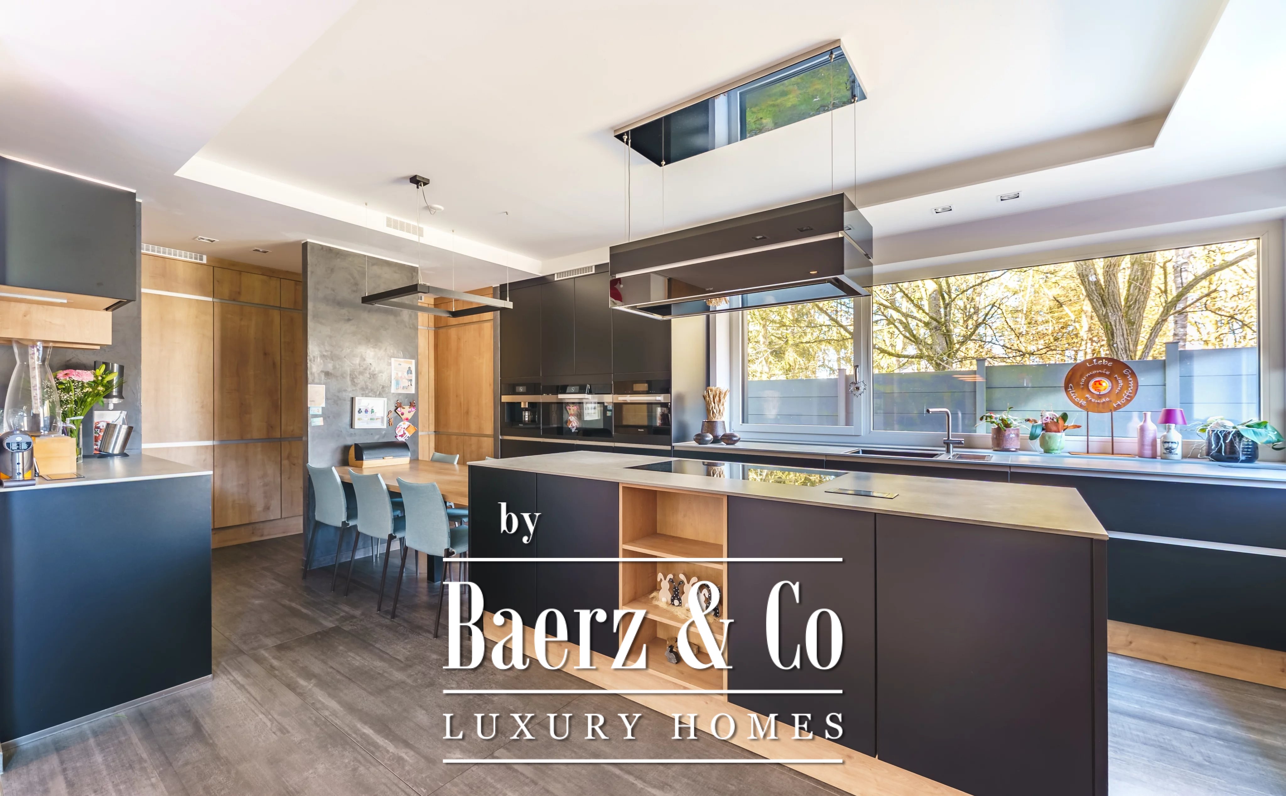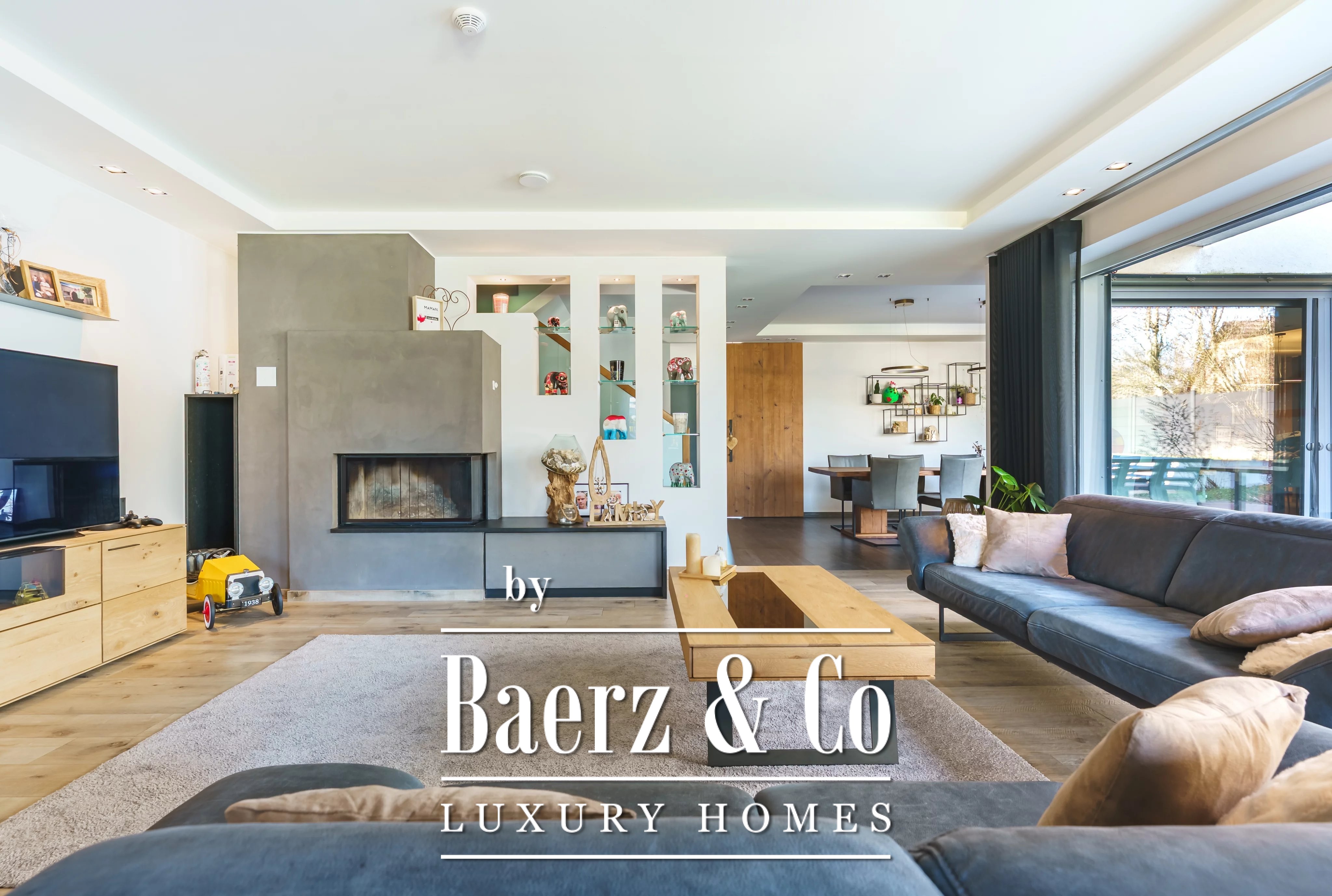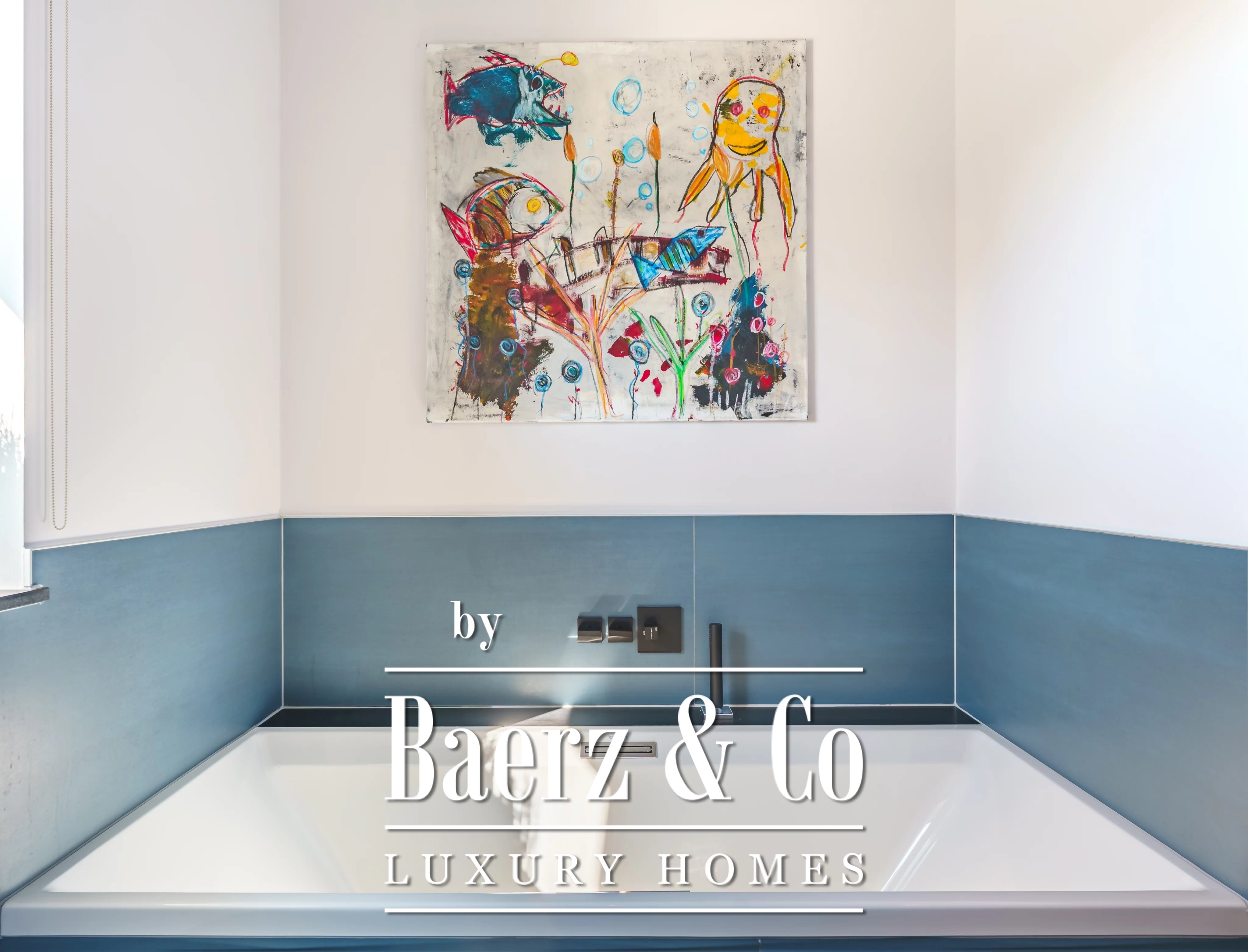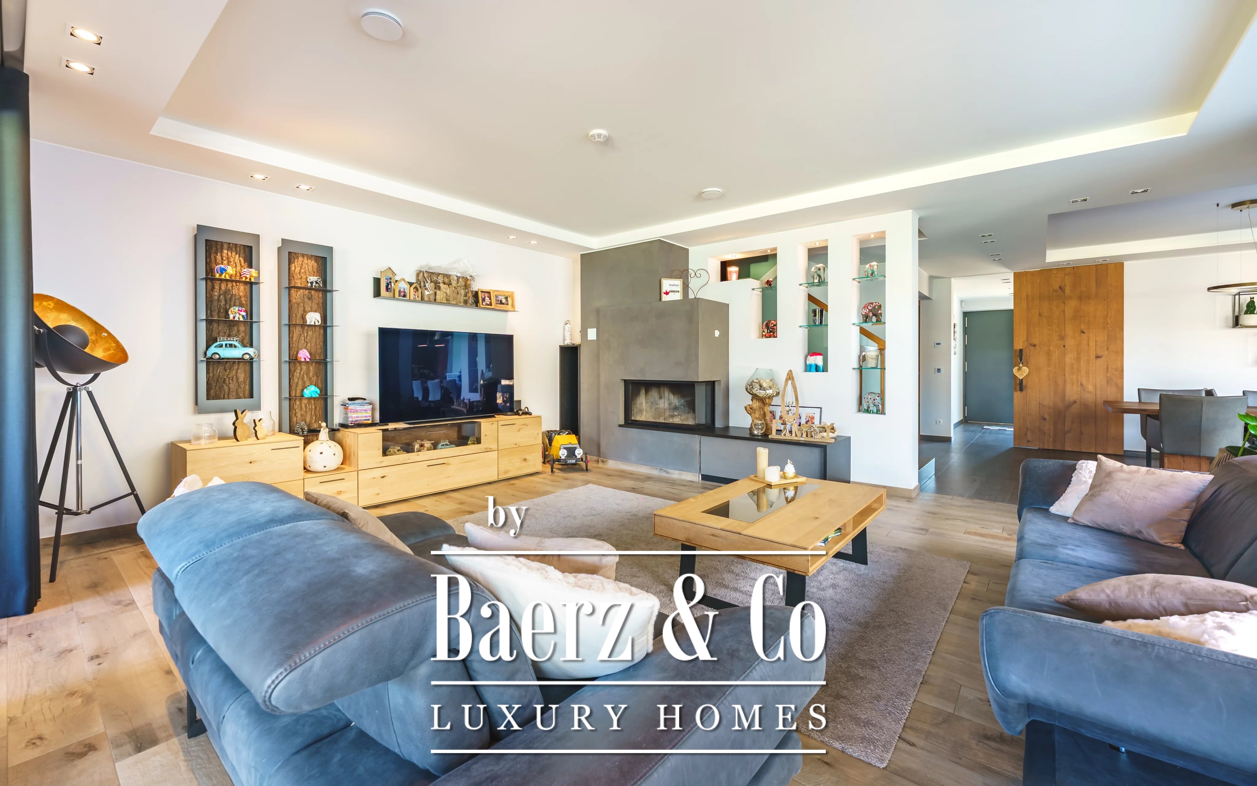 Upstairs, an additional living room creates a private retreat for family gatherings. There are five bedrooms and four bathrooms, including a master suite with a dressing room, private shower room, and a guest bedroom with en-suite. The laundry room is discreet and efficient, supporting daily comfort.