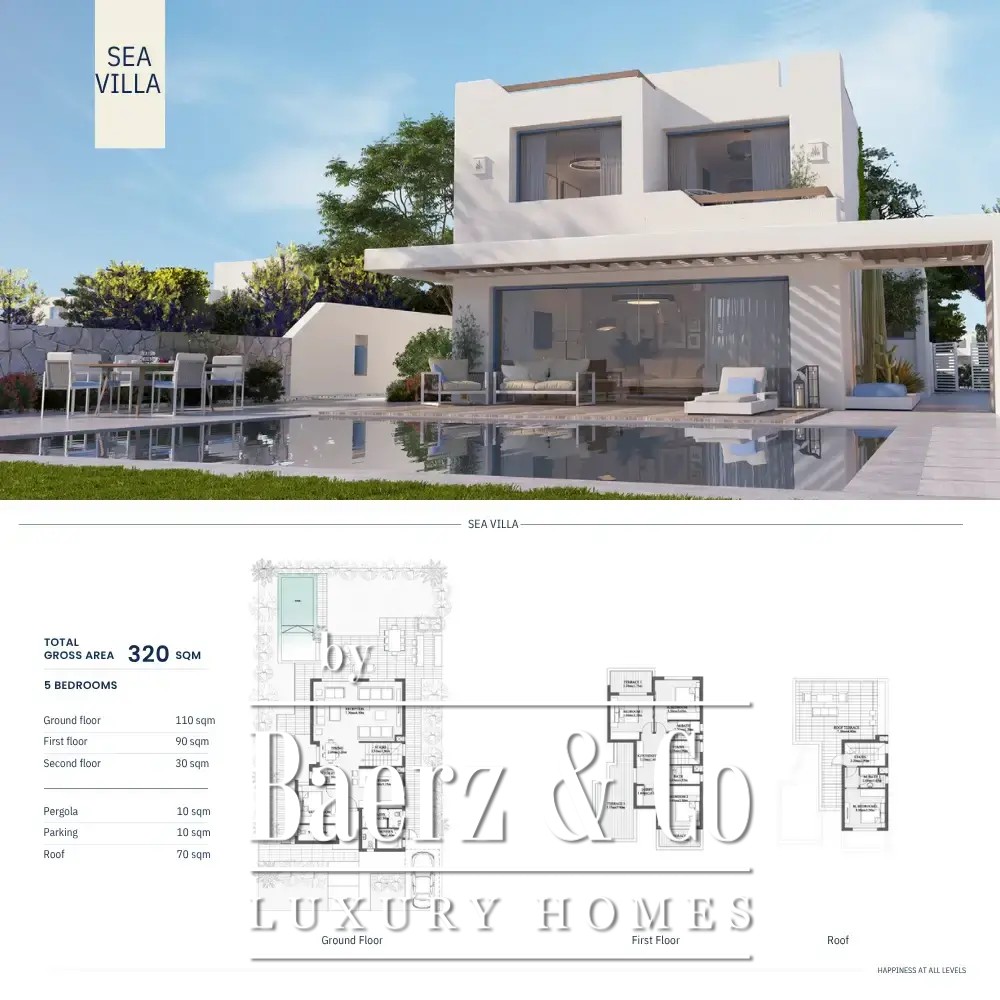 Seaview villa North Coast Egypt offers a privileged position along the Mediterranean shoreline, where every day unfolds with rare clarity and discretion. With a living area of 1,802 m², this villa shapes an expanse of tranquility and refined taste, anchored by sweeping sea views and thoughtful architecture.