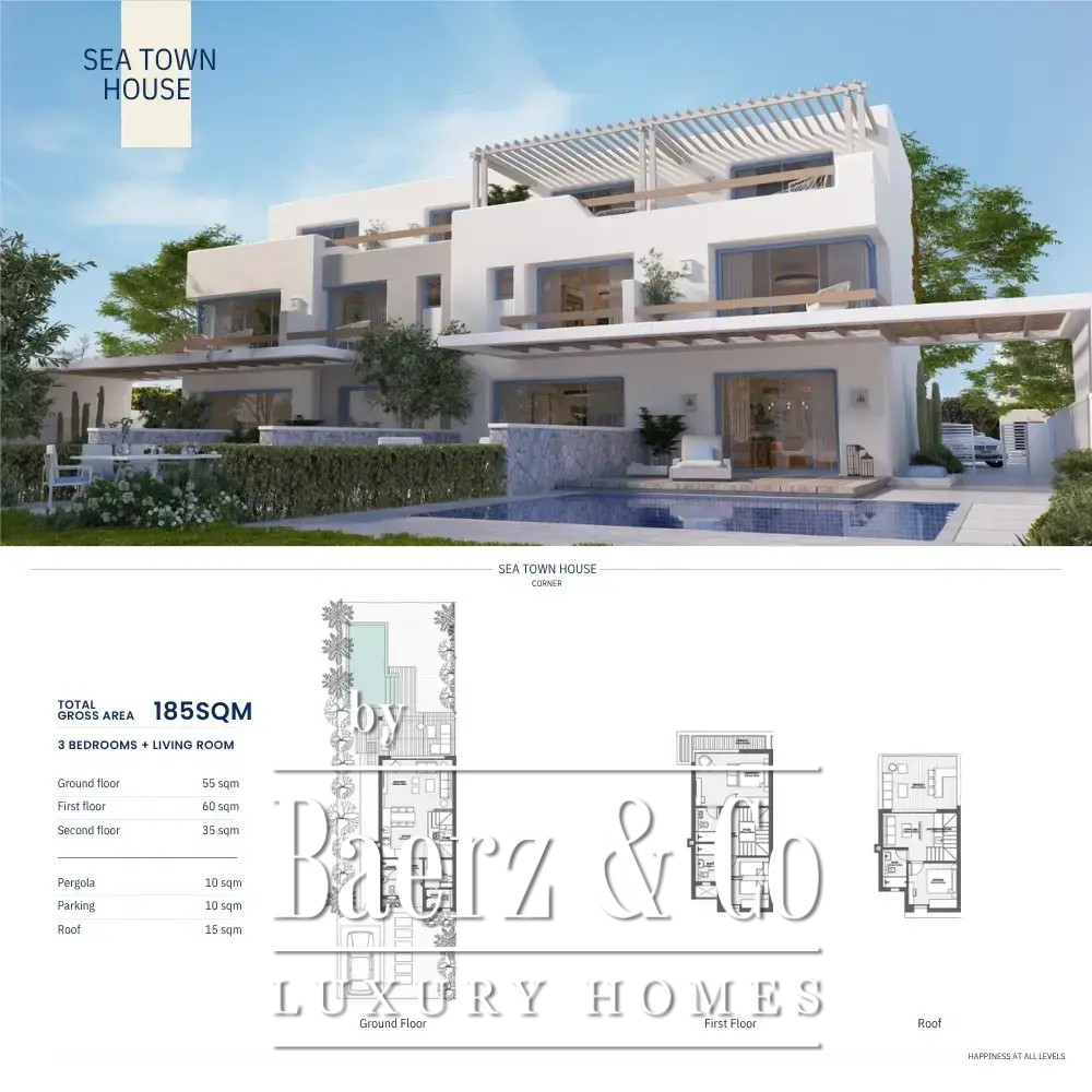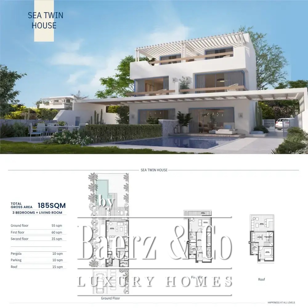 Outdoors, a swimming pool, roof terrace, and parking space enhance the sense of sanctuary and ease. Here, daily life flows between sunlit interiors and private outdoor spaces—roof terrace, garden, balcony—all designed for moments of reflection or gathering with friends. The secure coastal setting ensures peace of mind; the villa invites you to experience a lifestyle that values privacy, understated luxury, and enduring investment potential in Egypt’s coveted North Coast real estate market.