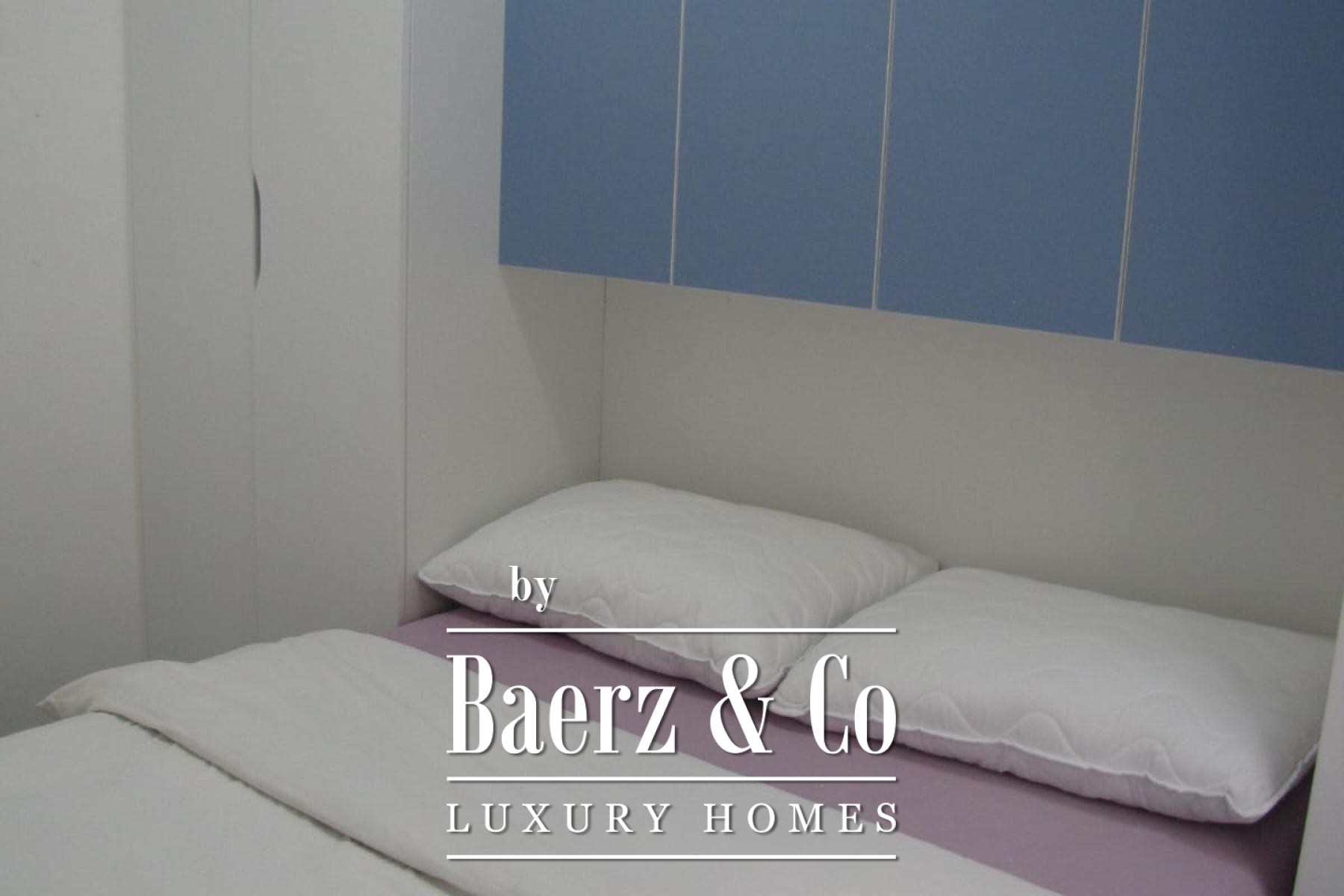 The property includes four bedrooms and four bathrooms across 121 m² of living space. Situated on a 580 m² plot, it is thoughtfully divided into three distinct residential units, creating flexibility for family living, tourism rental, or a harmonious blend of both. Large windows frame panoramic sea views, filling the interiors with natural light and an immediate sense of openness. The outdoor space offers the potential for a Mediterranean garden, sunbathing area, or even a swimming pool, reinforcing the seamless indoor-outdoor atmosphere.