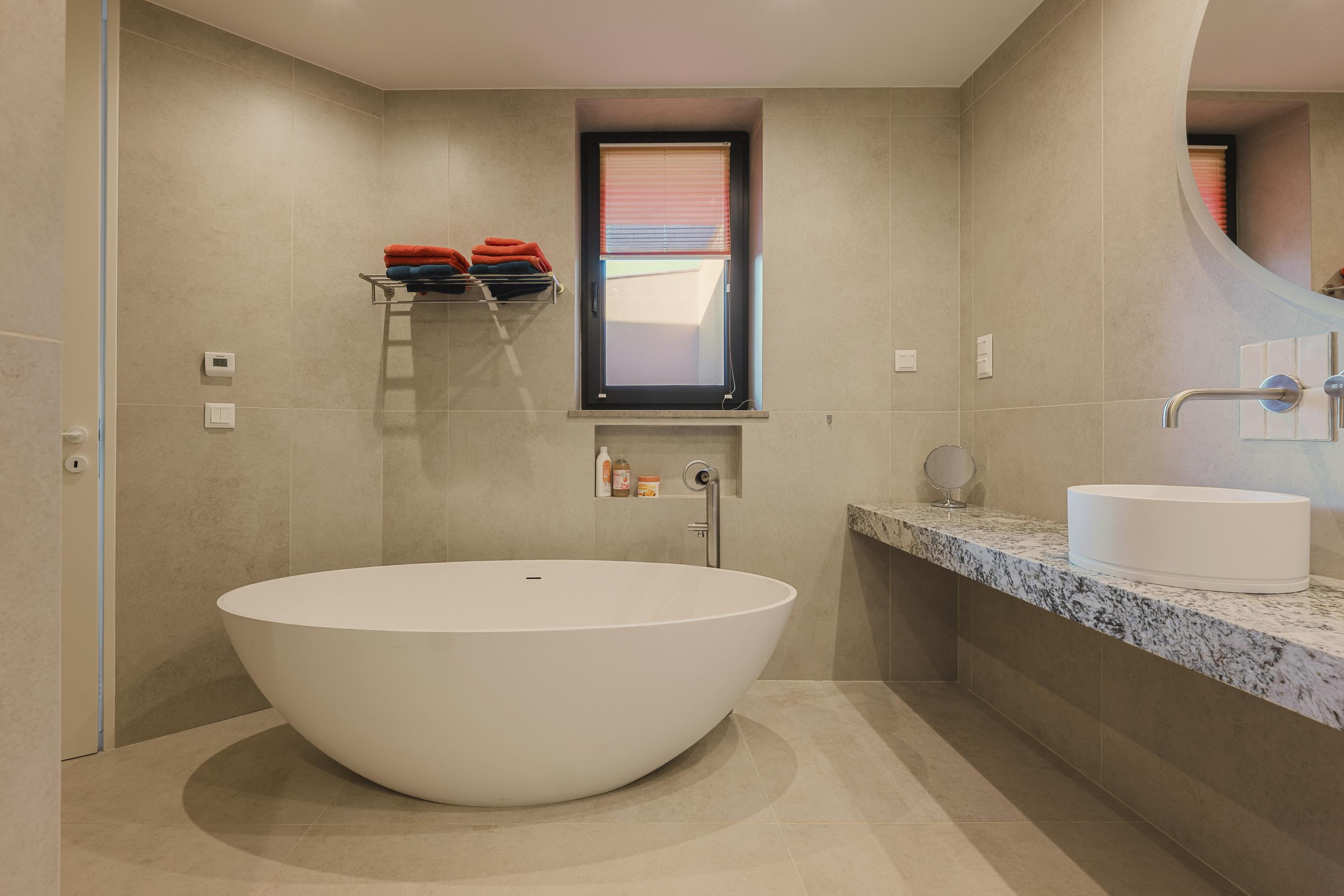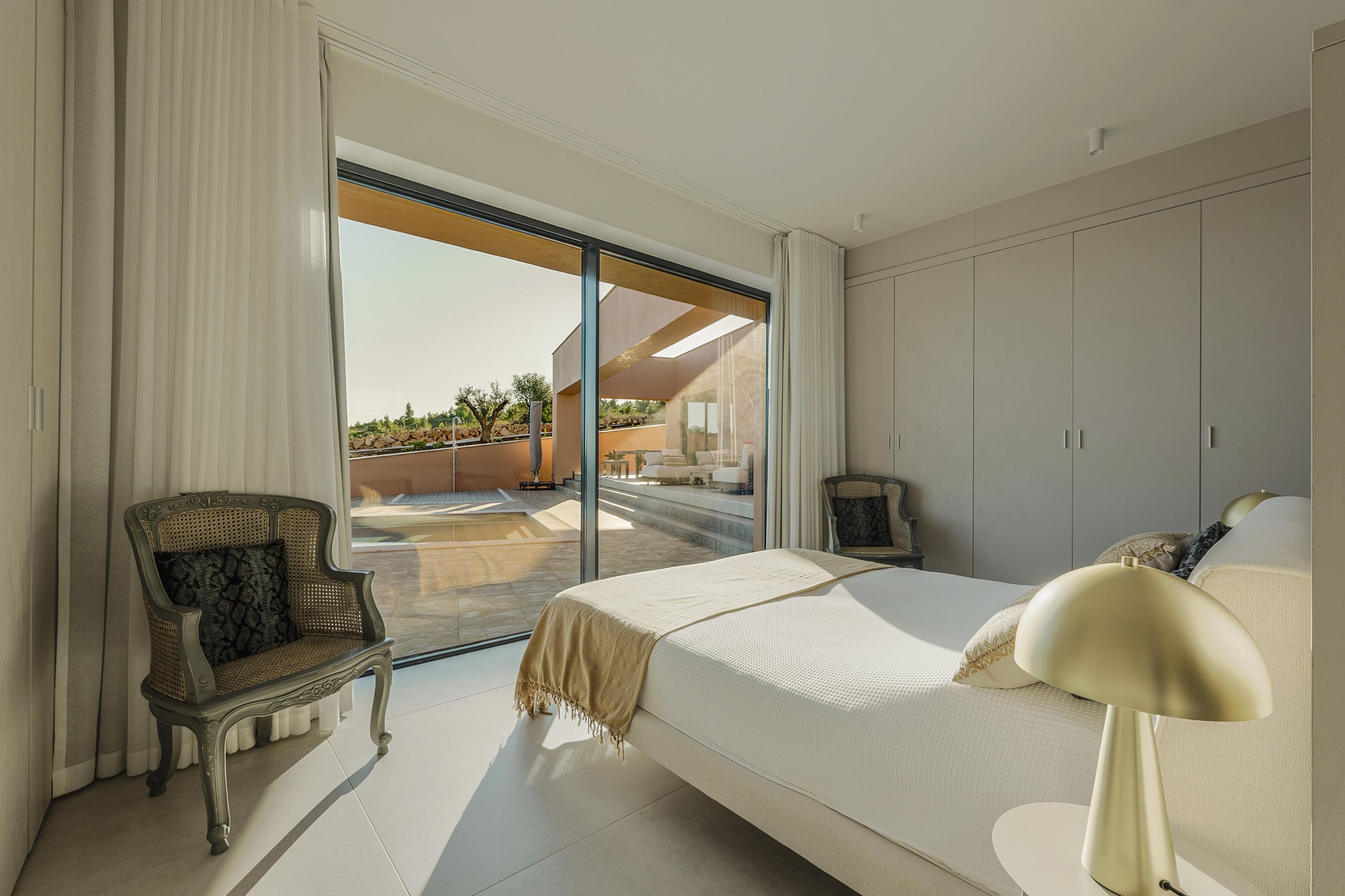 For year-round comfort, the villa features a sophisticated climate system, combining full underfloor heating, in-build air conditioning system, allowing the interior to remain perfectly temperate in every season. Premium aluminum frames, natural stone finishes and bespoke carpentry complement the architectural quality, ensuring durability, acoustic comfort and a refined aesthetic throughout.
