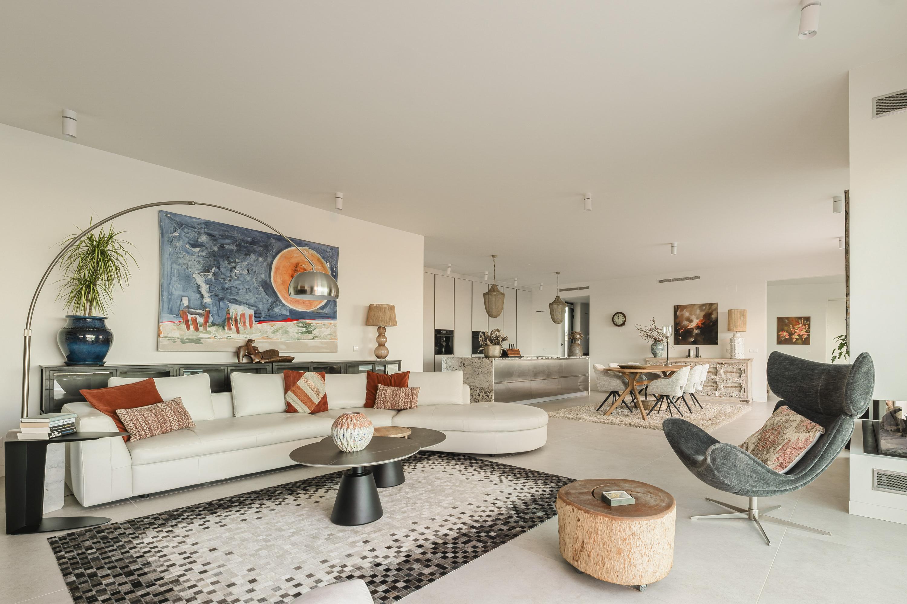 Floor-to-ceiling glazing and 3-meter-high ceilings invites daylight throughout the residence, while bespoke carpentry and refined textures create a cohesive, calming interior. Most furniture is available for acquisition; artwork excluded.