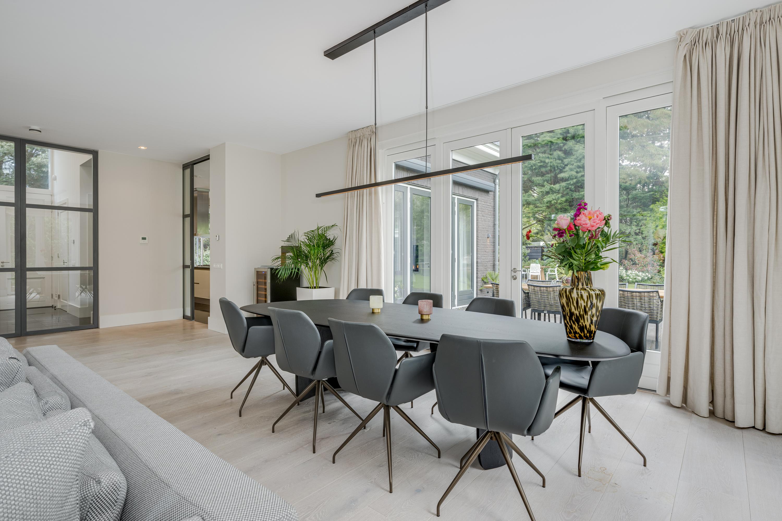 Villa Oegstgeest stands in the tranquil Van Brouchoven Park, a neighborhood rooted in history and renowned for its timeless appeal. This villa, with 272 m² of recently completed living space, gives form to understated luxury and thoughtful architecture, enveloped by a 1,134 m² private garden. The seamless rhythm between light oak flooring and bluestone surfaces echoes through every room, while high windows invite daylight from all aspects and double doors open to the terrace, merging indoors and the sun-soaked landscape.