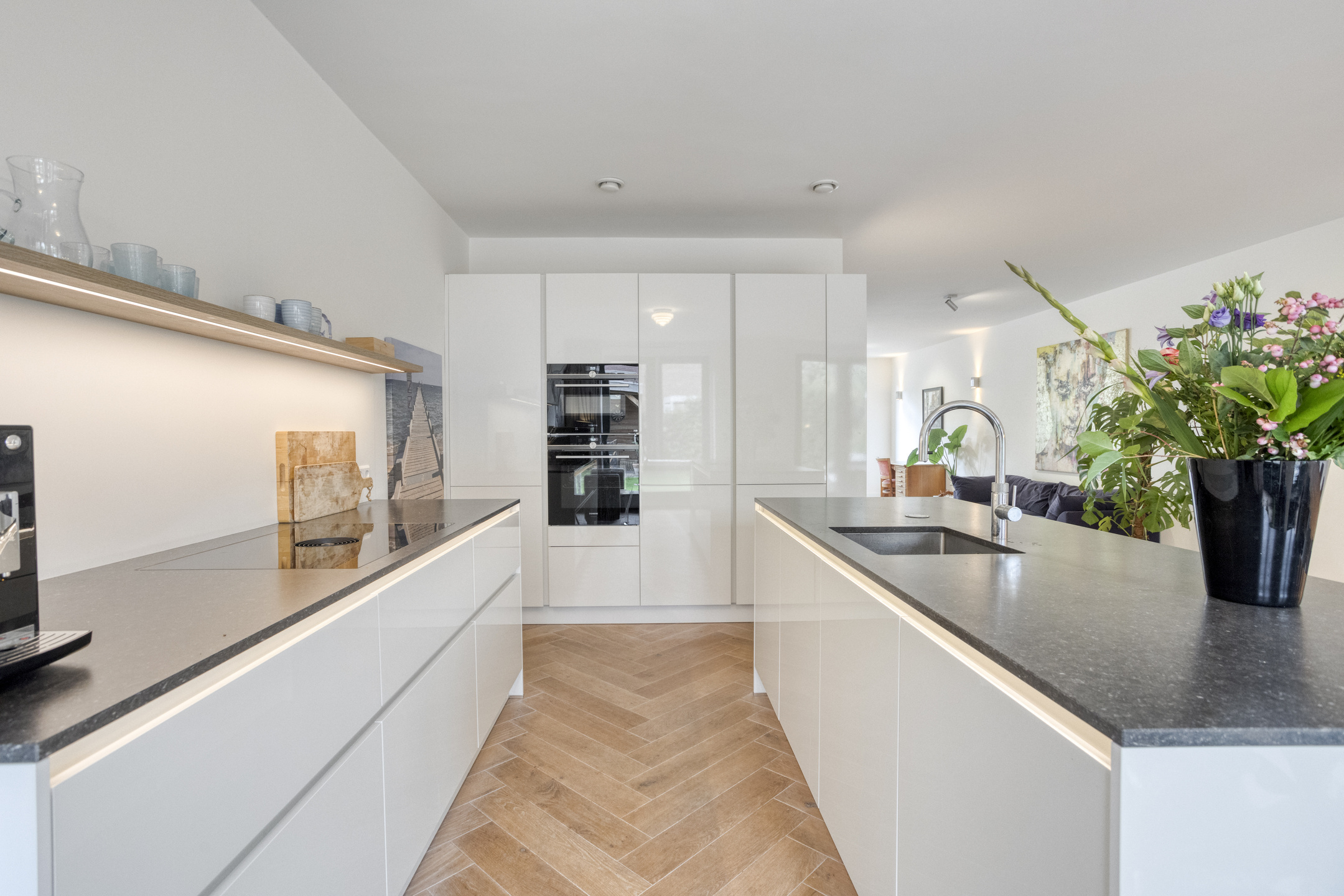 Engineered for both comfort and sustainability, the home achieves energy label A, complete with comprehensive insulation, 16 solar panels, and full underfloor heating. A private driveway, garage, fiber optic connectivity, and integrated security elevate everyday ease. From this central yet quiet address, renowned shops, schools, parks, and café terraces are all within walking or cycling distance, with the beaches and major highways moments away.