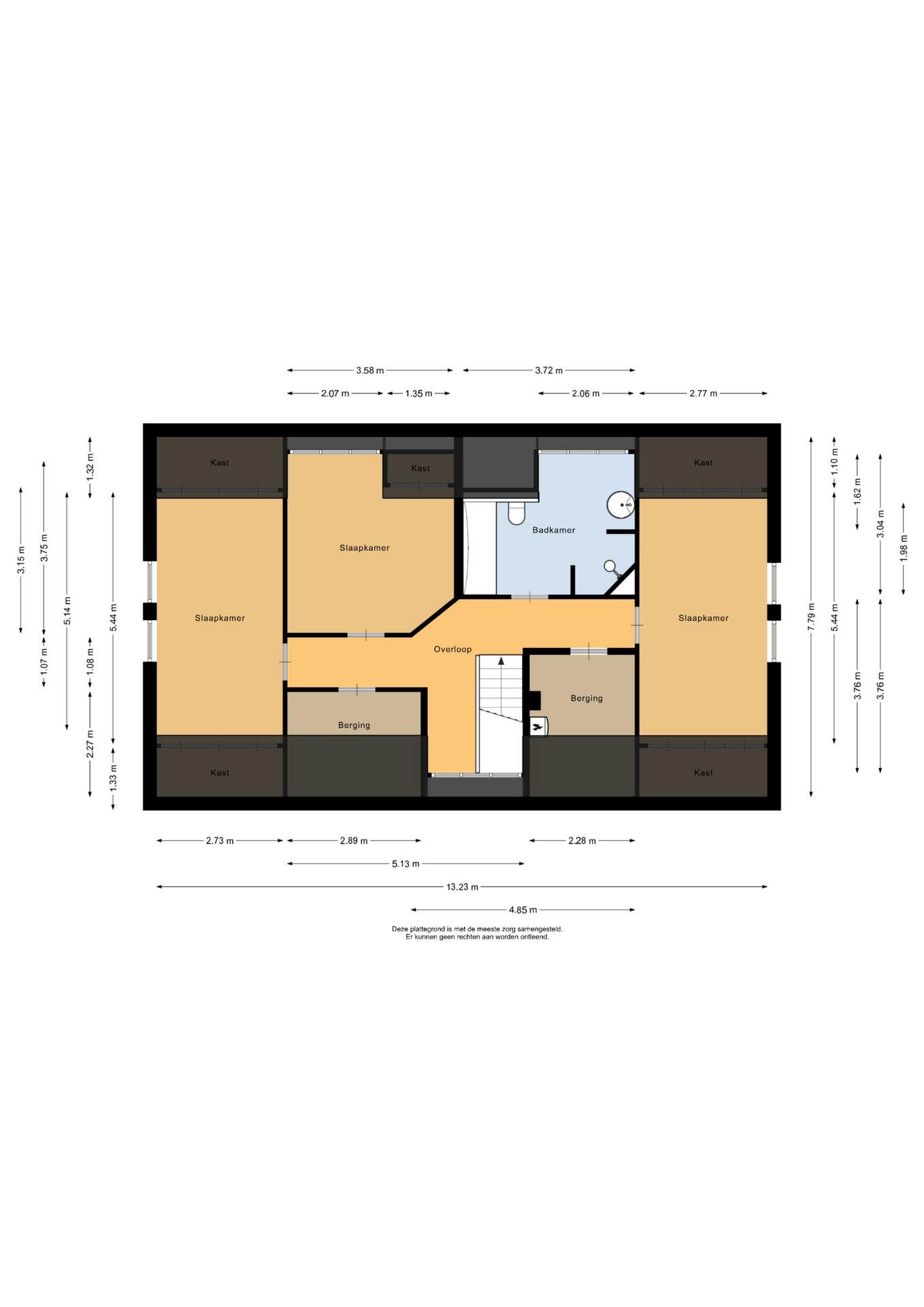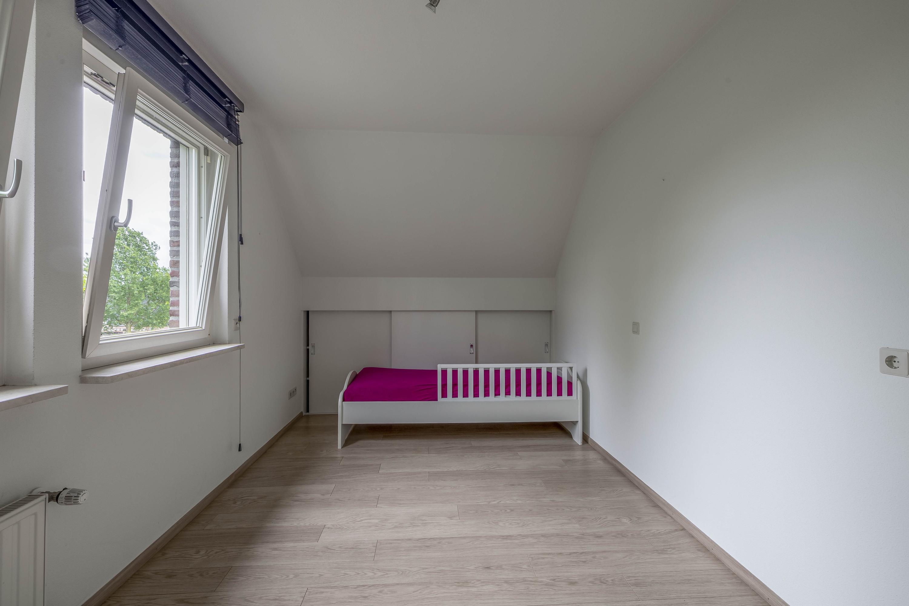 The spacious landing with mezzanine provides access to 3 bedrooms, a bathroom and a utility/boiler room. The technical room houses the vacuum cleaning system, the heat recovery unit and the boiler. Bedrooms I and III both have laminate flooring, spray-painted walls and a spray-painted ceiling. In both rooms, storage space has been created under the sloping roof by means of practical sliding cupboards. Two windows in the front wall provide natural light. Bedroom II also has laminate flooring, spray-painted walls and a spray-painted ceiling. A dormer window provides natural light and ventilation in the room. The spacious, fully tiled bathroom is equipped with a bath, washbasin with vanity unit, shower, toilet and a designer radiator. A practical bonus in this bathroom is the handy laundry chute. The chute opens into the kitchen, so dirty laundry ends up directly downstairs, close to the washing machine and dryer. This makes doing the laundry much more efficient and provides extra convenience.