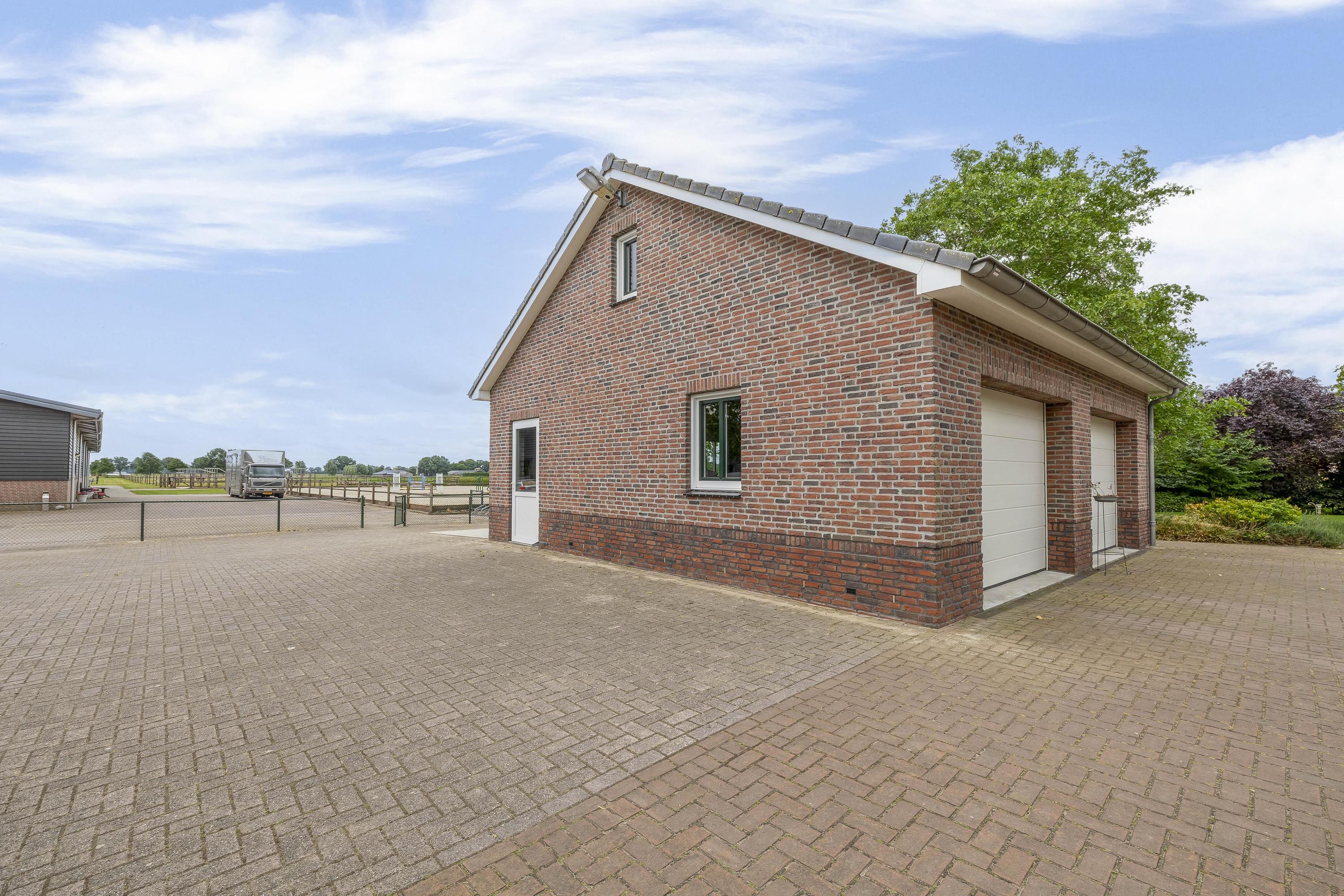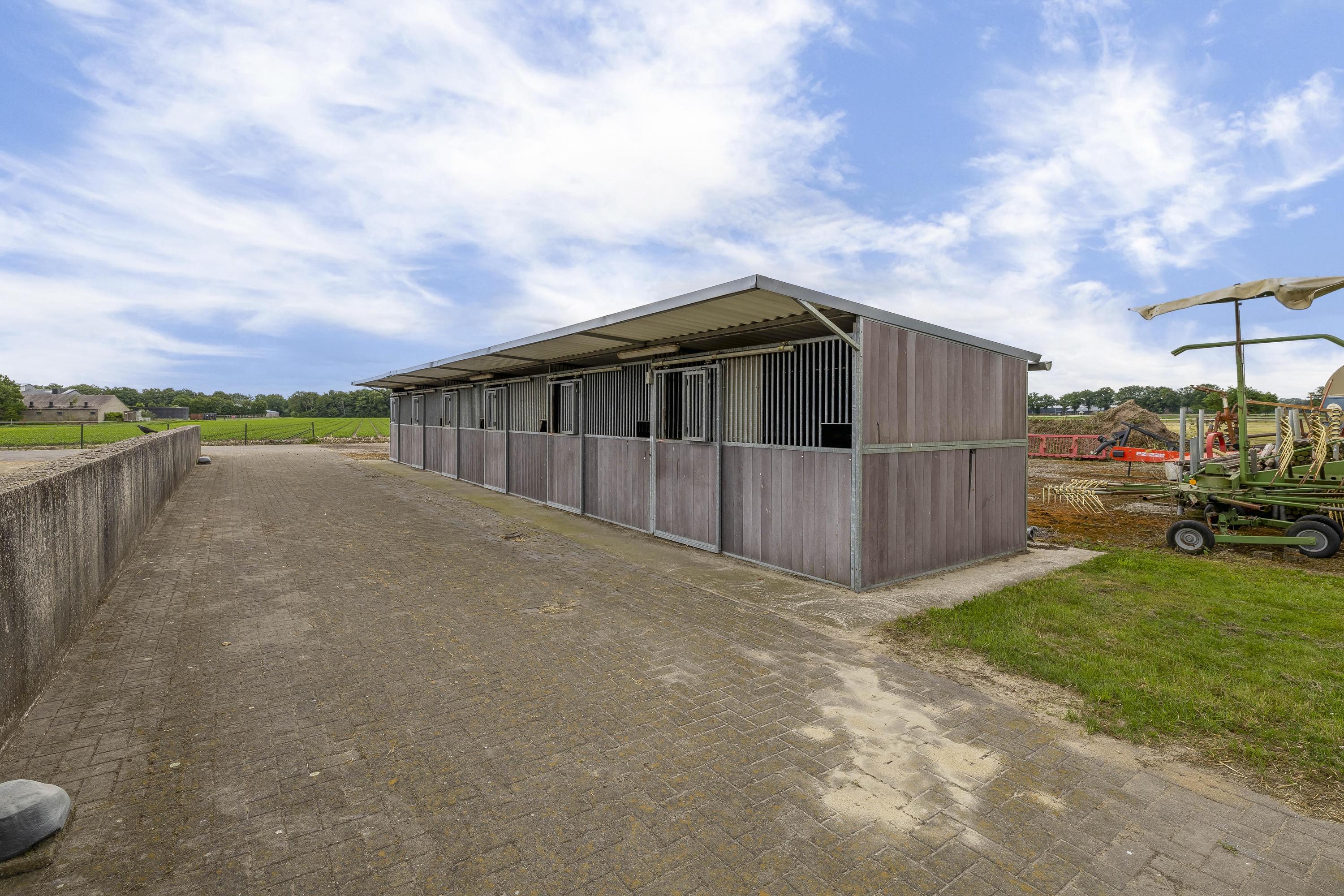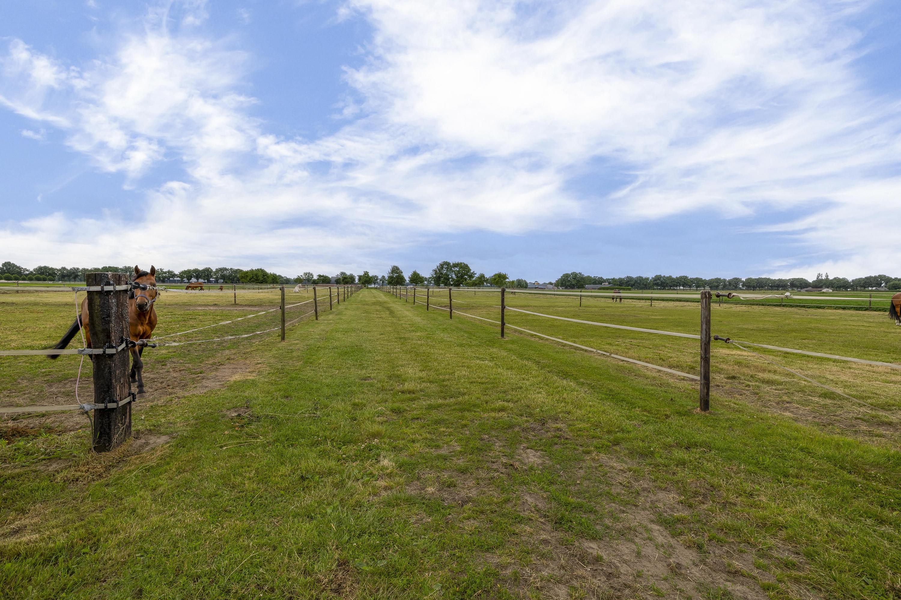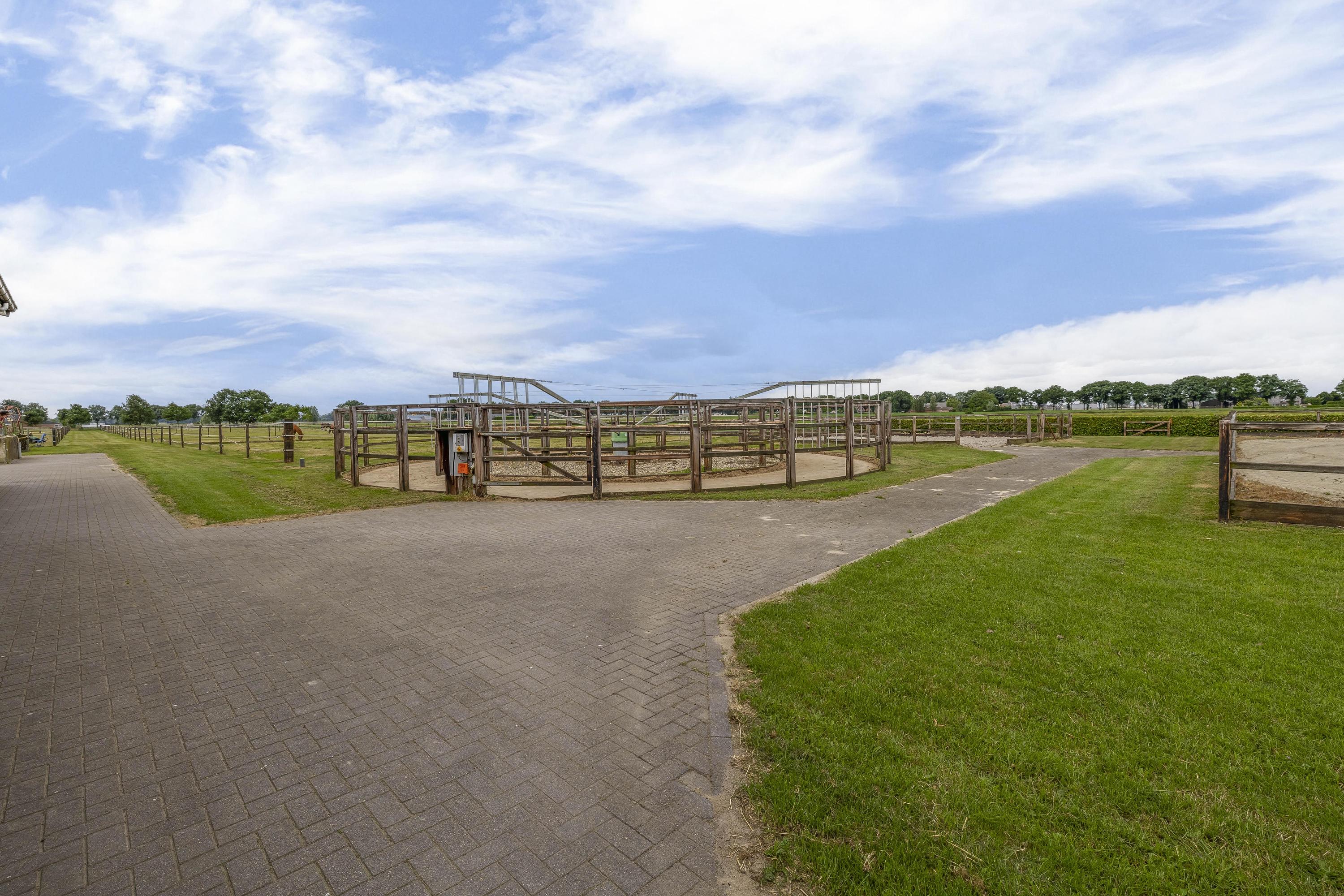 The yard is further equipped with an outdoor arena, a practical horse walker and a lunging circle. In addition, there are 6 outdoor stables, a manure pit and a storage room for straw. The property is further complemented by a spacious pasture divided into various paddocks. These extensive facilities ensure that the property offers plenty of opportunities for the (semi) professional horse lover! The outdoor arena measures approx. 50 m x 25 m and is equipped with an ebb and flow floor and wooden fencing. The lunging circle is fenced with wood and also has an ebb and flow floor. The horse walker is suitable for four horses and is equipped with a concrete floor and wooden fencing. There are 6 outdoor stables on the grounds. These stables are equipped with partly plastic/partly galvanised front walls with a sliding door. The roof is covered with sheet piling. The manure pit is recessed and equipped with a concrete floor and walls. Manure is removed via the manure chain. Access via the ramp. The pasture is divided into paddocks, which are fenced with wooden posts and tape. There is a central path so that you can easily reach the different paddocks.