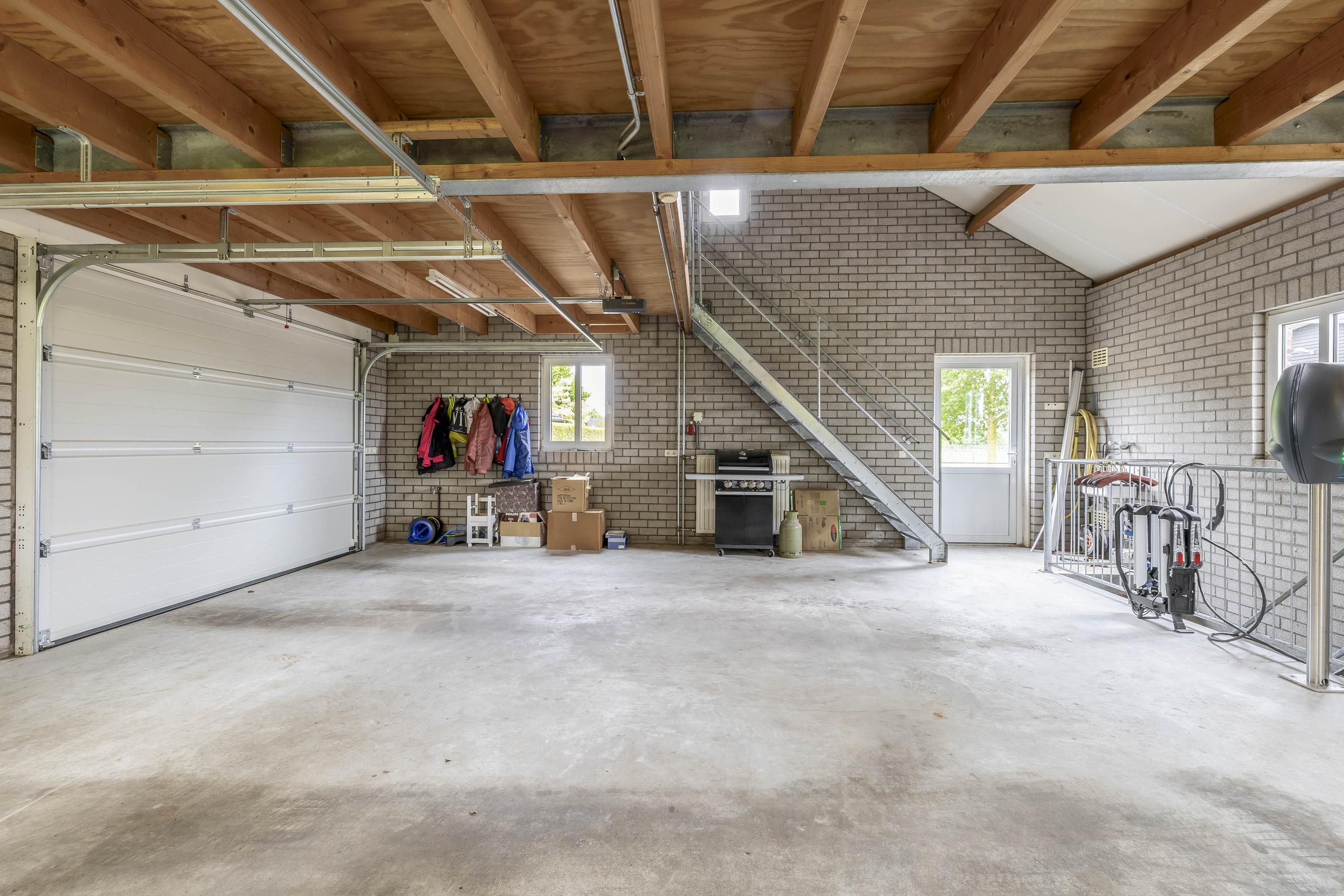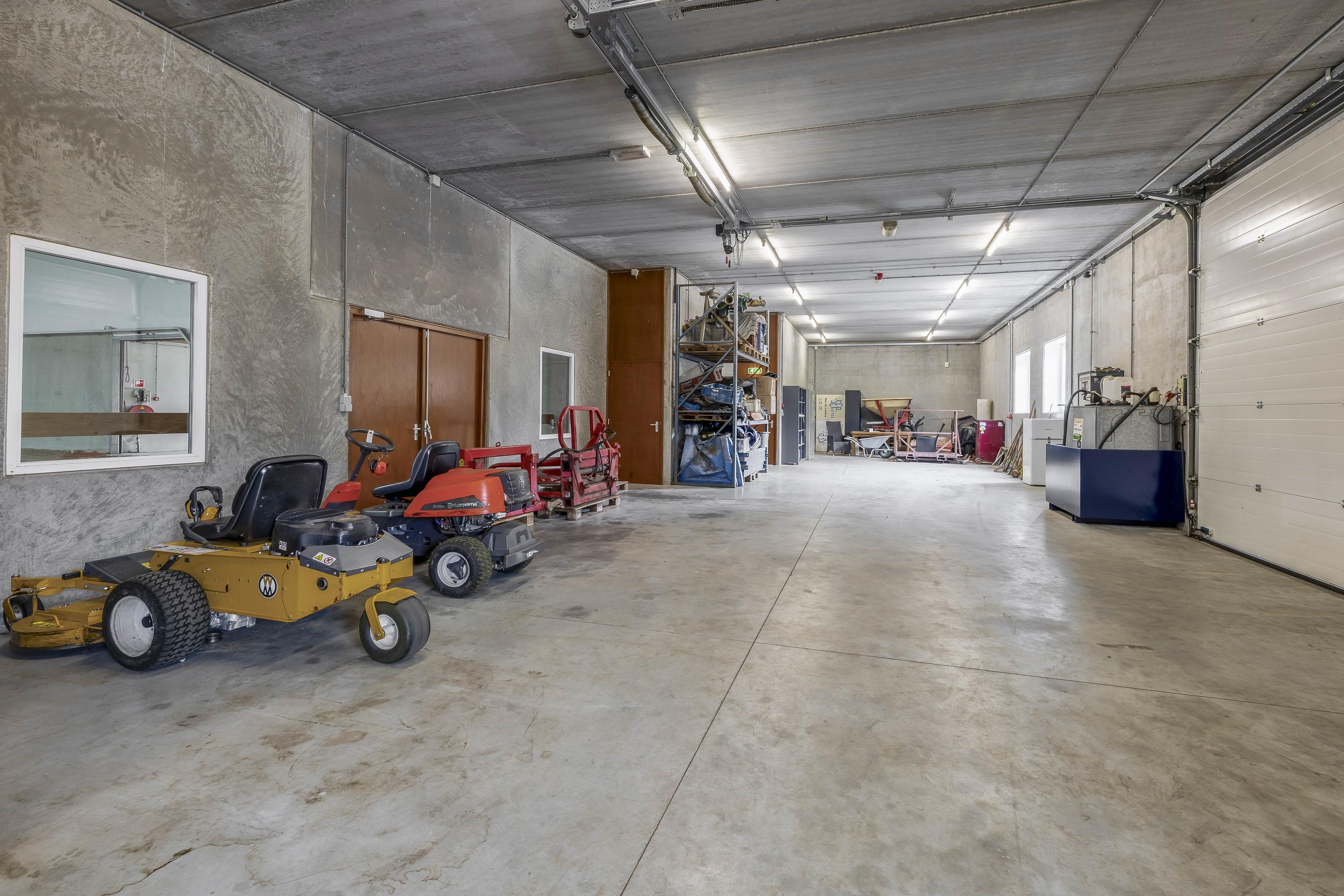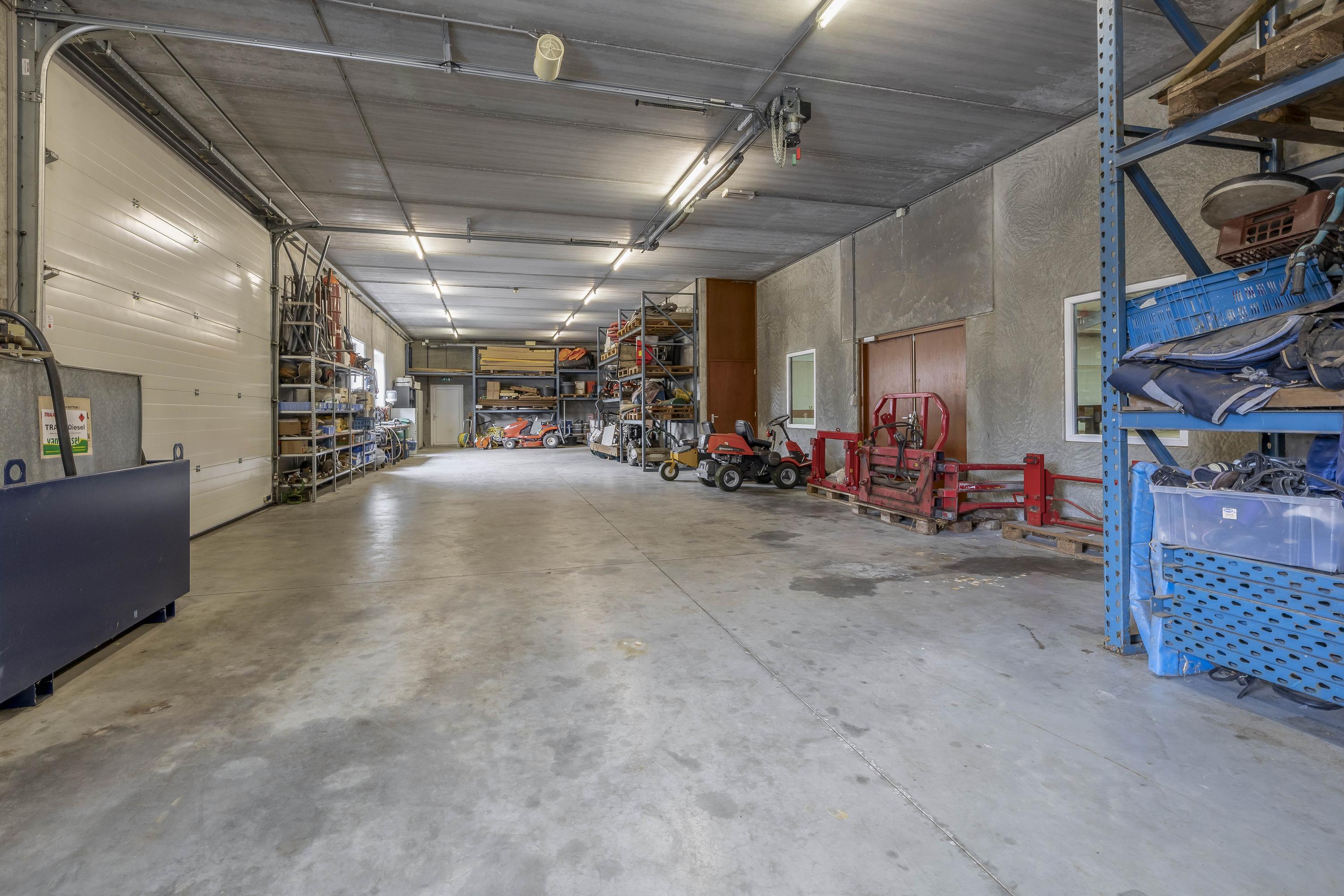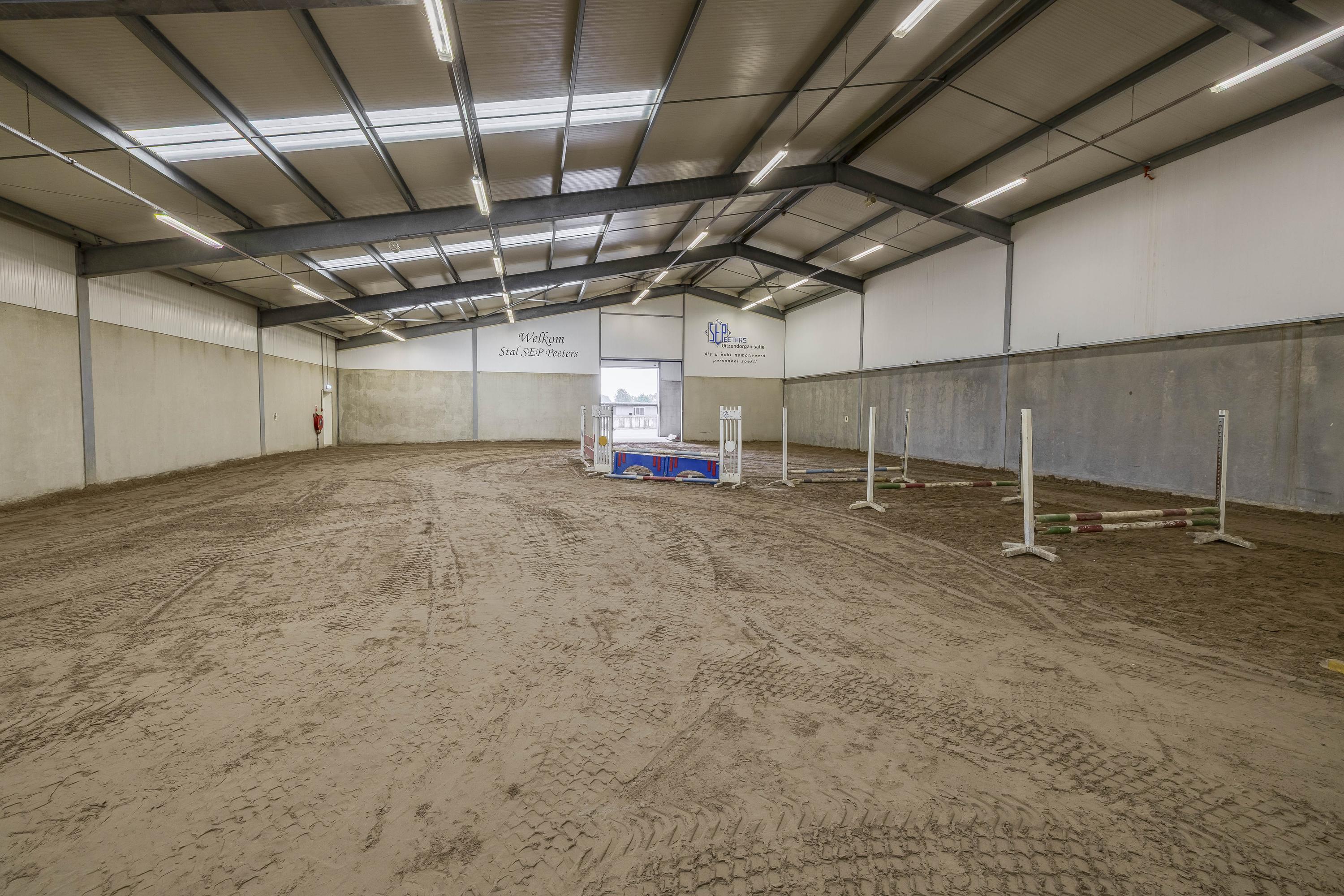 The yard is further equipped with an outdoor arena, six outdoor stables, a horse walker, a lunging circle, pasture and a manure pit. The riding hall is constructed of masonry facades, steel trusses and an insulated roof. The facades are partially clapboard on the outside. Light-transmitting panels provide natural light. On the inside, the facades are fitted with concrete elements. The indoor arena measures approx. 20 m x 40 m and is equipped with an ebb and flow floor. There is a heather. The arena is equipped with lighting. The walls are made of concrete. A roller door in the rear facade and a pedestrian door in the side facade provide access. The stable area is equipped with no fewer than 20 horse stalls, the front walls of which are partly made of plastic and partly of galvanised steel. The stalls have concrete partition walls and rear walls and are equipped with sliding doors. At the front of the hall is the shed/workshop, which has a concrete floor and walls and a concrete slab ceiling. On the right-hand side is the staircase to the reception area and the apartment on the first floor. The spacious reception area has a PVC floor and partly brickwork/partly stucco facades. There is a kitchen unit equipped with a sink, a refrigerator and storage space. The bedroom has the same finish as the reception area. The bathroom has a shower and a washbasin. There is also a floating toilet. From the reception area, there is a beautiful view of the indoor arena. The storage room contains the connections for the washing machine, the underfloor heating unit, the central heating boiler (Nefit Topline) and the inverter for the solar panels. The straw storage at the rear of the riding hall has a concrete floor. The feed silo is located here. A roller door at the rear and a pedestrian door provide access to the yard. The roof is insulated.