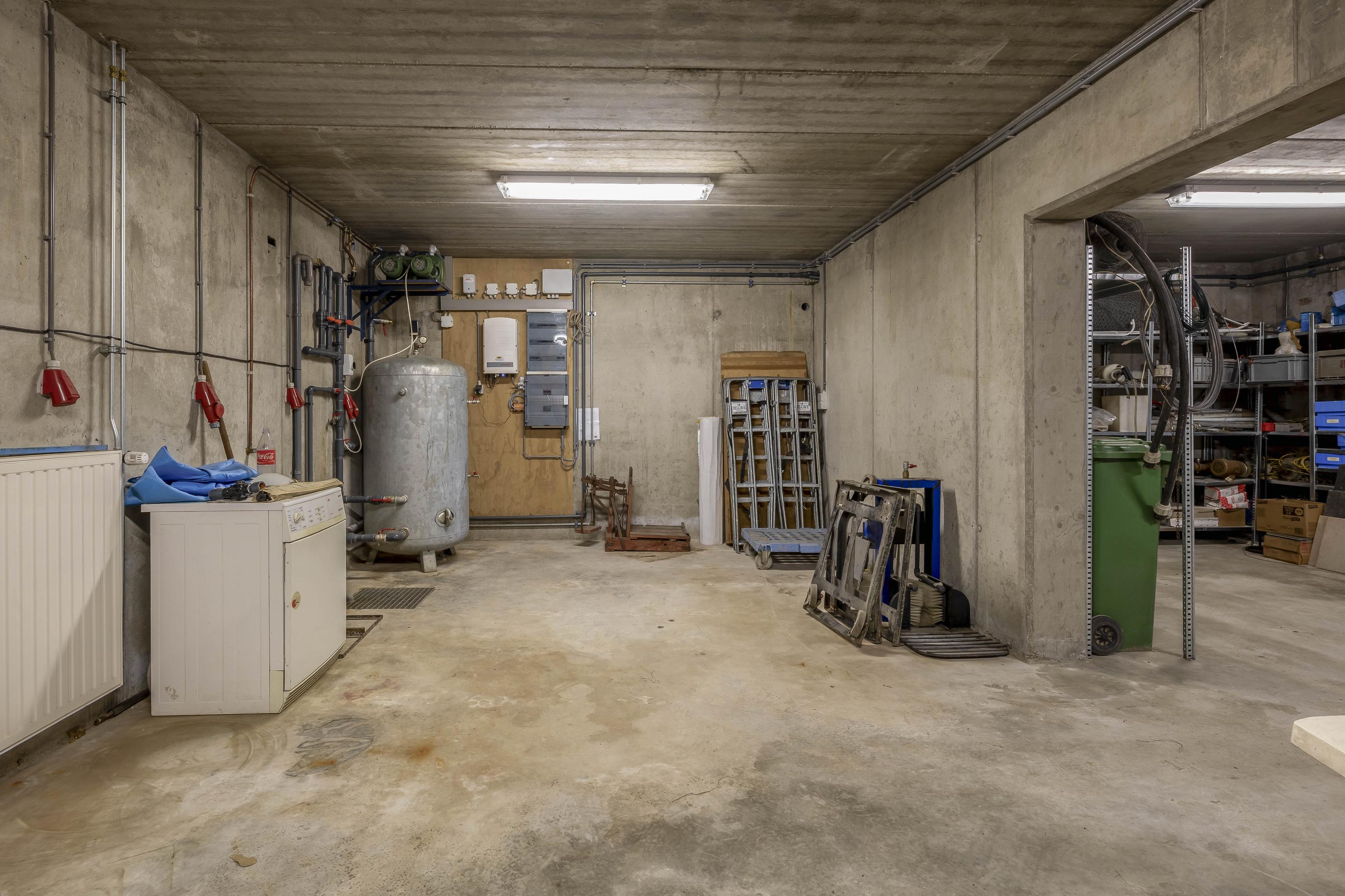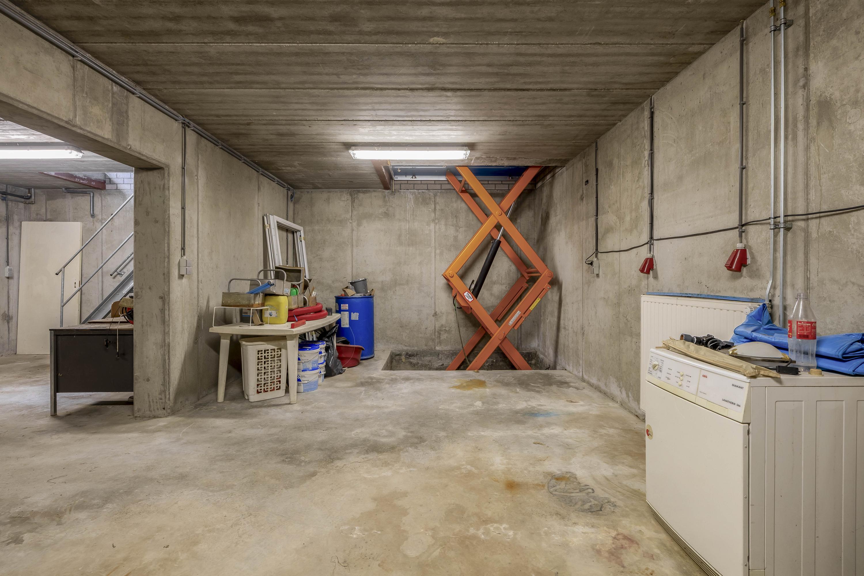 The ground floor has a concrete floor and is equipped with practical amenities such as a sink and two charging points for electric cars. The basement houses the sprinkler system, the meter cupboard, the high-voltage connection, the inverter for the solar panels and a vehicle/goods lift. The central heating boiler (Nefit Smartline HR) is located in the attic. Solar panels have been installed on top of the garage, contributing to sustainability and energy savings. This garage not only offers plenty of space and functionality, but also modern conveniences.