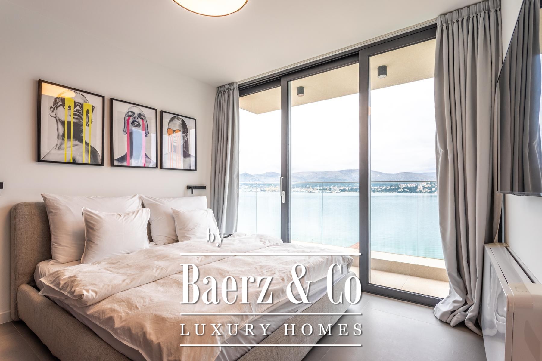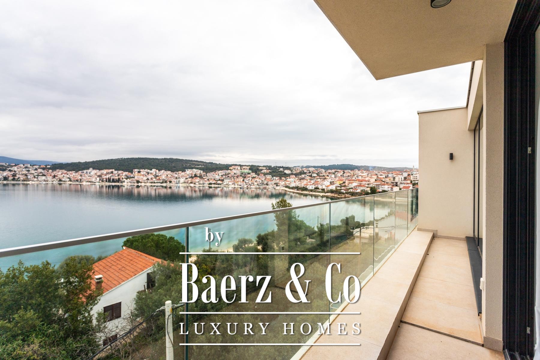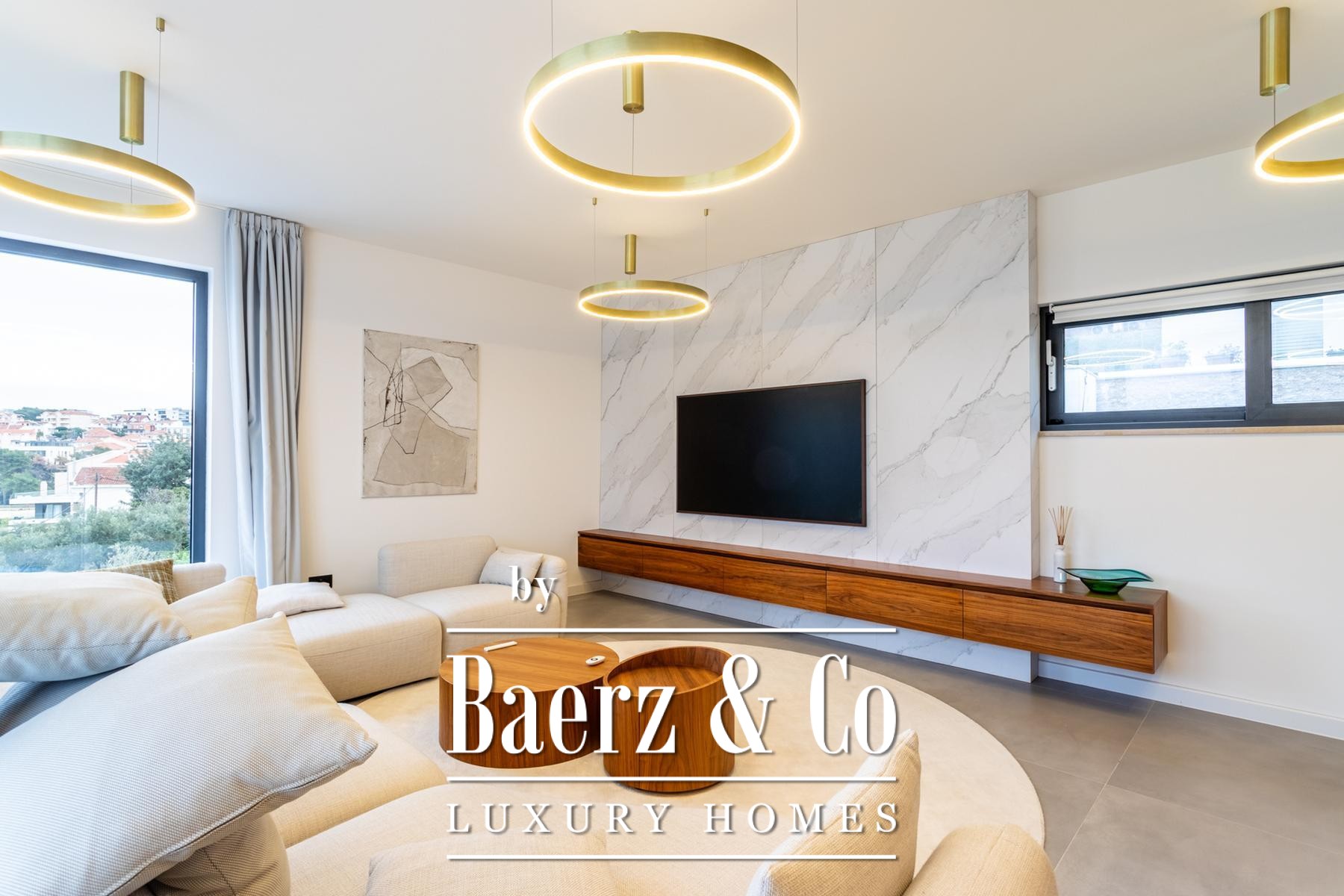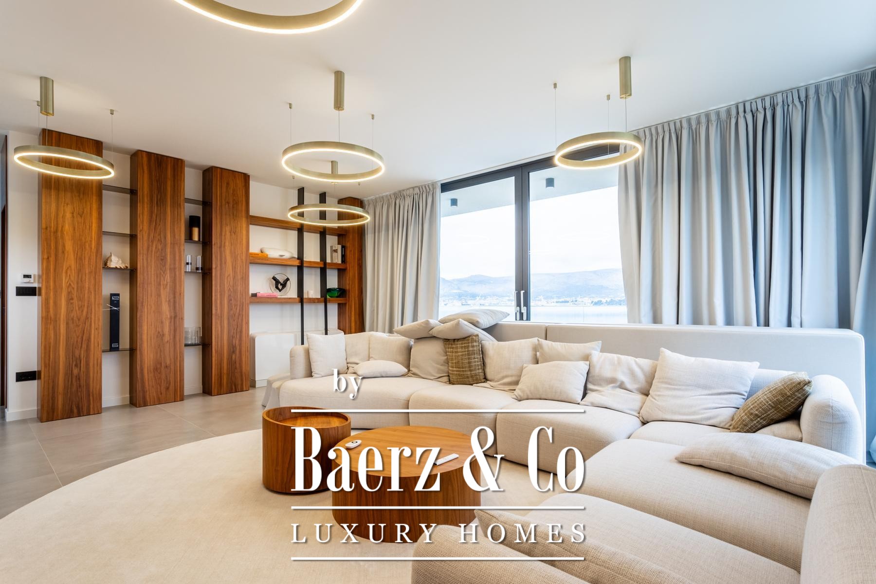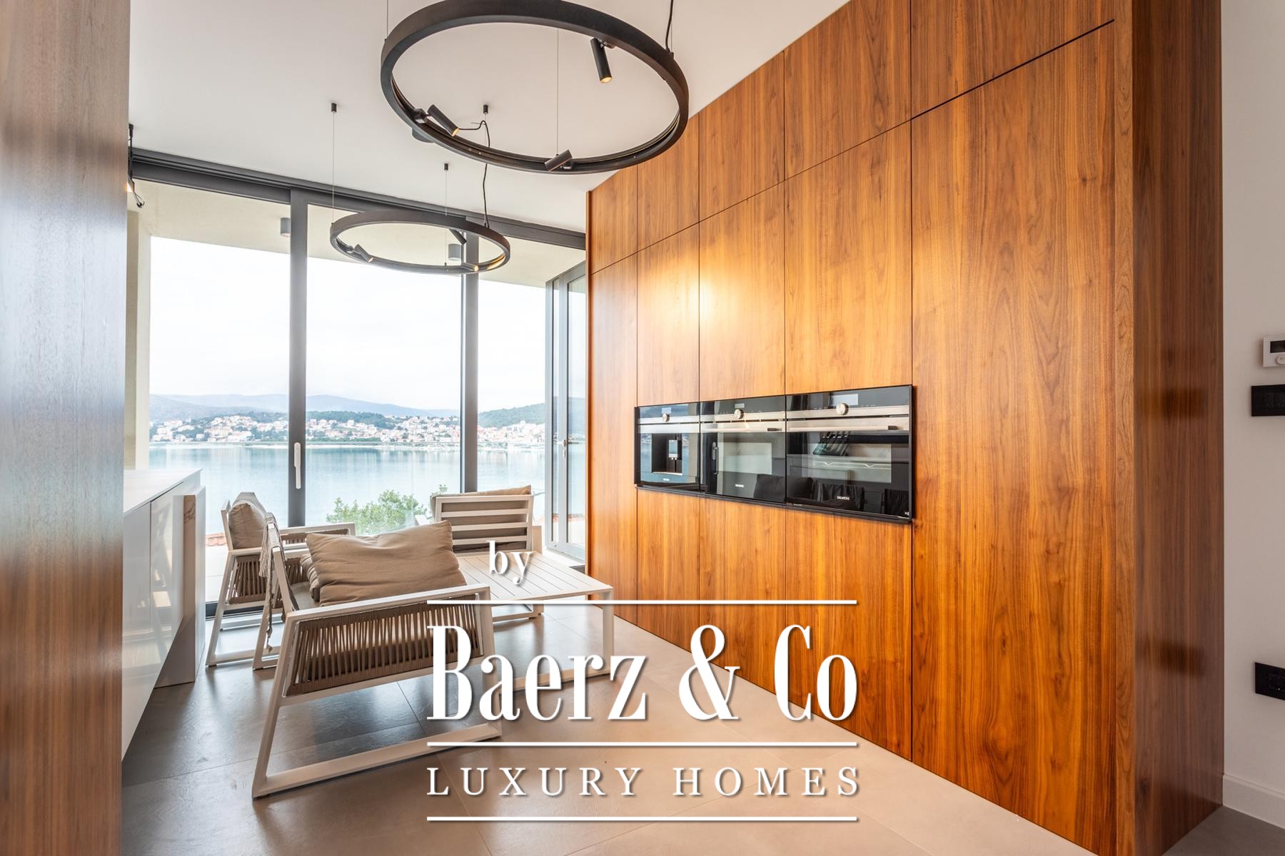 Villa Okrug with panoramic view stands just fifty meters from the pebble beach, offering both serenity and elegant living in Croatia. This modern villa features 400 m² of curated space and sits on a 470 m² plot, with architecture that embraces light, openness, and continuous flow.