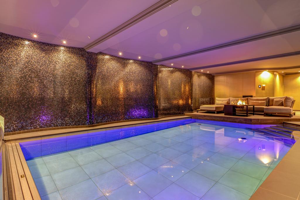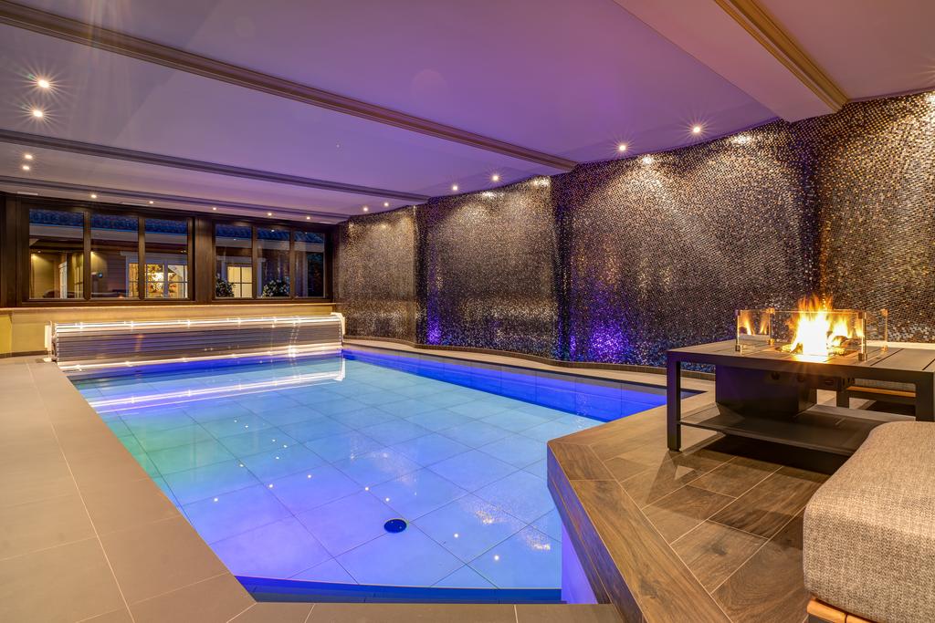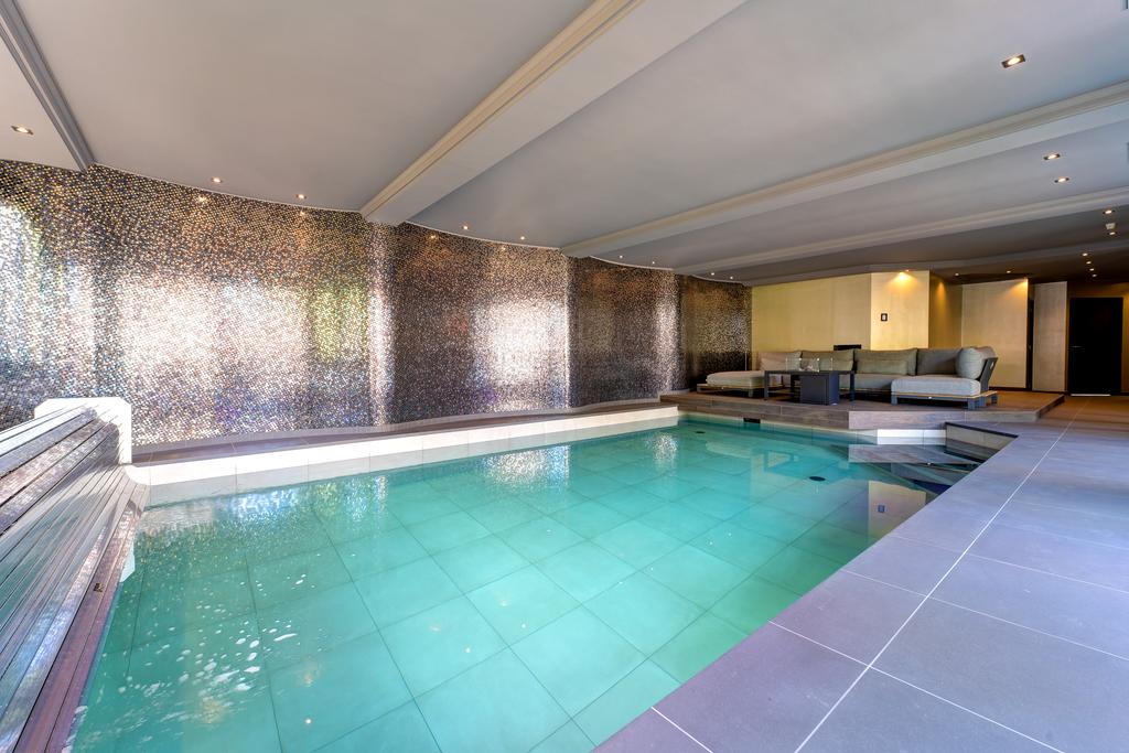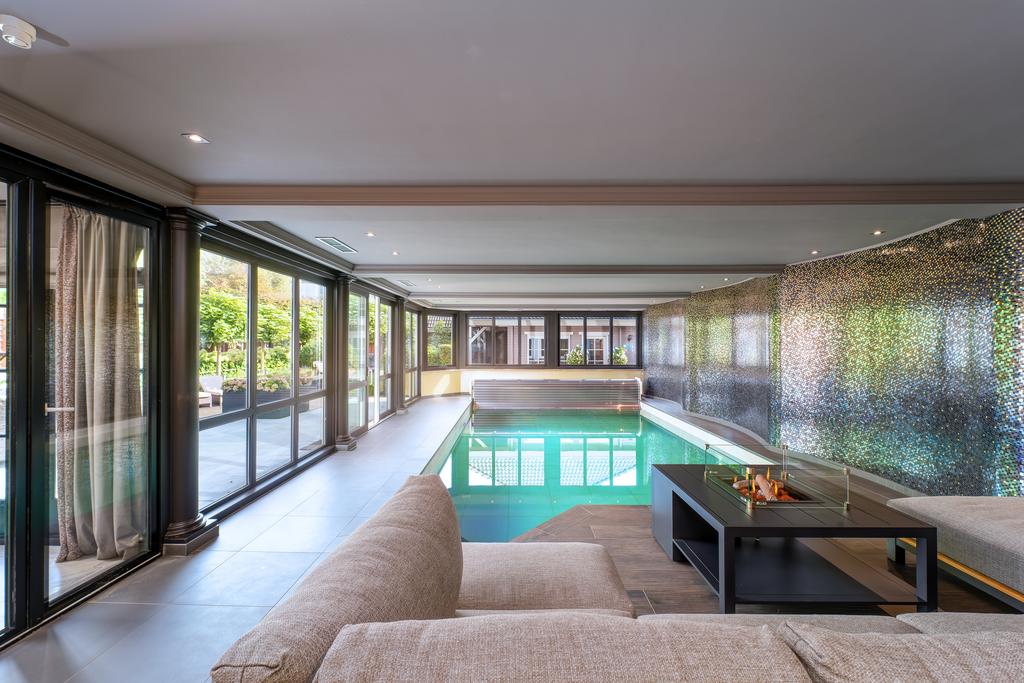 One of the absolute highlights of this property is the indoor swimming pool with a wellness area. This exclusive pool (renovated in 2022) is seamlessly integrated into the villa and separated from the living area by a glass wall. From the pool area, you have direct access to the expansive garden with a large terrace, ideal for relaxing in a luxurious lounge setting.