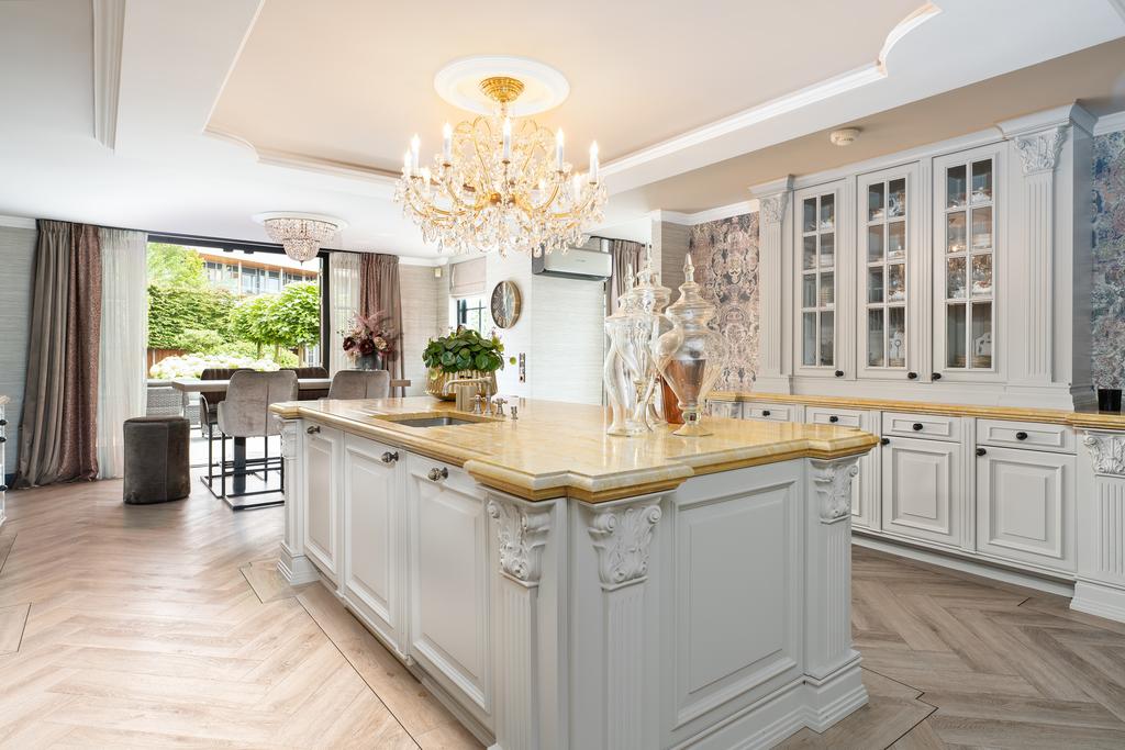 From the moment you step inside, it is clear that this is no ordinary home. The grandeur of the villa is accentuated by high-end finishes such as herringbone parquet floors, Italian marble bathrooms, luxurious window treatments, and handcrafted built-in wardrobes. The spacious living room features a stylish cinewall with a large flatscreen TV and an atmospheric fireplace (Anneke Dekkers).