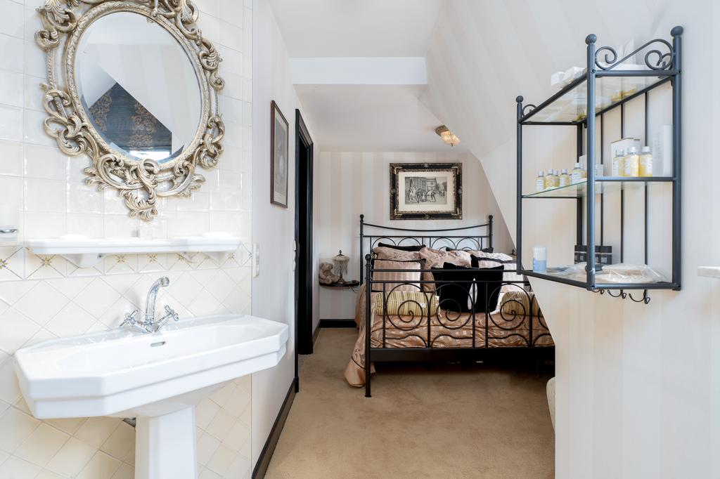 This luxurious annex offers numerous possibilities, including a home office, guesthouse, bed & breakfast, business space, or living quarters for family or an au pair. The annex has its own entrance and features a spacious showroom, an office area with space for three workstations, a pantry, and a second showroom. The ground floor opens onto a sunny veranda that stretches across the entire front.
