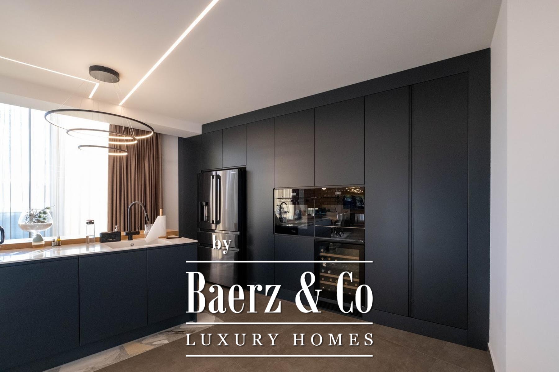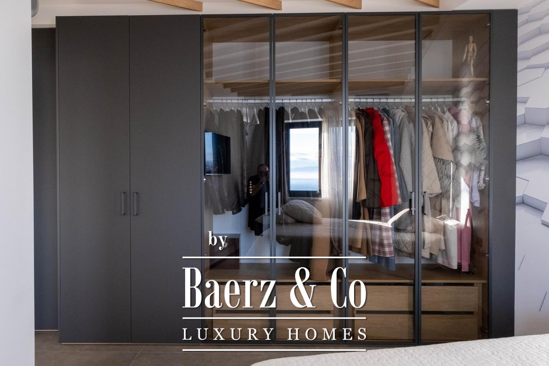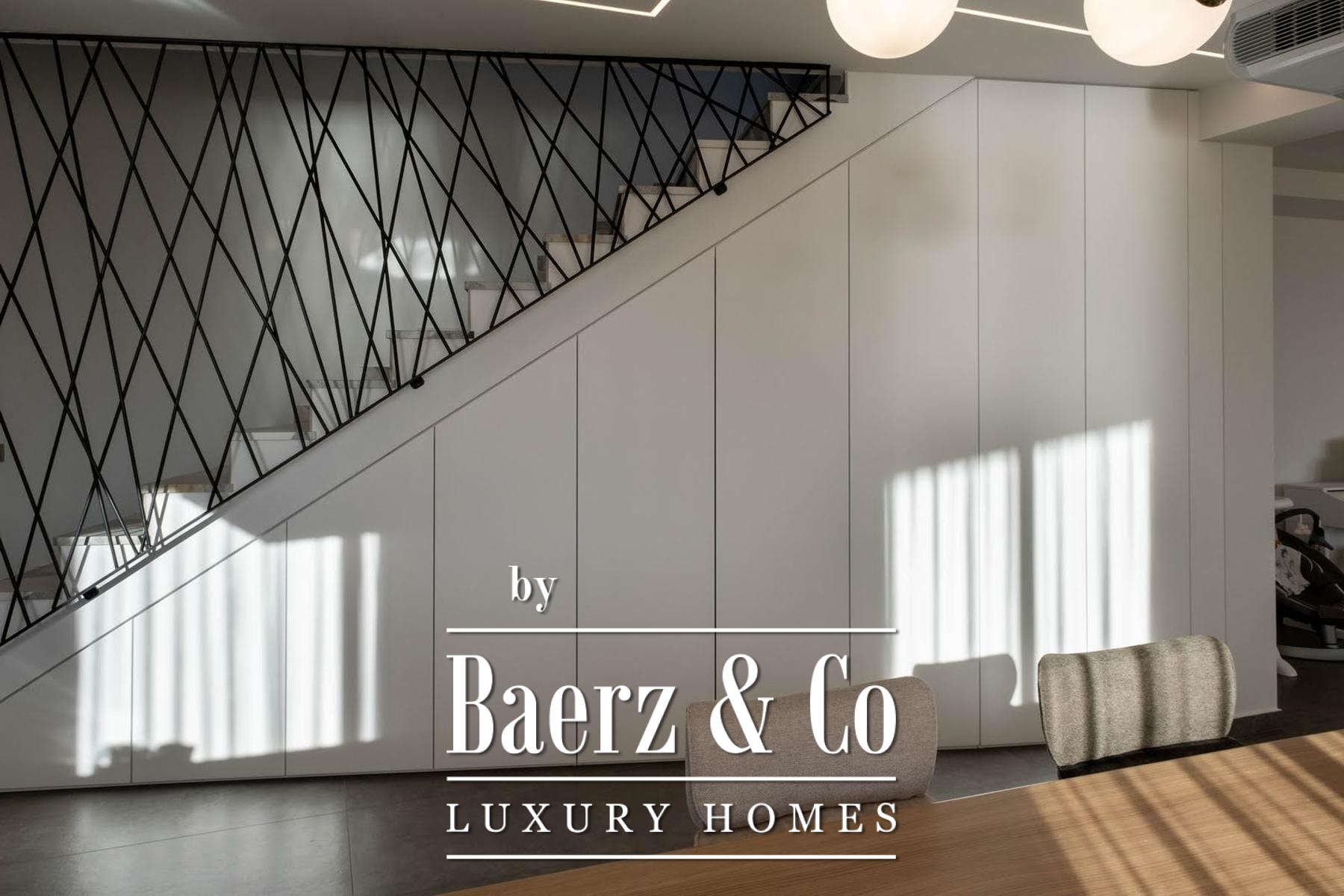 glass-enclosed bathroom and a private terrace that can also be heated and turned into a wellness area or gym. All the furniture and sanitary ware are of renowned brands, the master bedroom has its own walk-in closet, the underfloor heating system of heat pumps is implemented throughout the entire apartment and both floors. The roof part offers the possibility of building a swimming pool and an additional terrace. The distance from the sea is only 350 m, a quiet street without a lot of traffic, and the building itself with its three apartments and separate entrances provides its tenants with maximum intimacy and privacy. It is possible to park three tin pets on the landscaped garden on the side of the yard. We are at your disposal for more information.