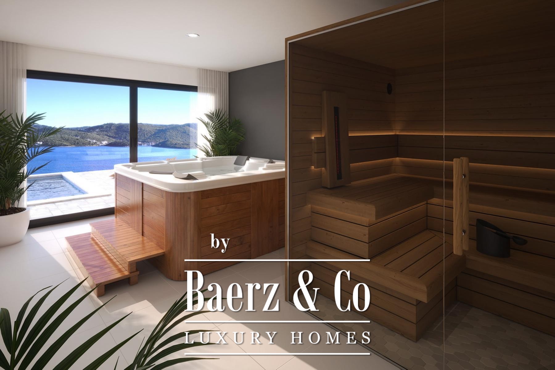 Outside, a private heated pool, Dalmatian stone grill, and a secluded landscaped garden with Mediterranean flora create an atmosphere of discretion. The villa integrates a full intelligent system controlled by mobile devices, reflecting a connected and effortless lifestyle. Scheduled for completion at the end of 2025, this luxury villa for sale in Orebić is a poised contemporary address for those who value privacy and panoramic sea views.