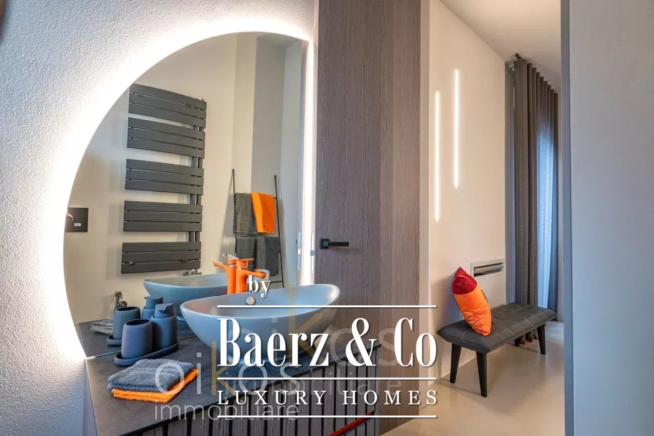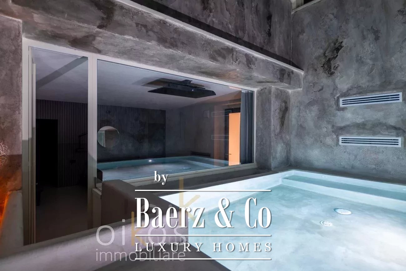 With a third bedroom and private bathroom on the lower level, the villa’s spa experience unfolds: a soundproofed, heated biological pool with hydromassage offers privacy and relaxation. Outdoors, a 40 square meter heated swimming pool set in gray WPC, and a landscaped garden serviced by an artesian well and automated irrigation, extend the living space. Amenities include an outdoor kitchen, smart security, air-conditioning, solar panels, sauna, alarm system, water softener, video security, and high-speed internet.