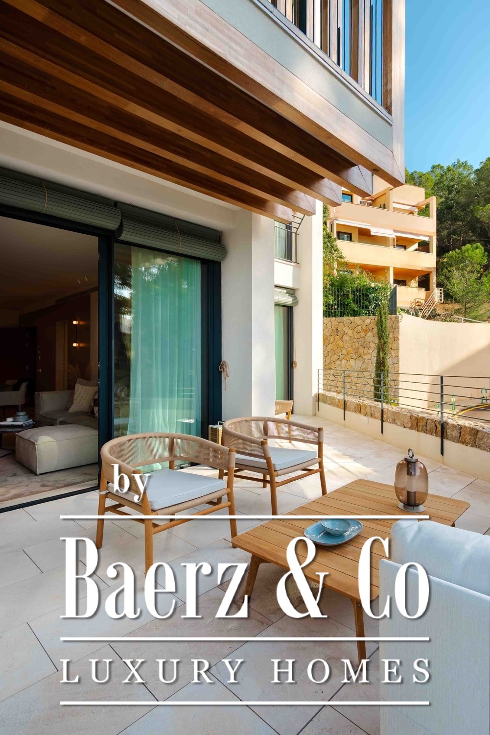 Apartment Palma De Mallorca invites a quiet pace of Mediterranean living in the hills of Cala Major. This ground-floor residence is shaped by seamless transitions between a refined modern interior and expansive private outdoor spaces. The open-plan living and dining area is suffused with natural light through floor-to-ceiling windows, inviting the outside in. Here, 97 m² of thoughtfully designed space include two well-proportioned bedrooms and two bathrooms, highlighted by bespoke Mallorcan carpentry and Italian furnishings.