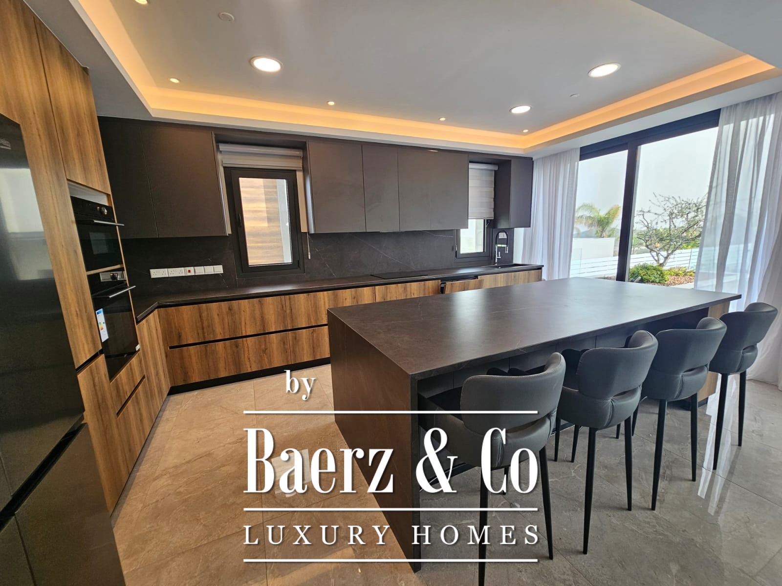Set within a landscaped 888 sq.m. plot, the villa invites residents to savour quiet moments by the private swimming pool, host gatherings in the sunlit BBQ area, or simply relax in the exceptional living spaces. The layout includes four bedrooms, three bathrooms, and two guest WCs, while a service room adds further convenience. Interiors are finished to exacting standards, featuring large-format tiles, aluminium double-glazed windows for thermal and sound insulation, and a fully integrated underfloor heating and air conditioning system.