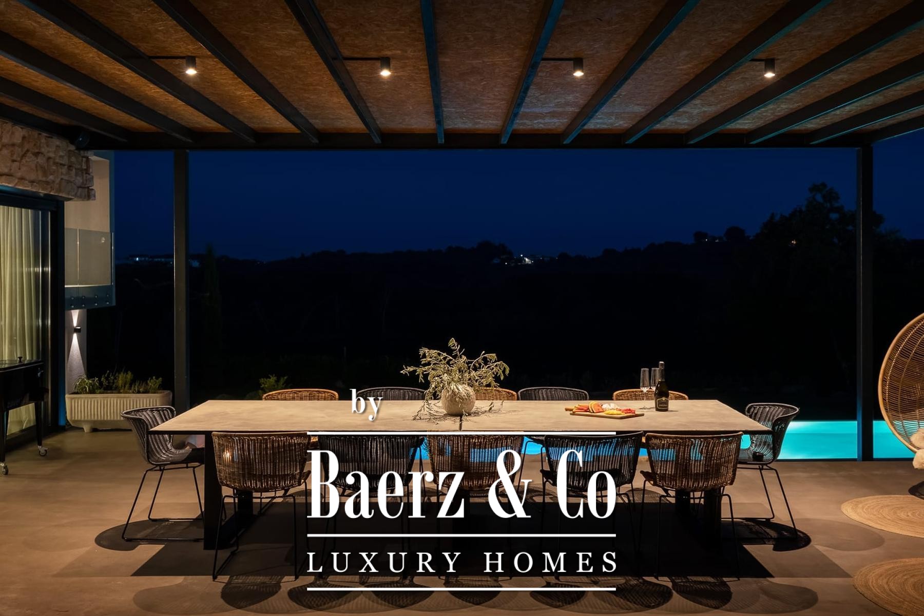 The residence features six generously proportioned bedrooms, each with en-suite bathrooms, and a fully appointed contemporary kitchen connected to an open-plan living and dining area. The private heated saltwater pool, measuring 56 m², sits beside a landscaped sundeck and manicured gardens, offering serene spaces for quiet reflection or al fresco gathering.