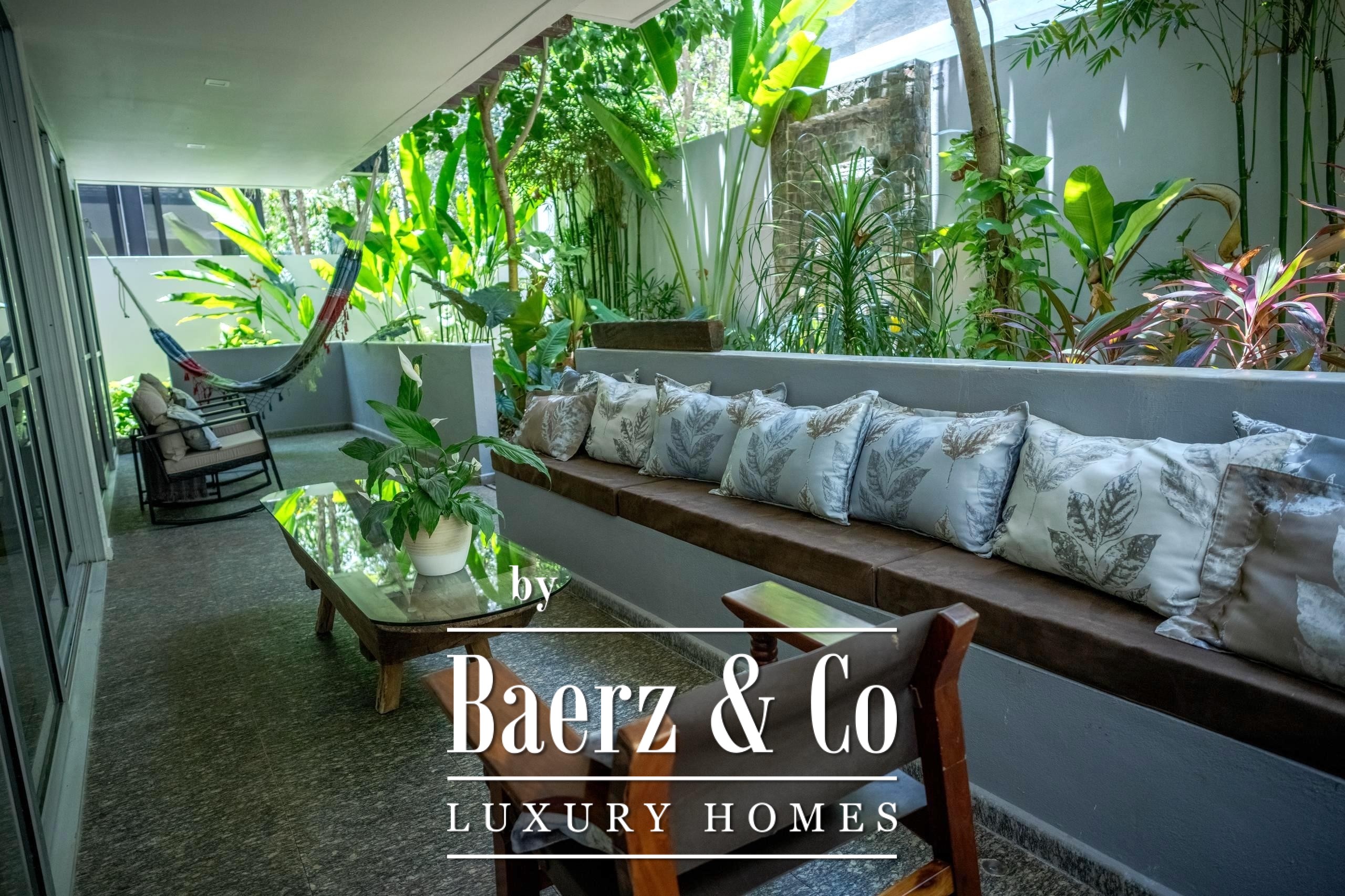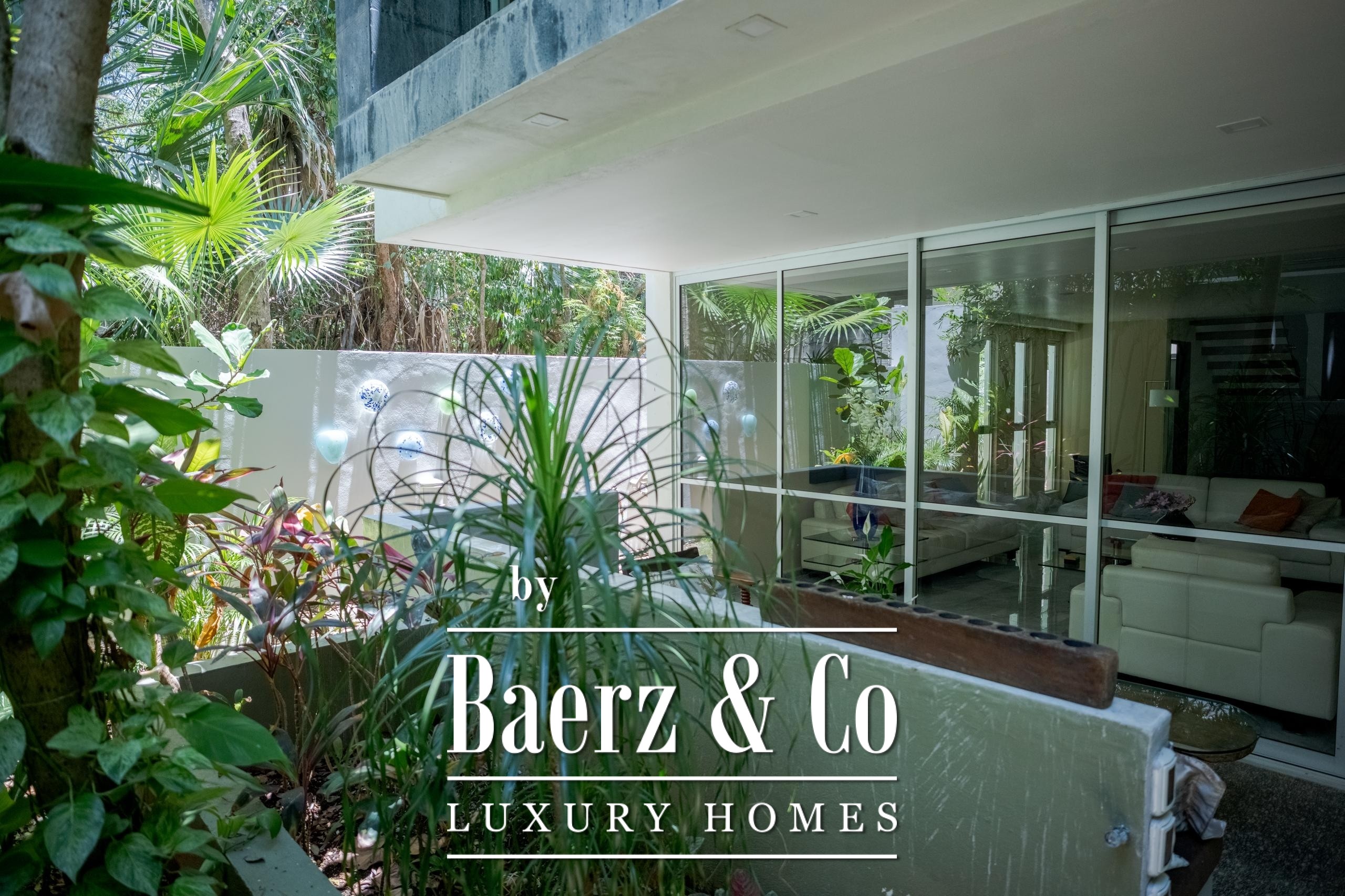 Further amenities include covered parking for two vehicles, a storage room, dual water heaters, water softener and automated irrigation system. Set within Senderos de Mayakoba, enjoy pathways through nature and a private cenote. This is a luxury villa for sale in Playa del Carmen that balances sophistication with the rhythms of tropical living.